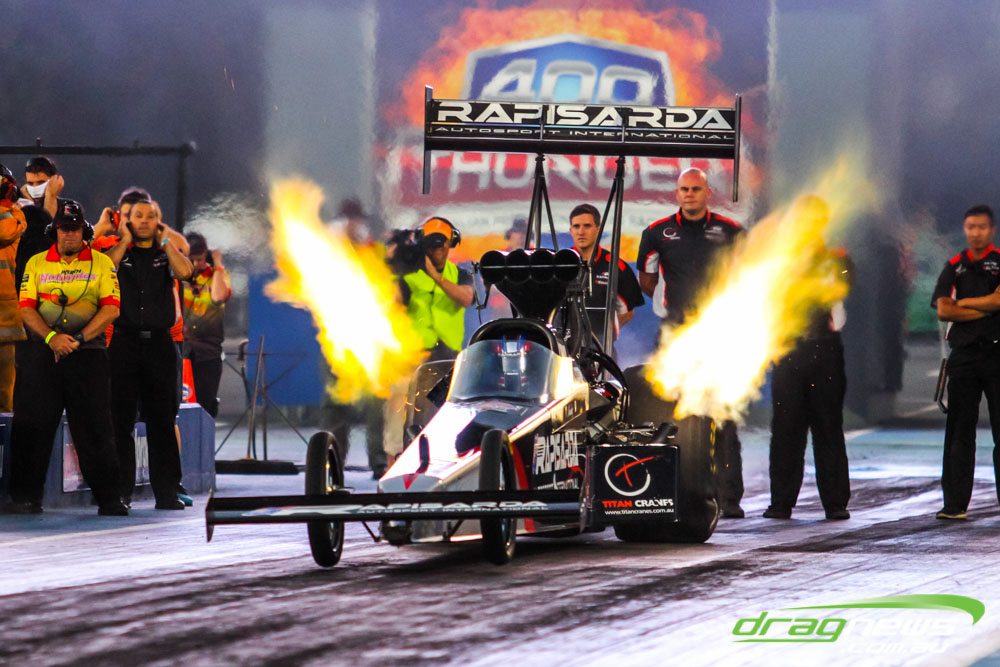 The nitro burning Top Fuel dragsters might be the ones making the most noise and yes they are certainly the fastest but on Friday night at Perth Motorplex it was Pro Alcohol making all the headlines for Coates Hire West Coast Nitro, part of the 400 Thunder Series.