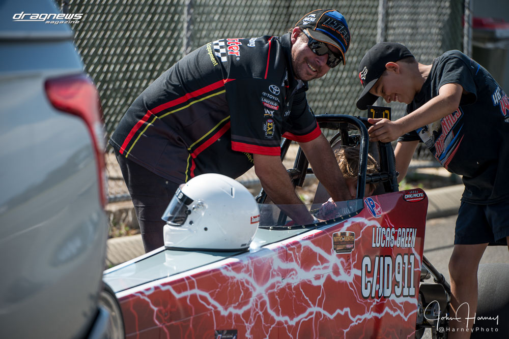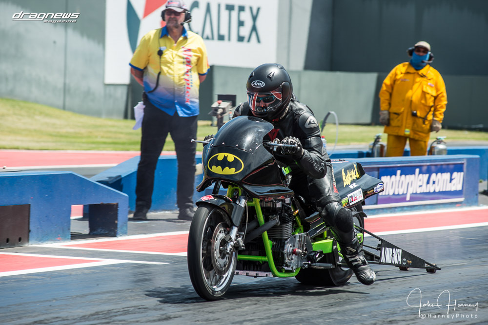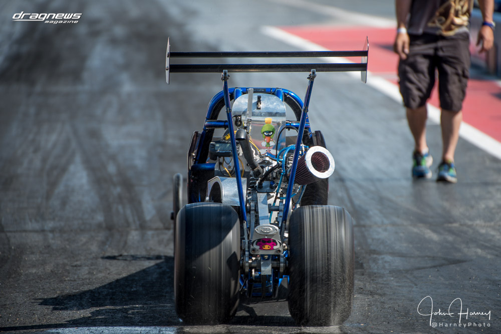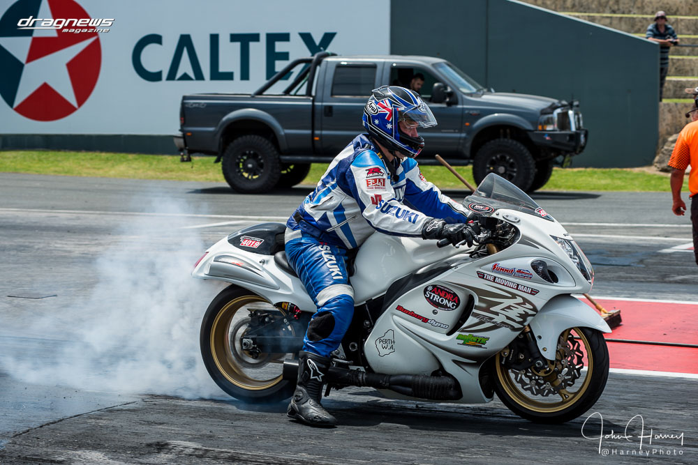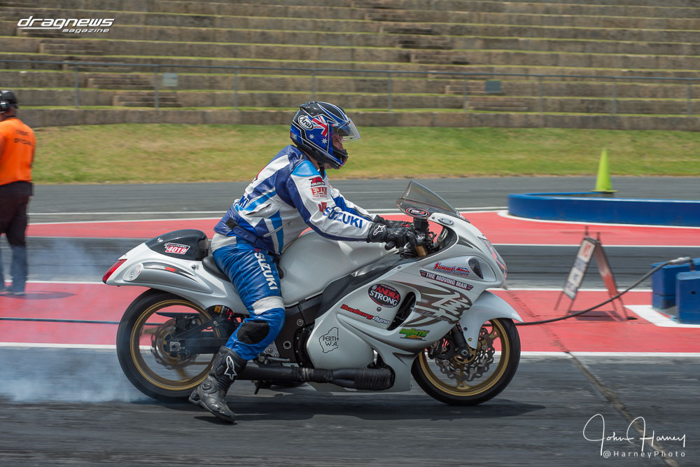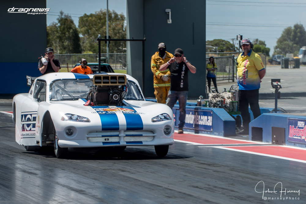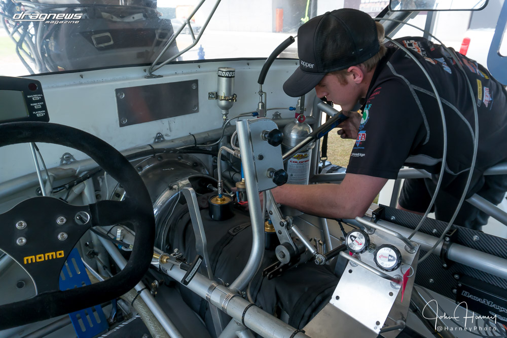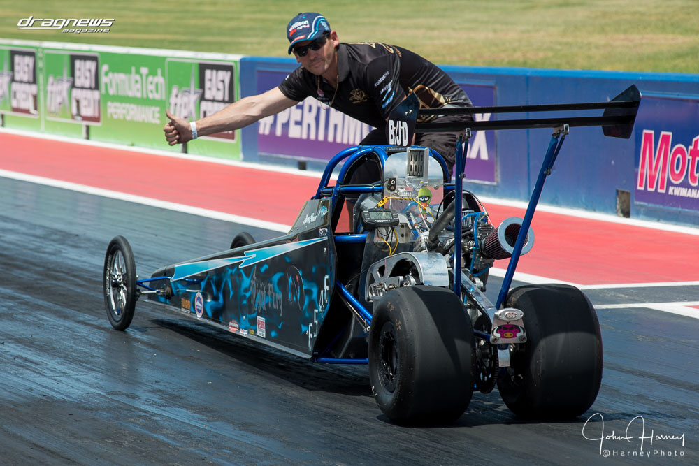 Tracey De Jager had a shocker of a day, after a gearbox problem during the first startup of the Nitro Nanna Thunderbird. The team decided to pack the car into the transporter and head for home to strip down the troublesome box. Tracey is hoping to break the Australian AA/APA record after being only 0.002 off the record last time, in what would be a fitting end to the Thunderbird before it is sold to make room for their Outlaw Nitro Funny Car.