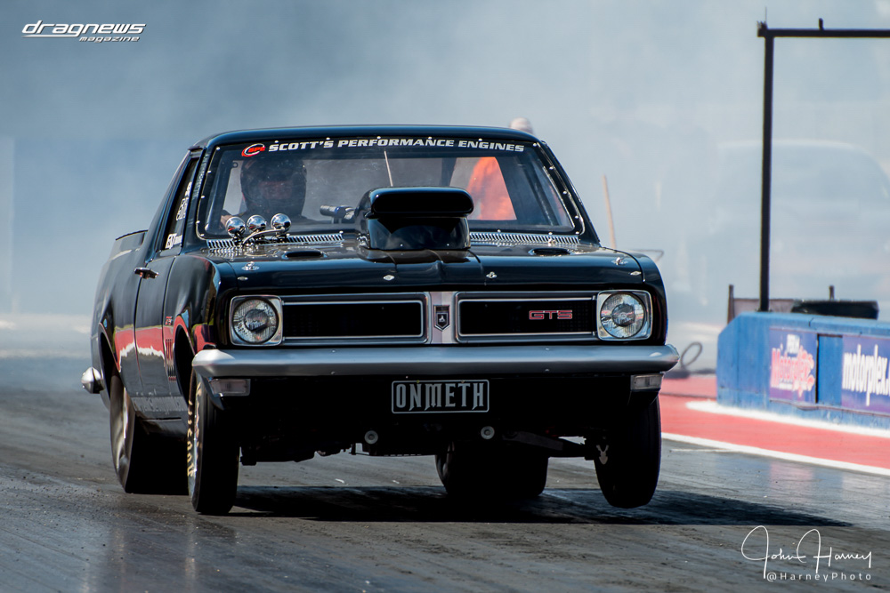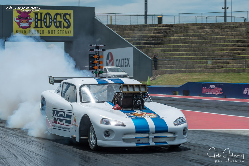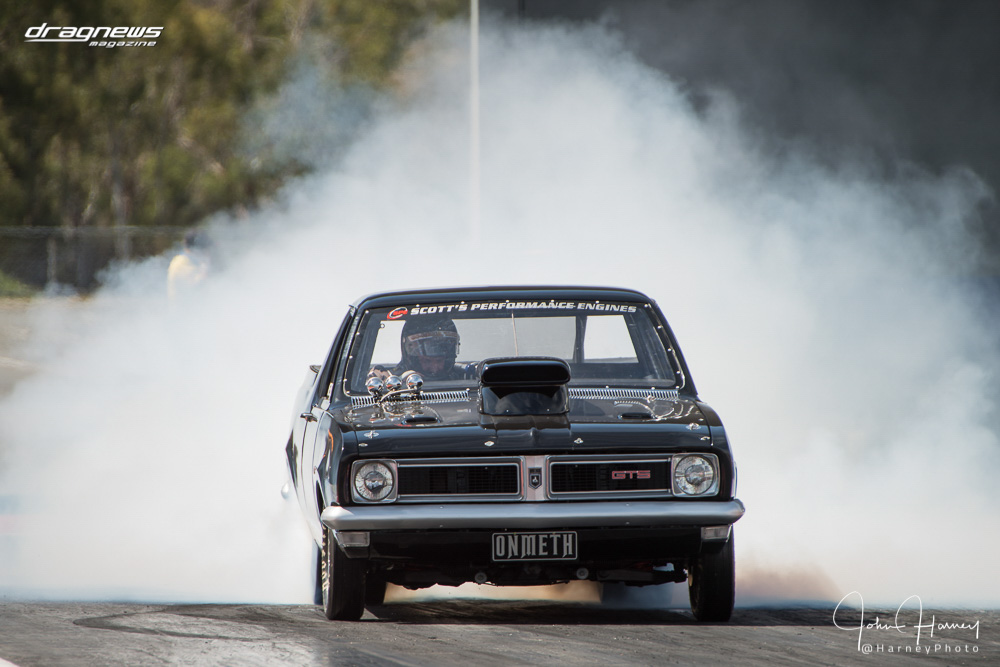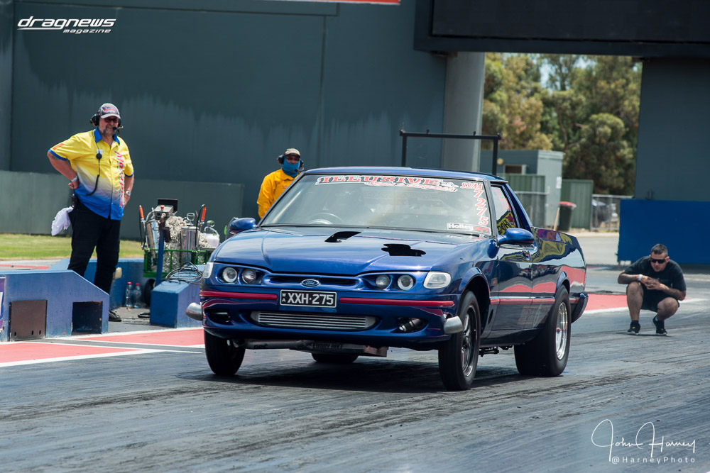 Jeff Johnson has sorted out the weight distribution in his XH Top Sportsman/Radial ute only to be plagued once again with a recurring electrical gremlin. This was soon rectified and he was back later in the night for more tuning.