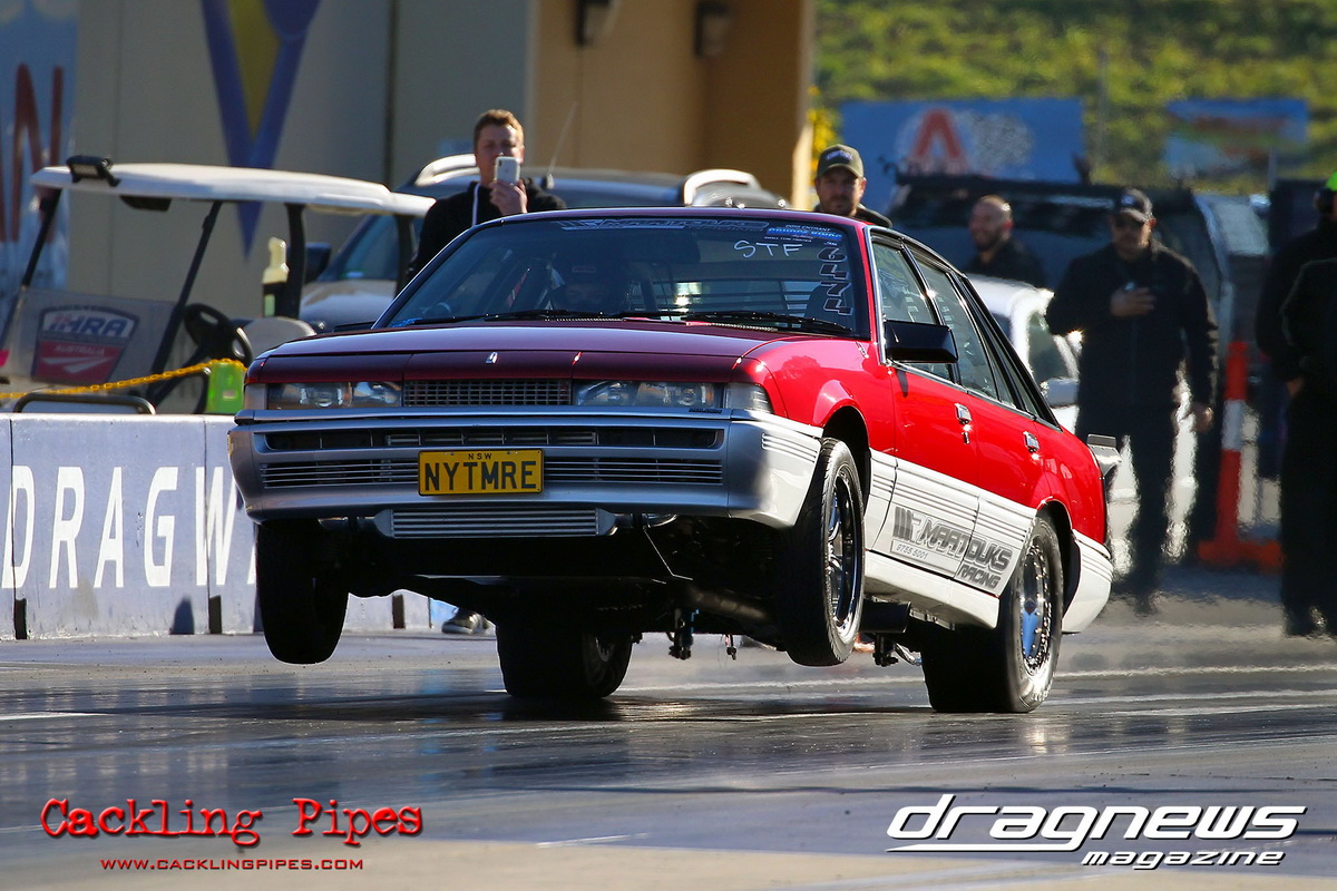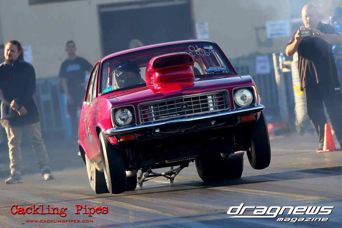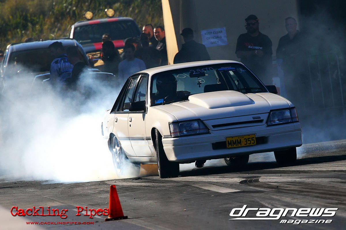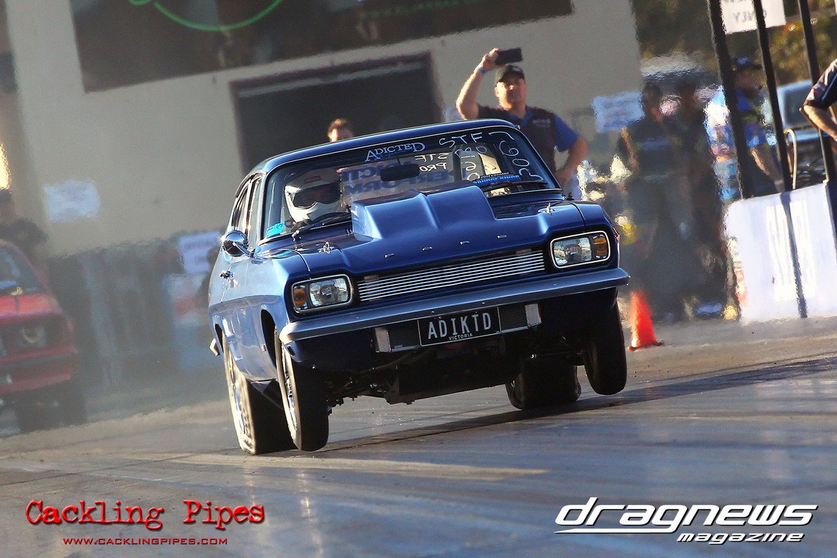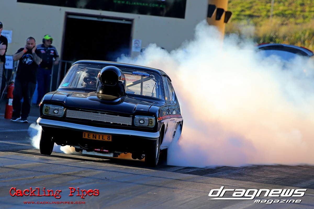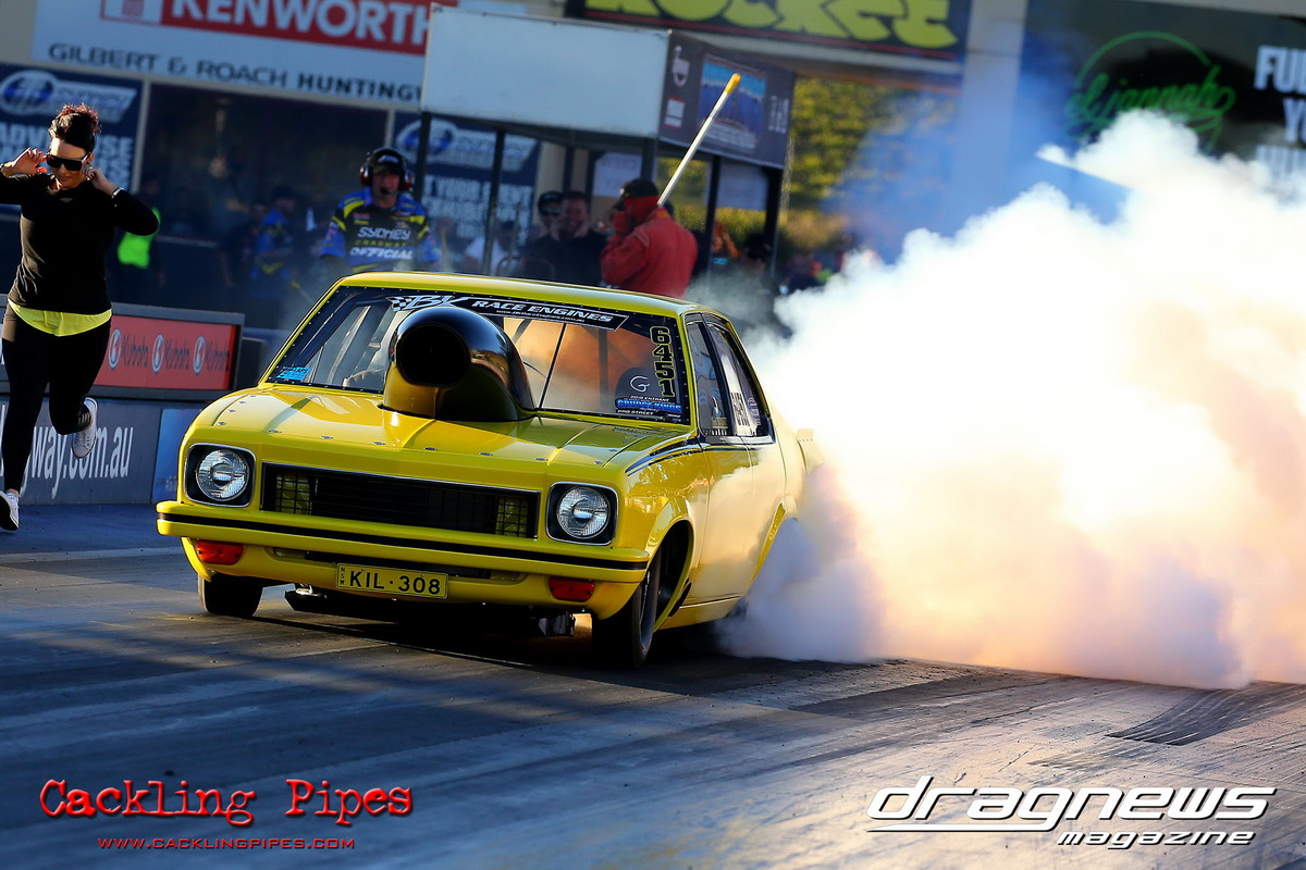 Outlaw saw Adam Attard with his big cube Torana take on Joshua Ploeger’s twin turbo big block VL Commodore. Attard an experienced local sportsman racer had the race won at the tree with a mighty holeshot and at the stripe the VLs 8.45 was not near to the Torana’s 8.48.