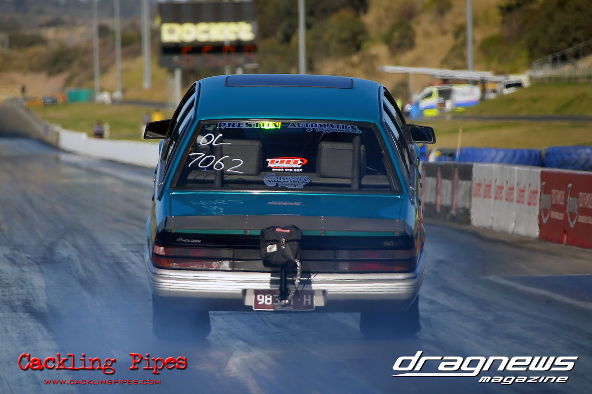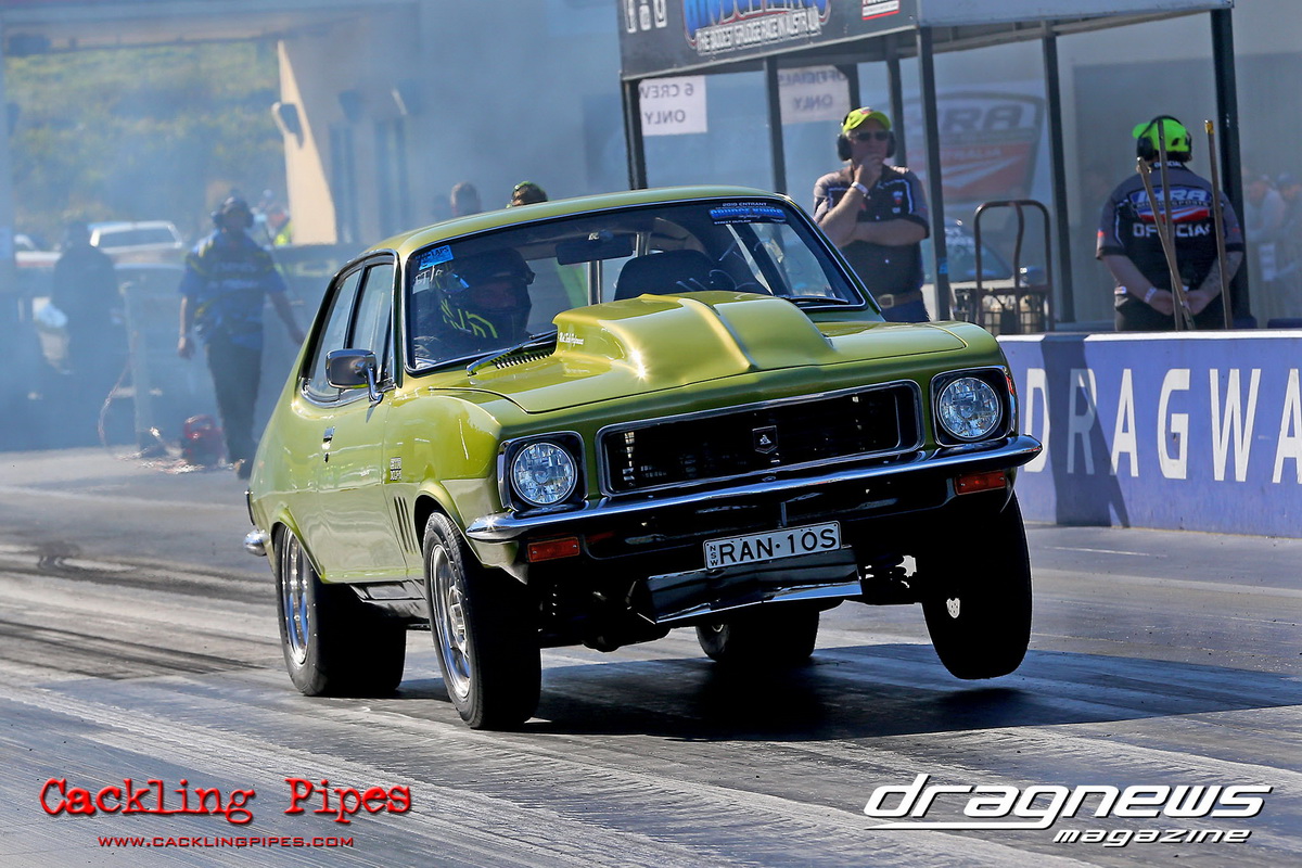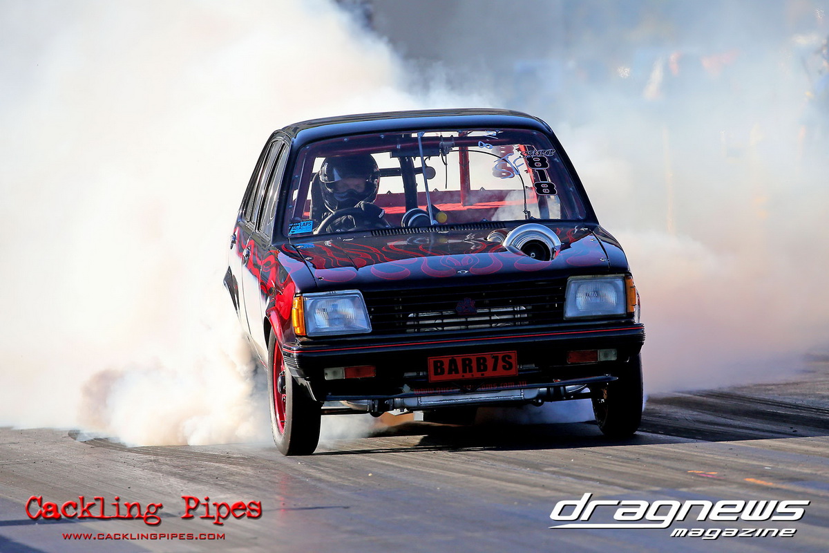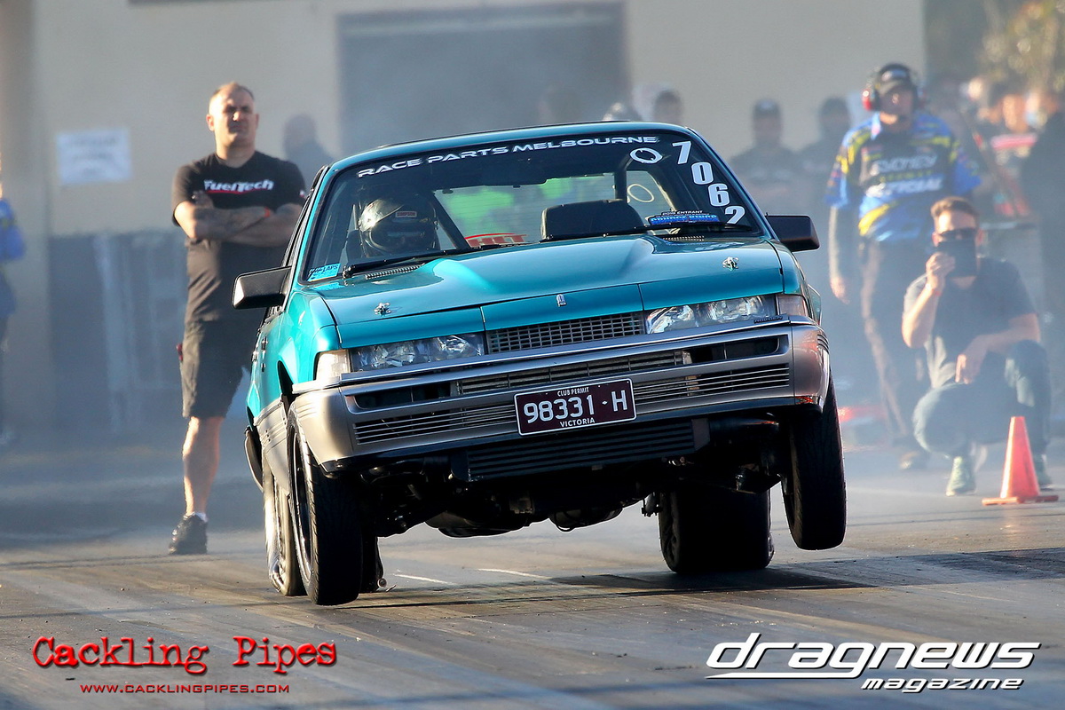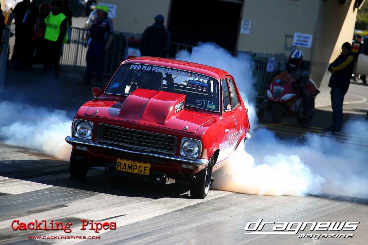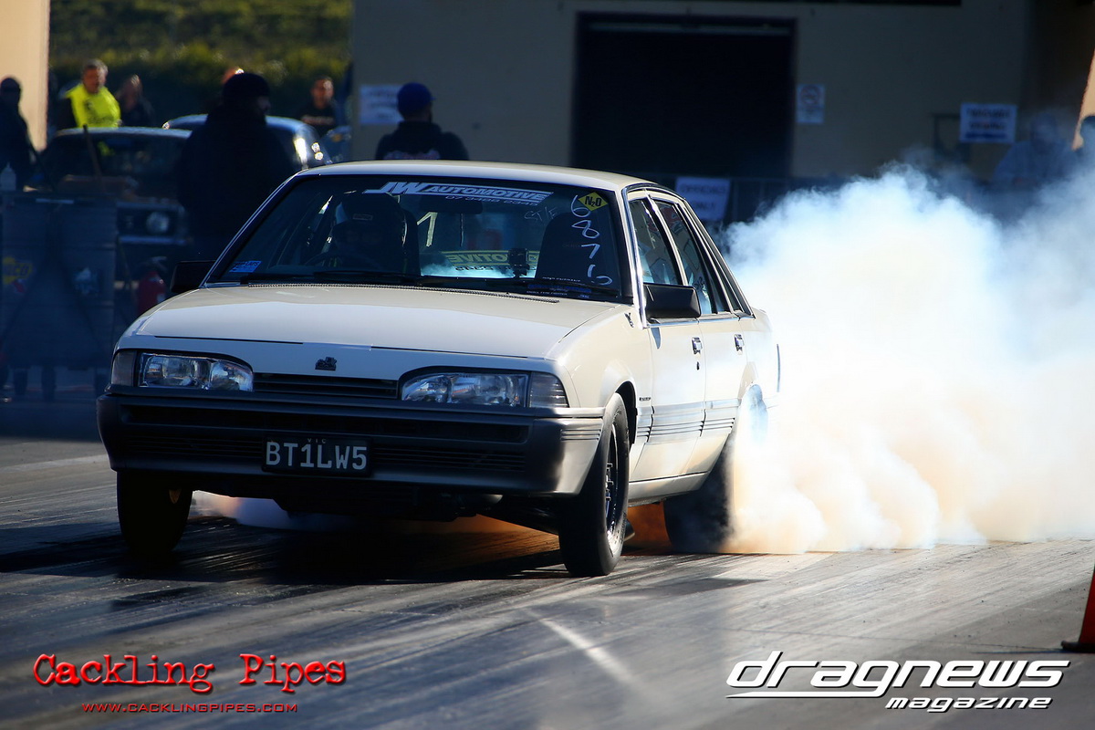 Outlaw saw Adam Attard with his big cube Torana take on Joshua Ploeger’s twin turbo big block VL Commodore. Attard an experienced local sportsman racer had the race won at the tree with a mighty holeshot and at the stripe the VLs 8.45 was not near to the Torana’s 8.48.