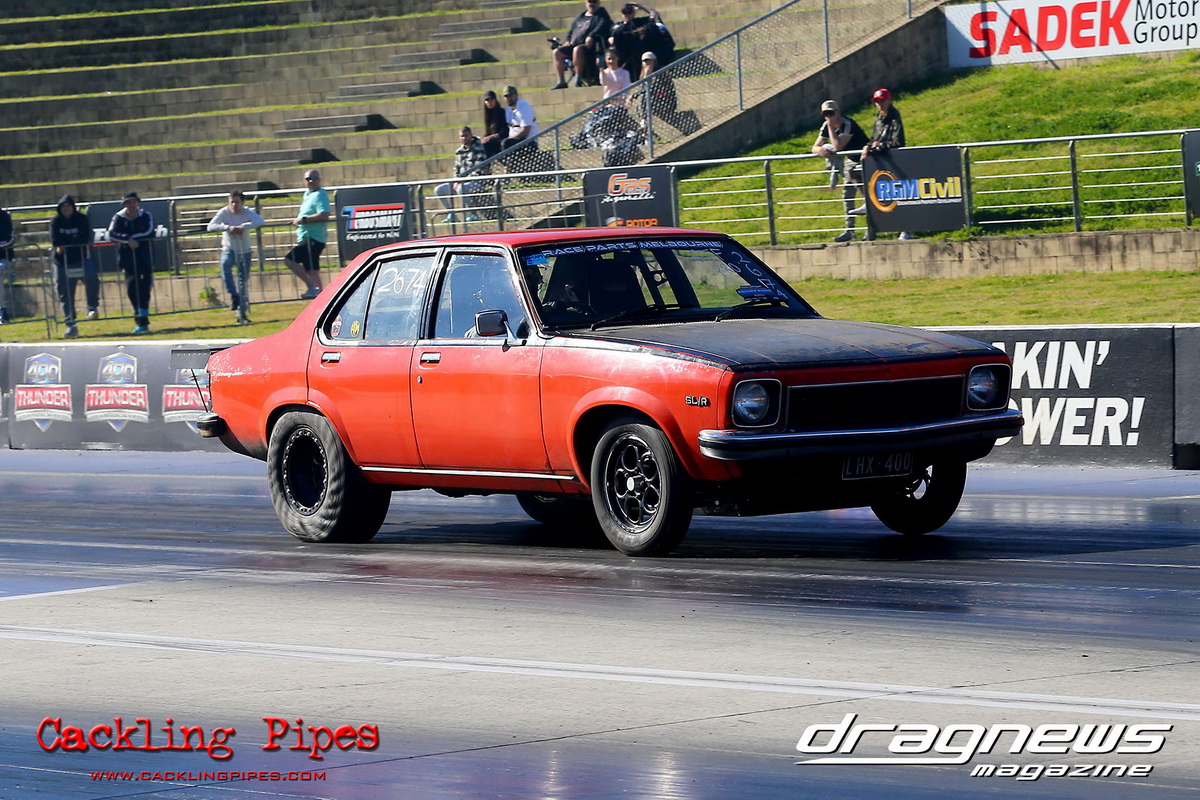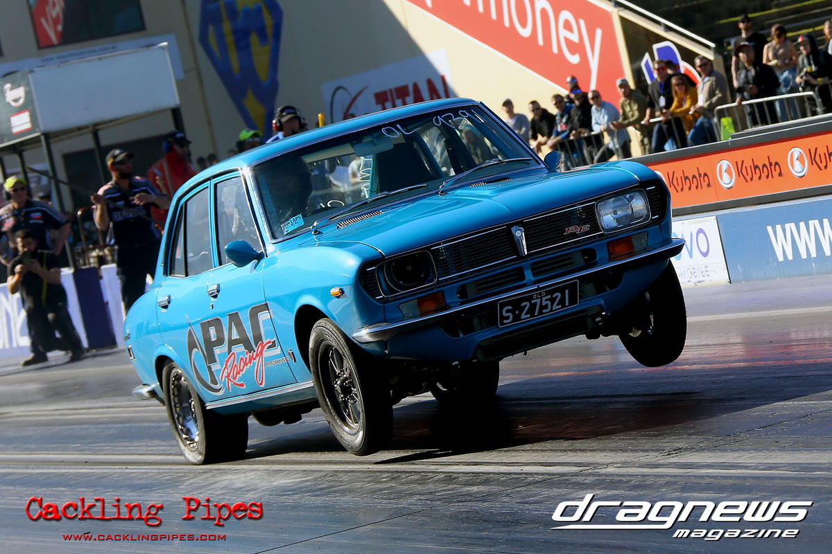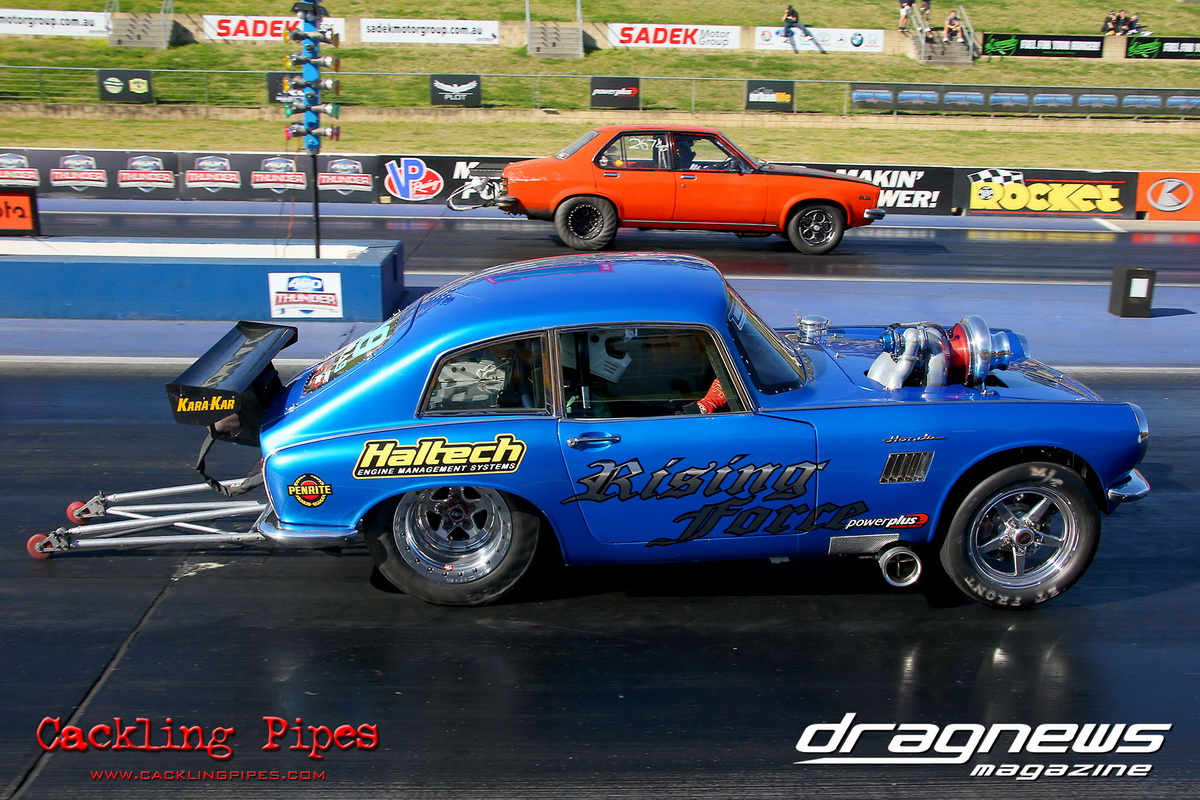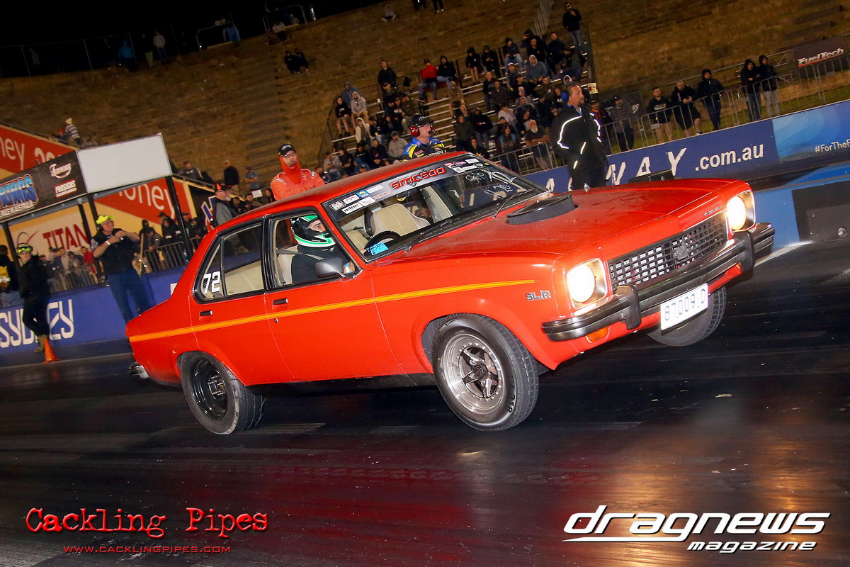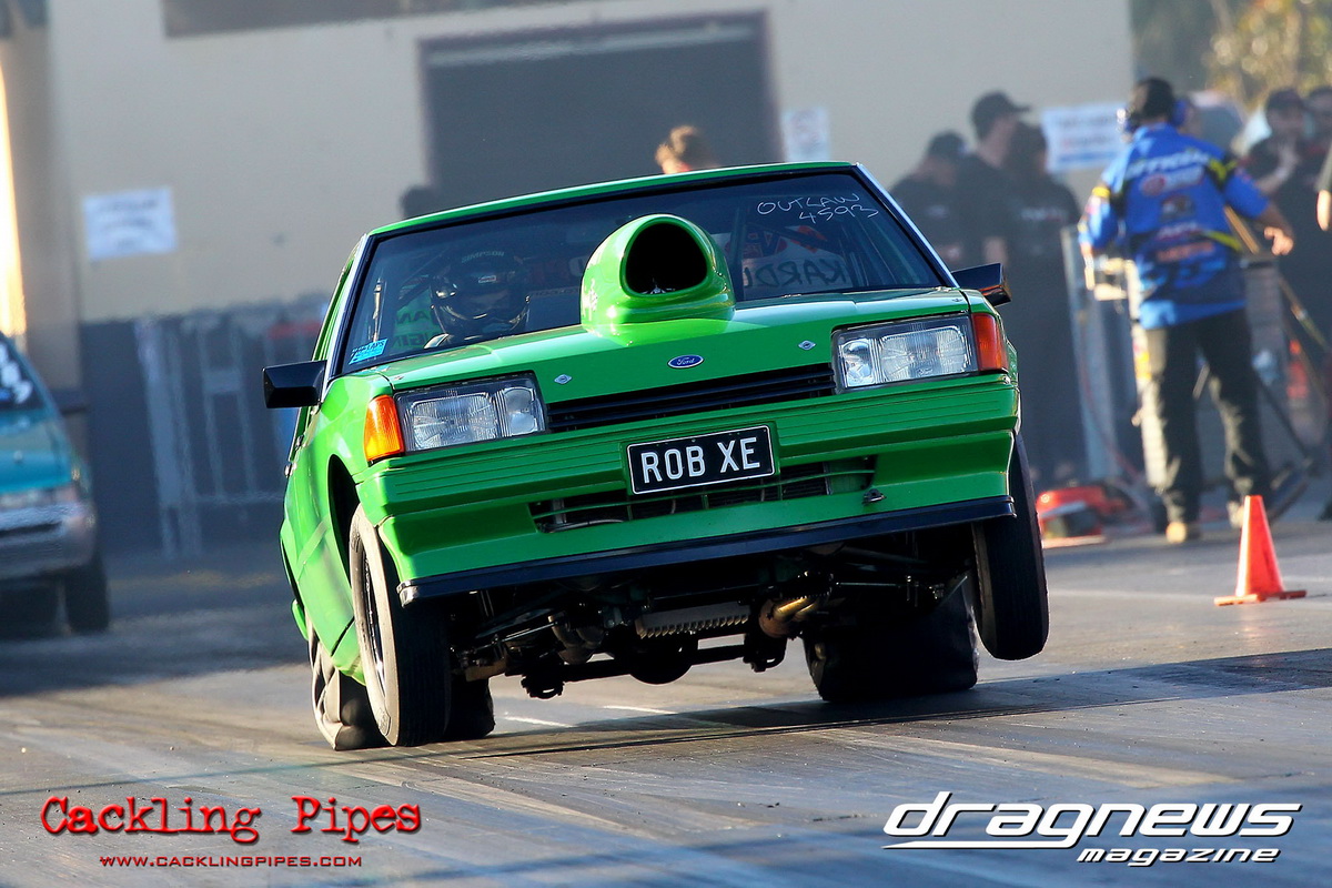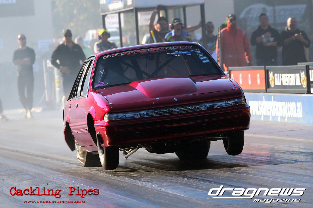 Outlaw saw Adam Attard with his big cube Torana take on Joshua Ploeger’s twin turbo big block VL Commodore. Attard an experienced local sportsman racer had the race won at the tree with a mighty holeshot and at the stripe the VLs 8.45 was not near to the Torana’s 8.48.