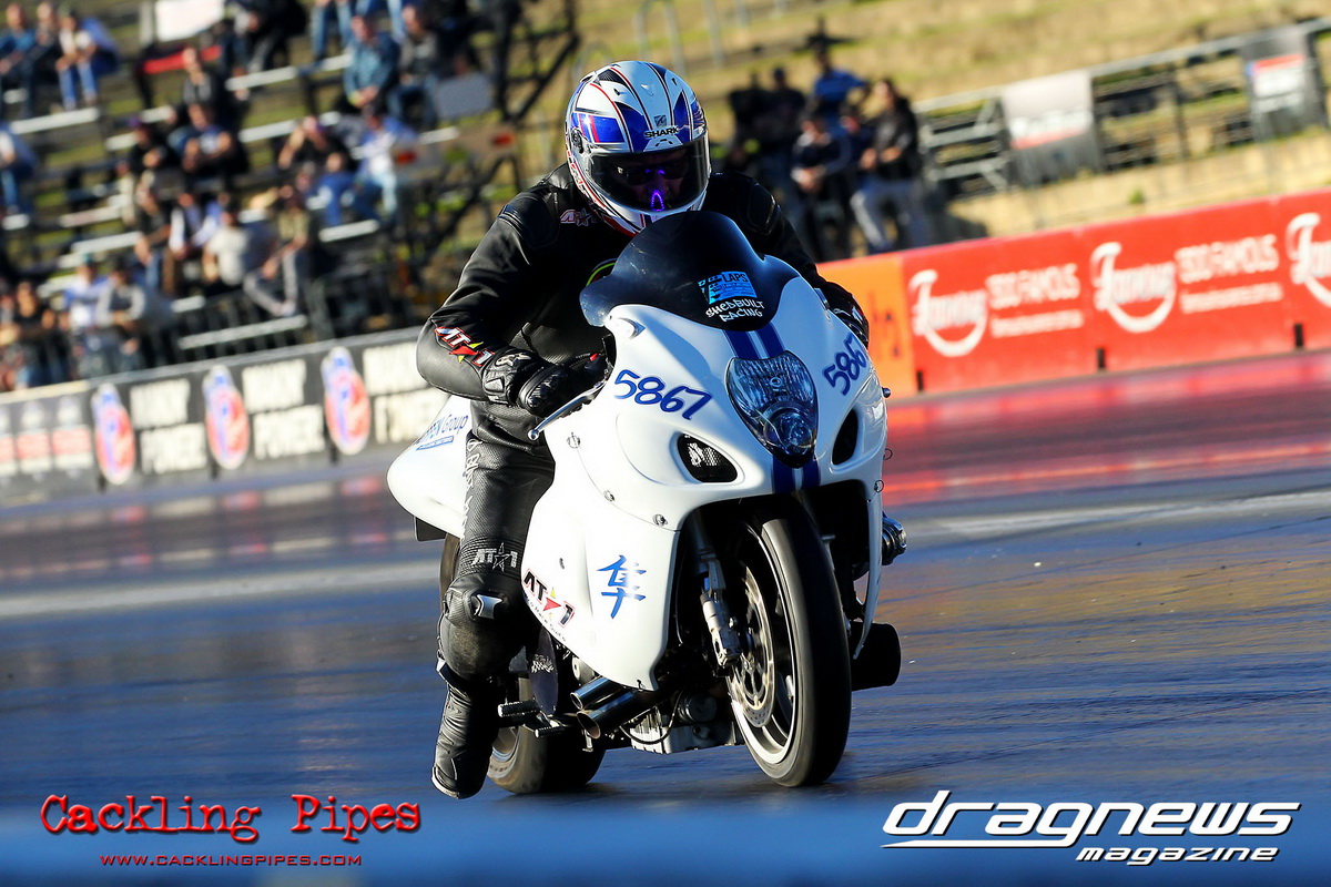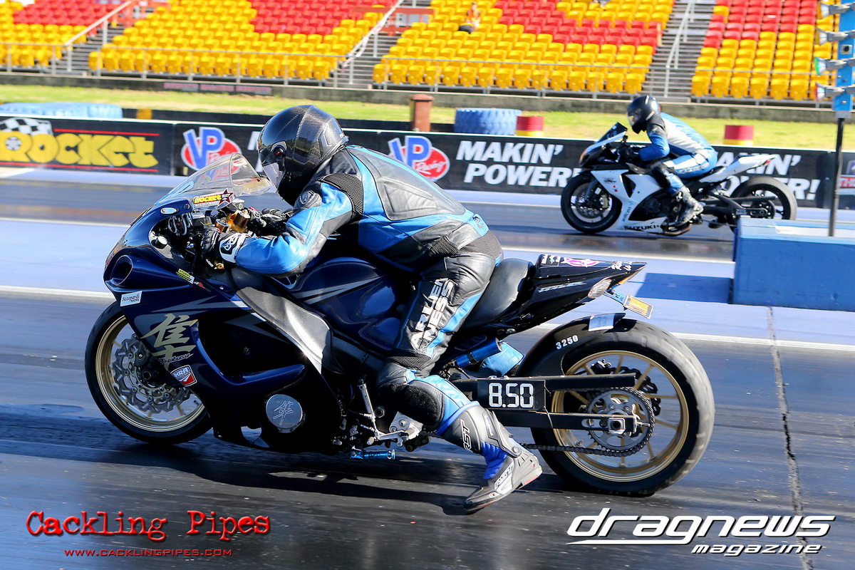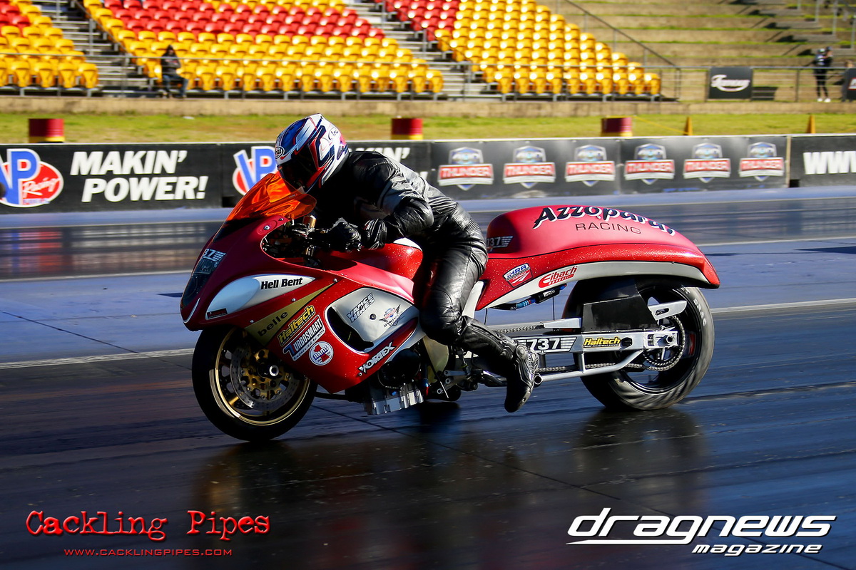 Extreme Bikes were also given the opportunity to show off their stuff at the event. These machines don’t get any crazier than Leonard Azzopardi’s ‘Out Run’ Hayabusa with a honking 213mph blast in round one, unfortunately after backing that up with a 212mph run next, he was unable to make round three and we saw Ian Smith and Darren Foley ride off in the all Hayabusa final. Smith cut the better light of the two in the final but Foley had the power, stomping a 7.35 to Smith’s 8.07 at the top end.