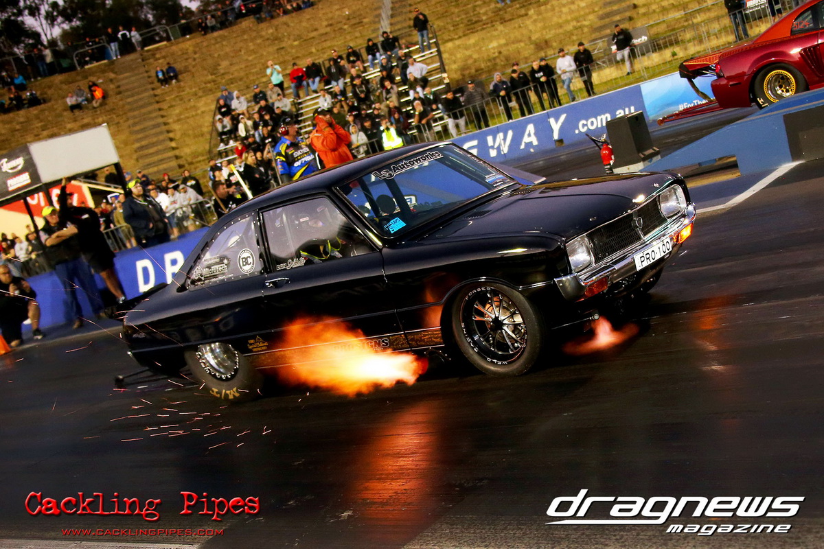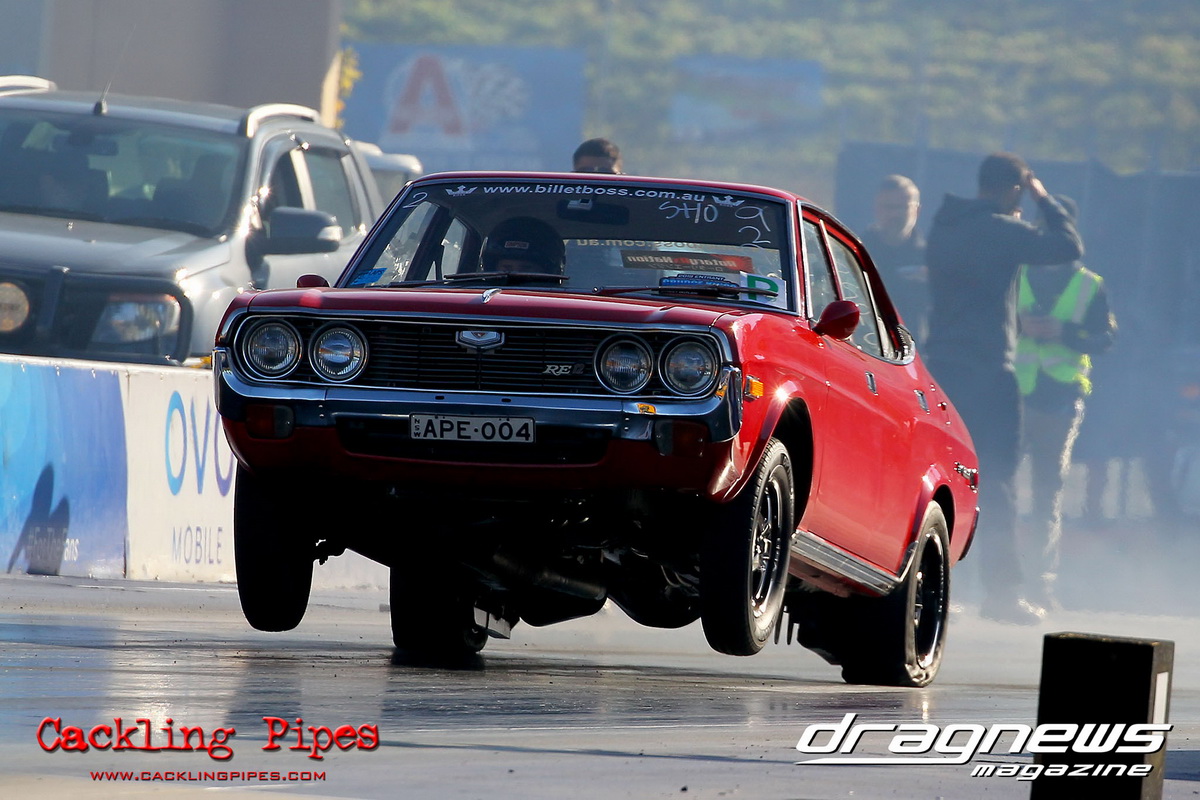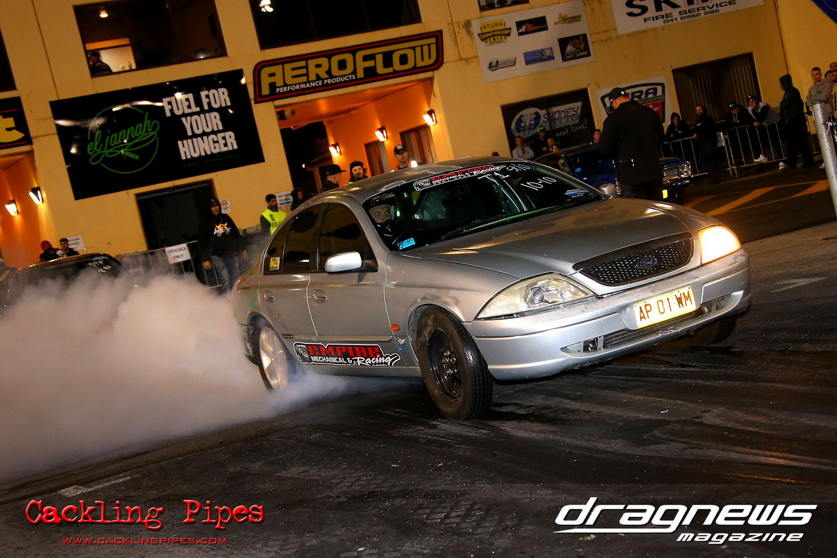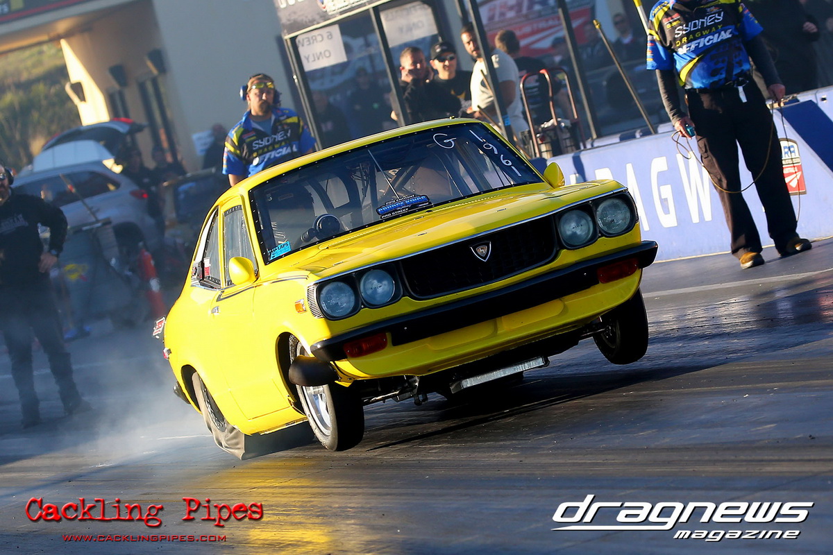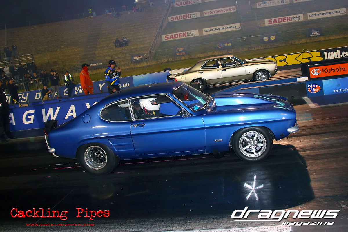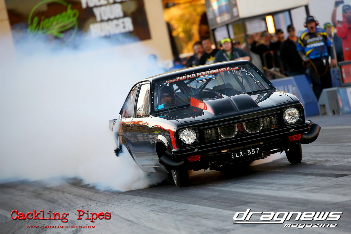 Trumping the shootout were the radial cars of Craige Lewis – a previous Grudge Kings overall event winner – and Danko Knezevic. Lewis’ super tough twin turbo street legal Cortina cut a great .029 pro tree light and stormed off into the darkness with a 7.37 to Knezevic’s trailing 8.45.