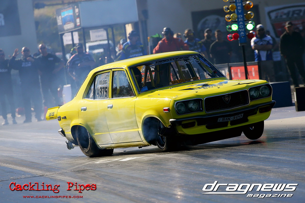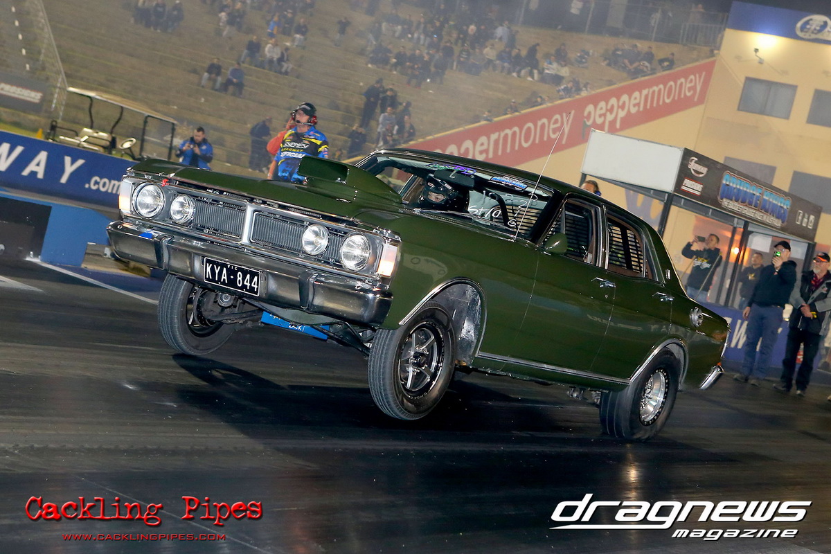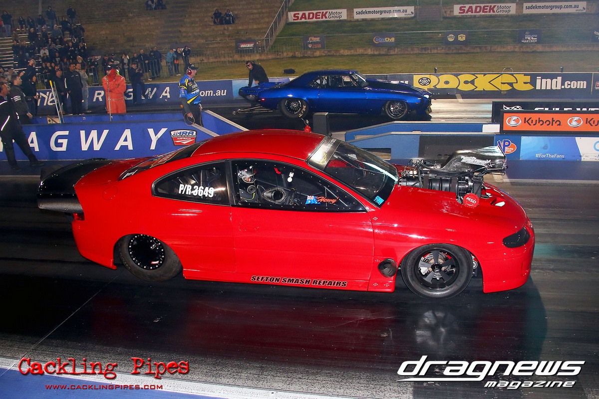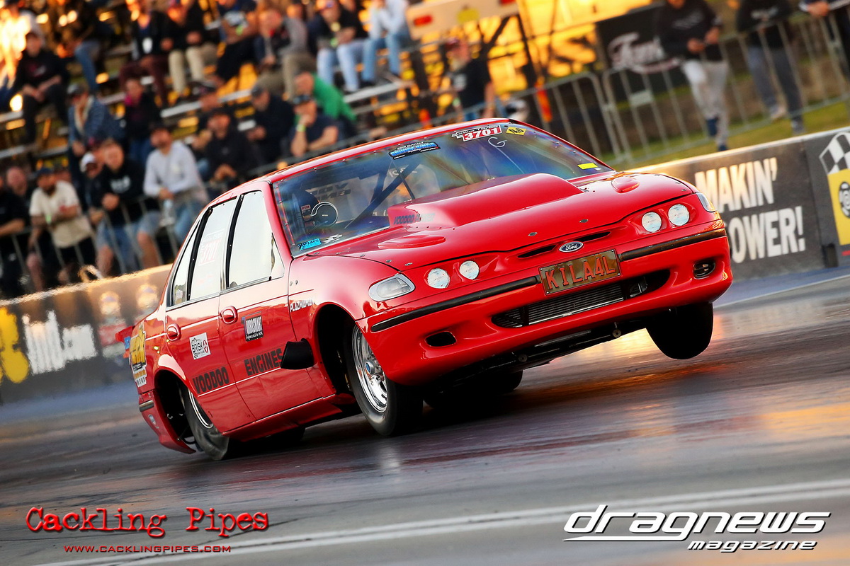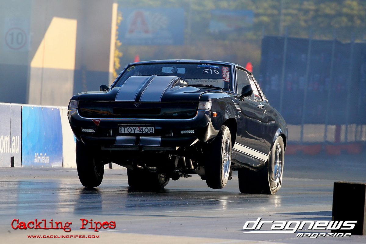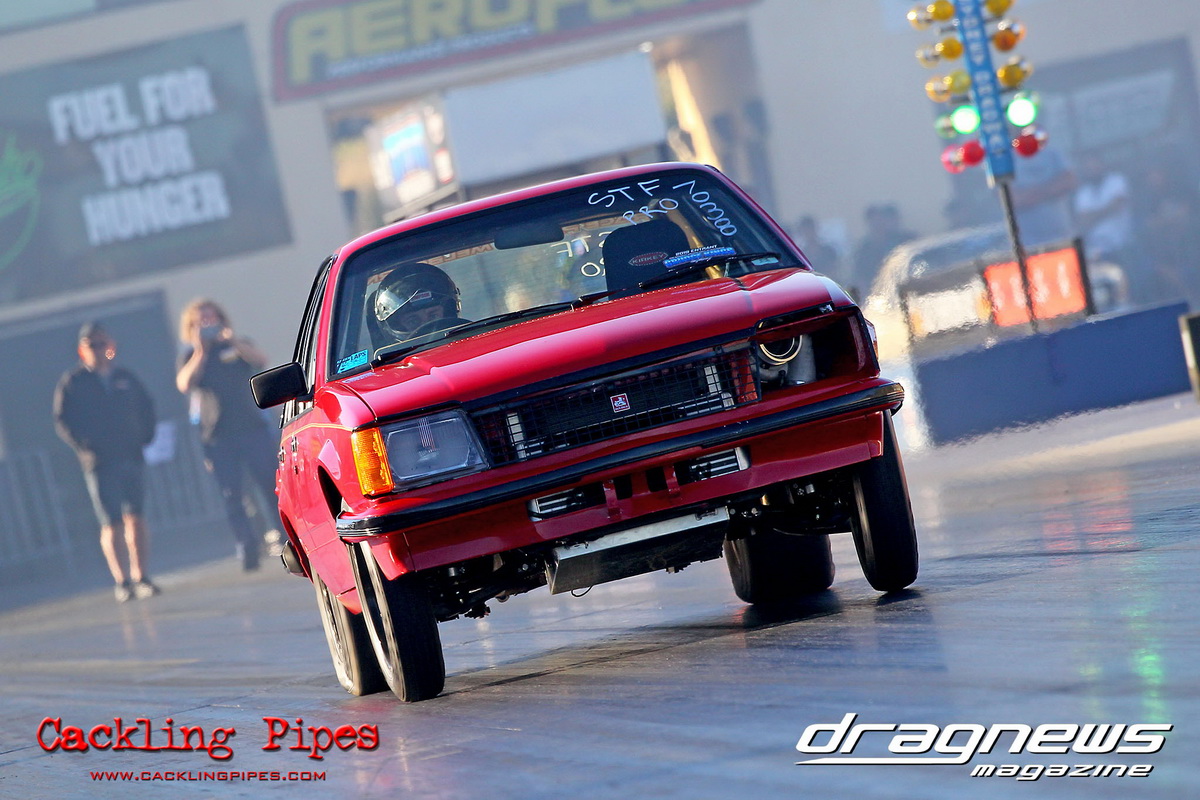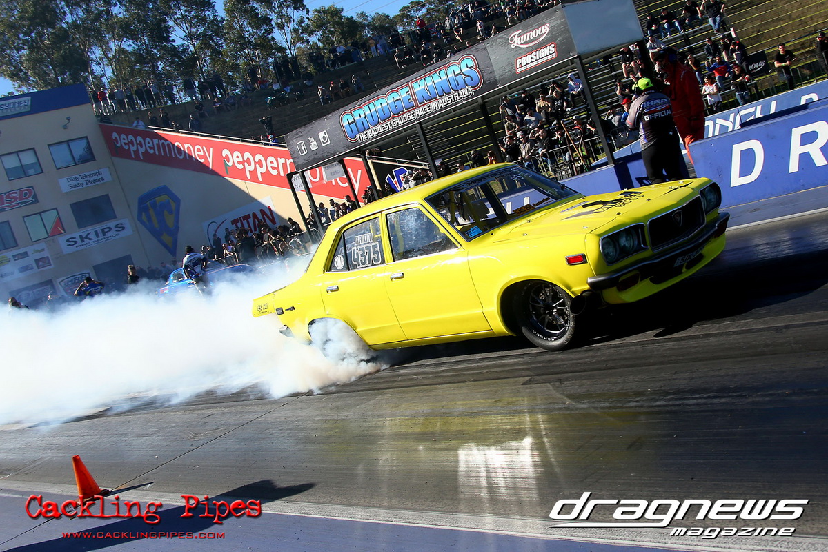 Trumping the shootout were the radial cars of Craige Lewis – a previous Grudge Kings overall event winner – and Danko Knezevic. Lewis’ super tough twin turbo street legal Cortina cut a great .029 pro tree light and stormed off into the darkness with a 7.37 to Knezevic’s trailing 8.45.