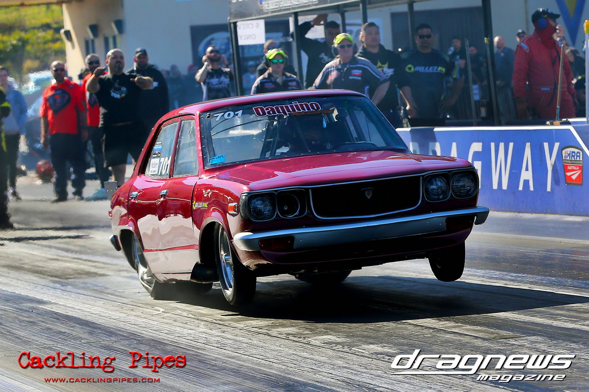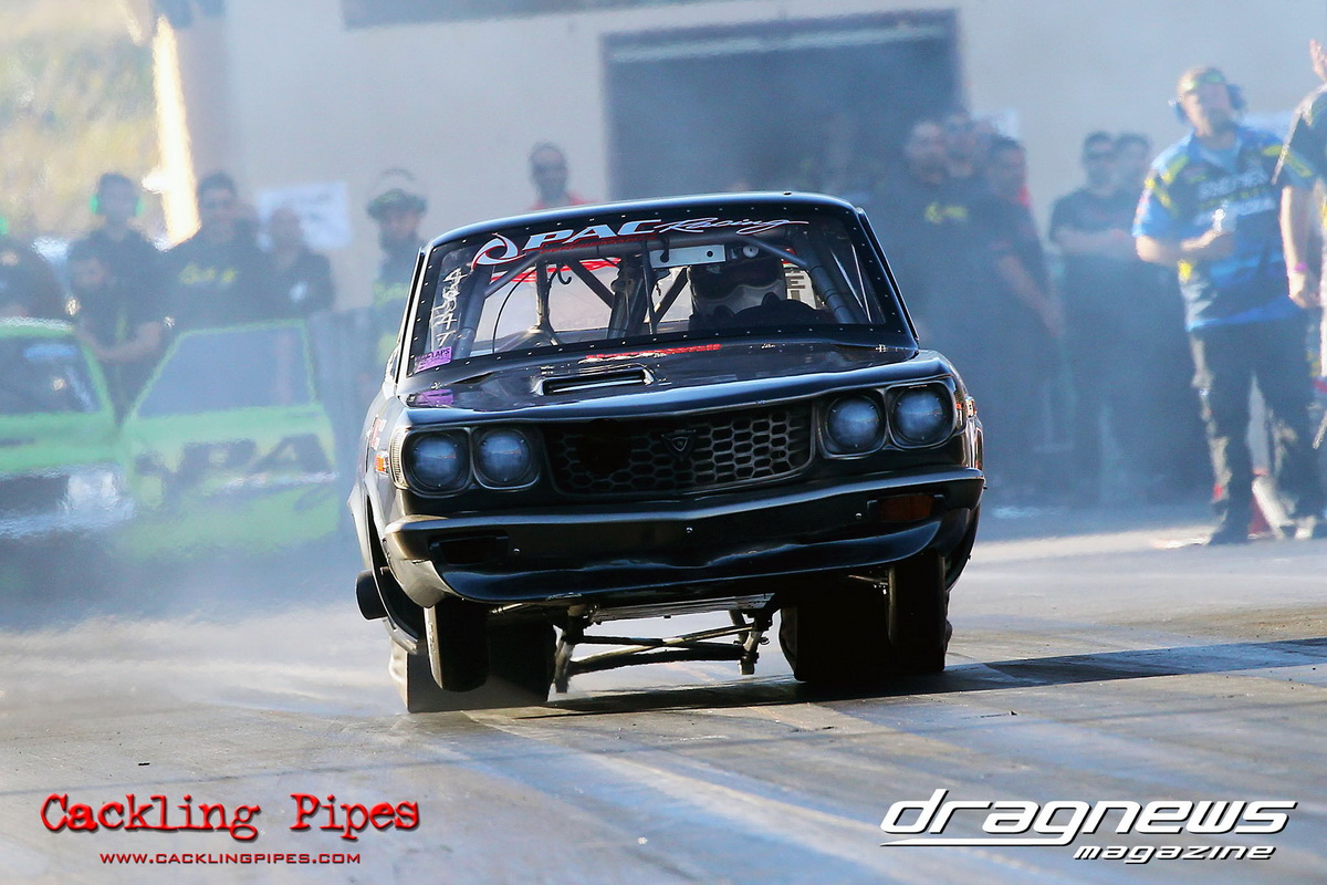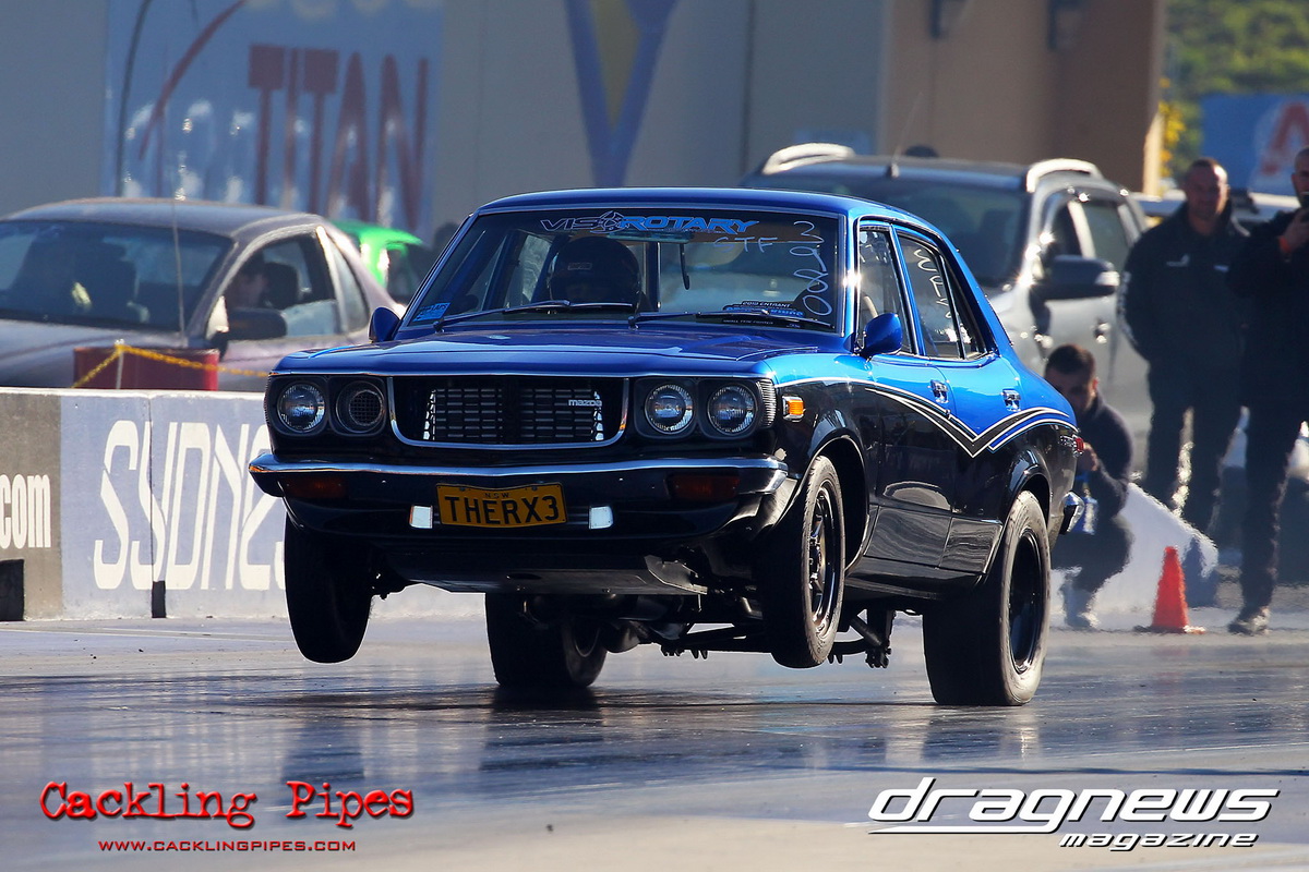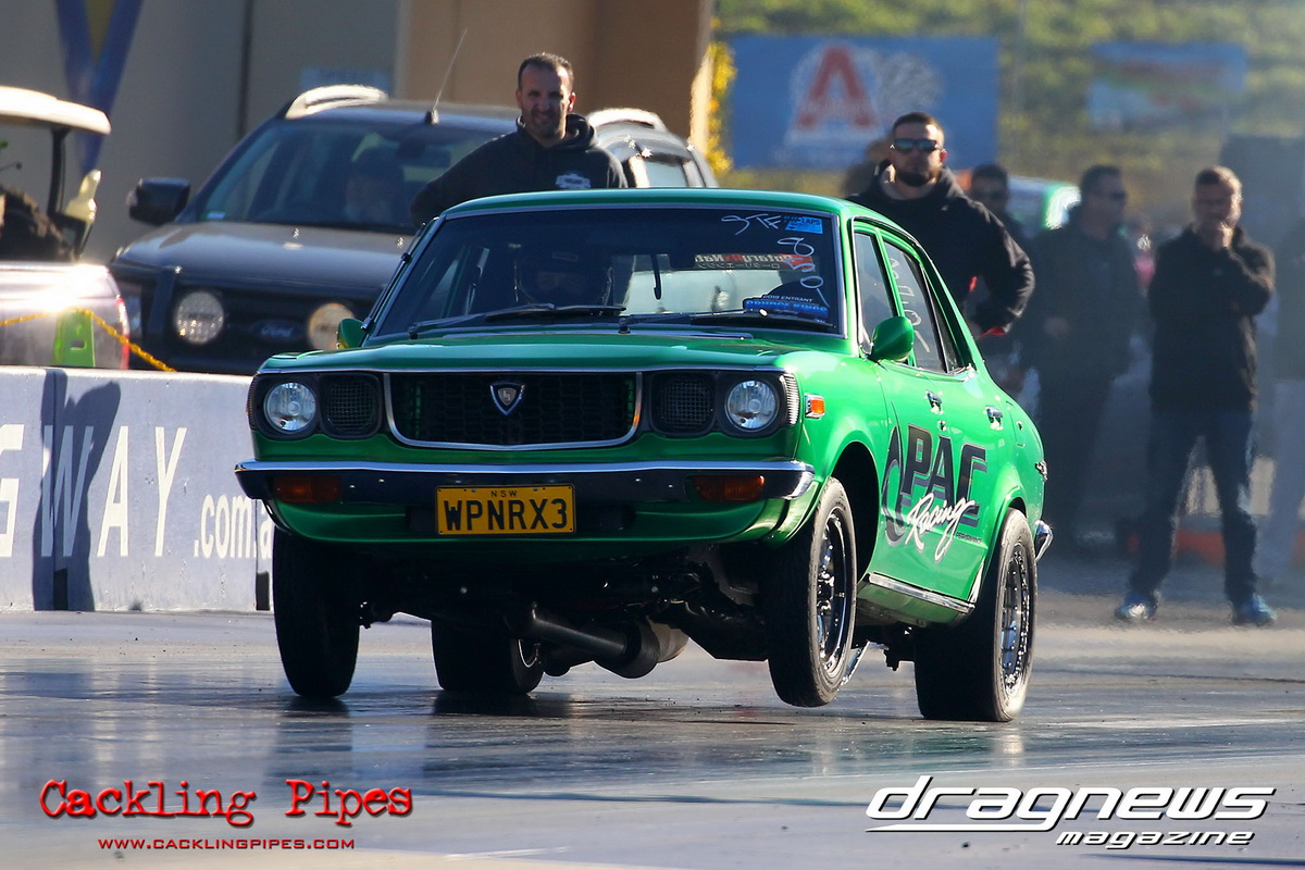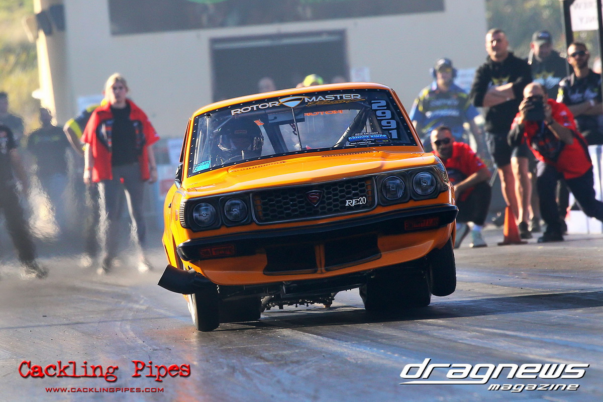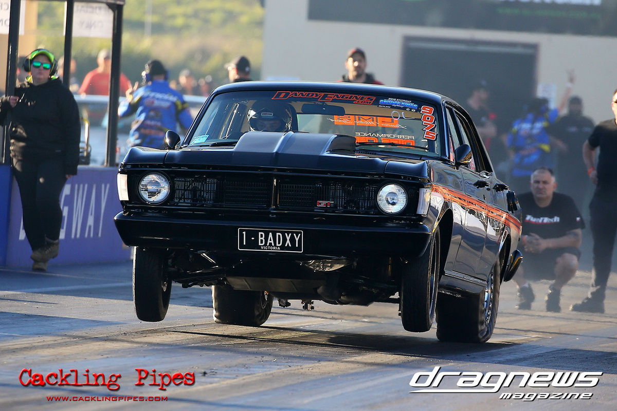 Trumping the shootout were the radial cars of Craige Lewis – a previous Grudge Kings overall event winner – and Danko Knezevic. Lewis’ super tough twin turbo street legal Cortina cut a great .029 pro tree light and stormed off into the darkness with a 7.37 to Knezevic’s trailing 8.45.