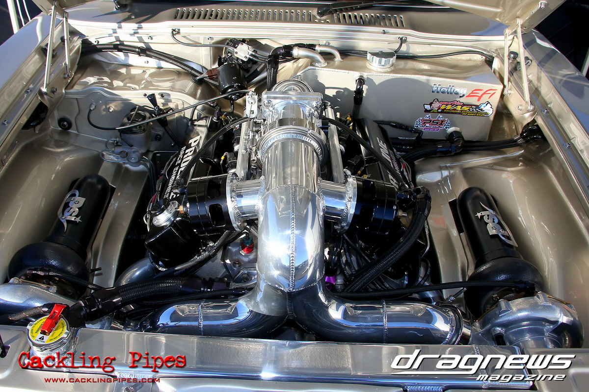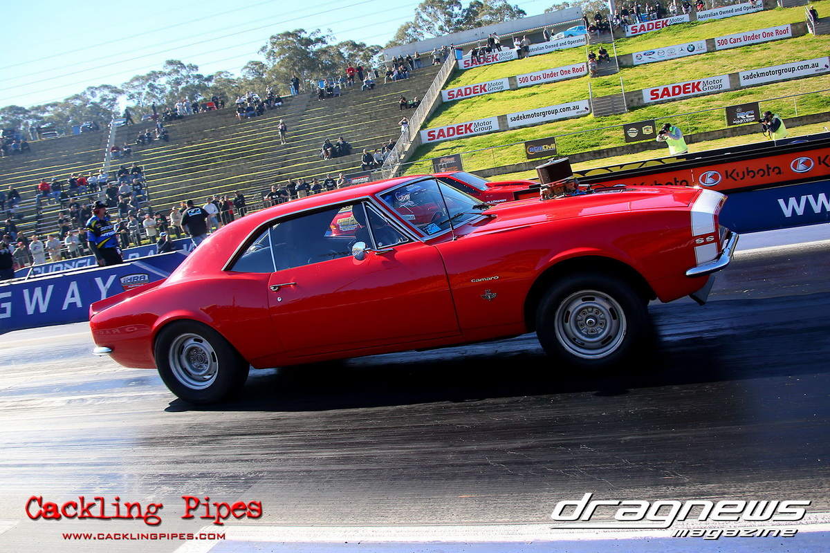 So here we were for the final, blower versus turbo, radial versus slick, the racing had gone further into the evening than planned, and the track was rapidly cooling. At the green Hewitt had a tenth on the tree and both racers blasted clean laps, Callaghan’s Camaro clawed back the difference and hit the stripe first to win the cash by a mere eight thou, 4.11 to 4.23 – event bests for both teams.