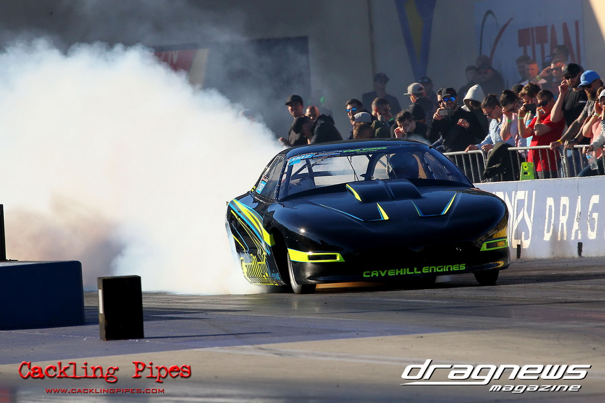 Camilleri clipped back some of that advantage on tree, but it wasn’t needed in the end when the Athan’s Mustang took a hard right turn past the sixty foot going up on two wheel and was odds on to hit the wall head on before Athans miraculously saved it, keeping the car unscathed. By then Camilleri and the win light with a 7.05 and was $10k richer.