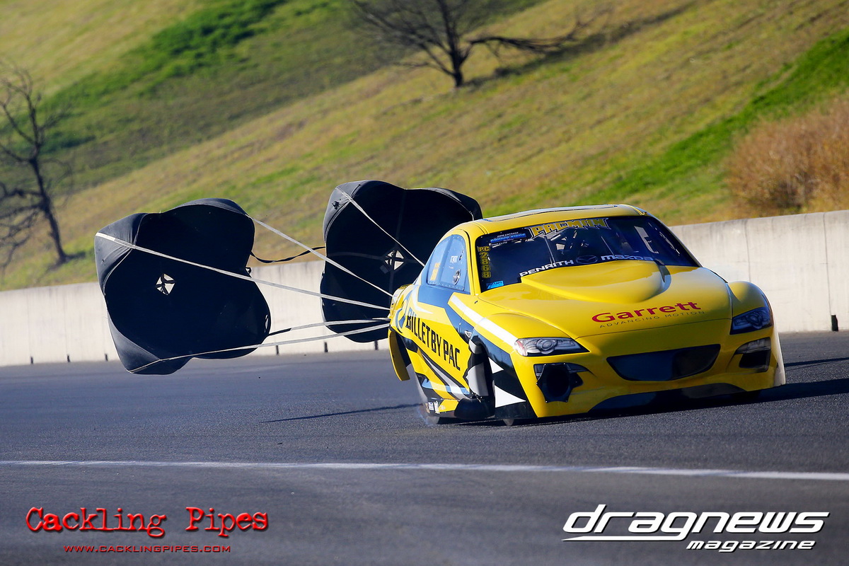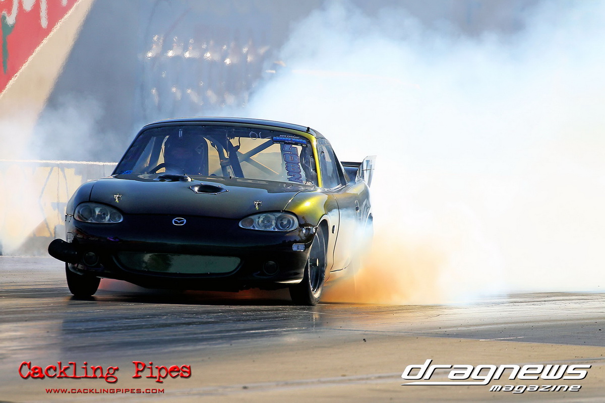 The Pro Elite and Pro Modified brackets were fighting for $10k. In Pro Elite Michael Haimandos had his small block twin turbo Mustang wheels up and screaming to take wins over Joe Signorelli, Rodney Rehayem with a single thrown in to reach the final against George Rehayhem. The PAC Mazda6 toughed out a 6.37 win against brother Rodney, a solo and a 6.46 against a red lighting Stuart Bennett for his final’s birth. With near identical .06 reaction in the final, both racers turned the screws up and it would come down to a battle of horsepower, where is was Haimandos snatching the win with a 6.34 over the rotary’s 6.37.