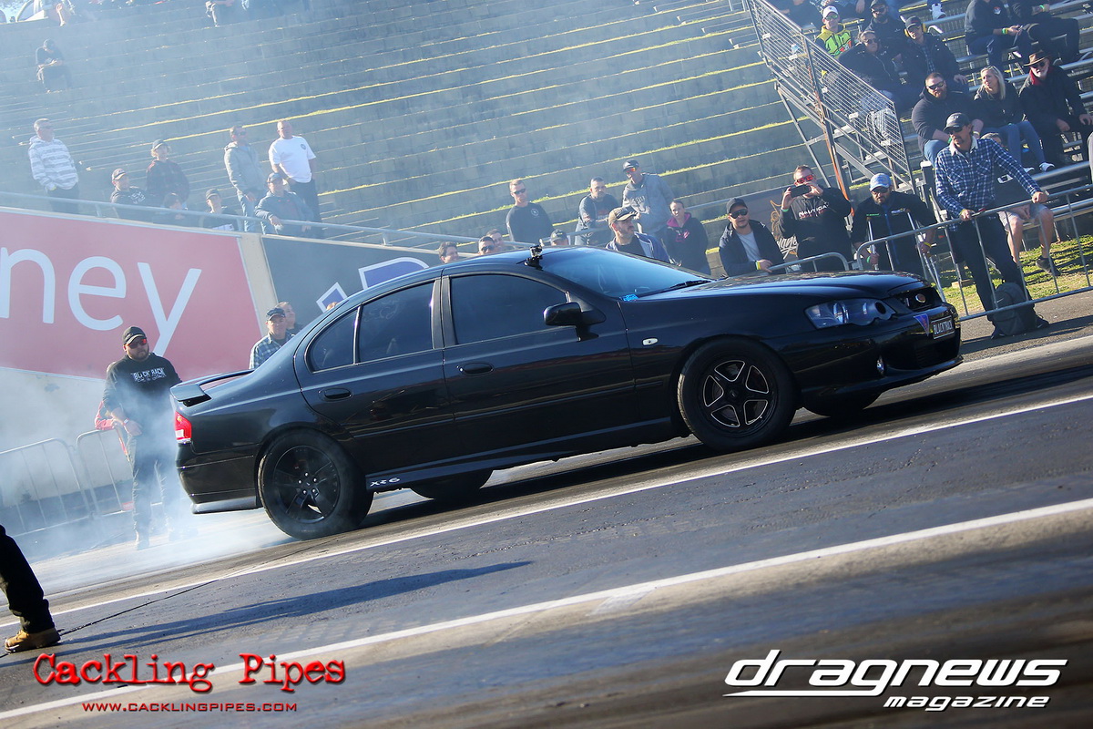 In Street Outlaw, David Muscat has done literally hundreds of laps at Sydney Dragway, present at almost every Race 4 Real, so it was no surprise to see his Mustang fronting the final and he would be against Cameron Sleeper with his AU Falcon. This final was also decided at the start line, Sleeper way too early on the go pedal handing the win to Muscat who drove it out the back door with a 9.995 on a 10.00 dial.