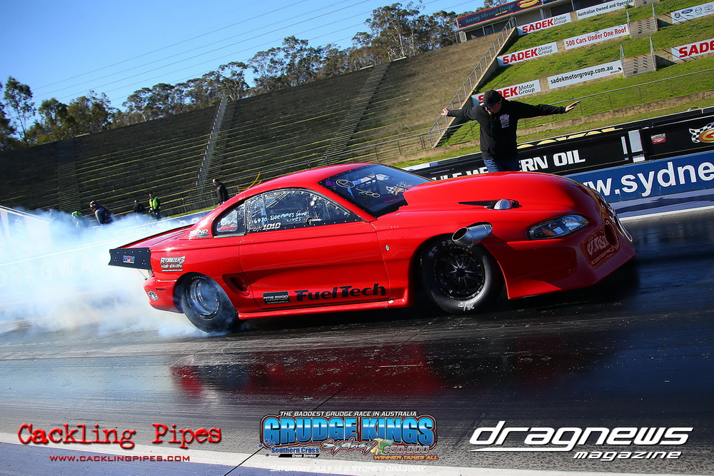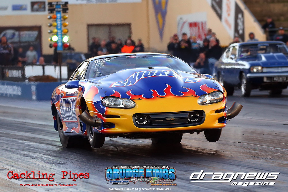 In the race for the $50k, Perry Bullivant fired a shot with a 3.84 out of the Snickers sponsored Camaro, Jeremy Martin was also into the threes with the VB Commodore. But there was plenty of mystery to with number of racers not showing their half track numbers on the time boards.