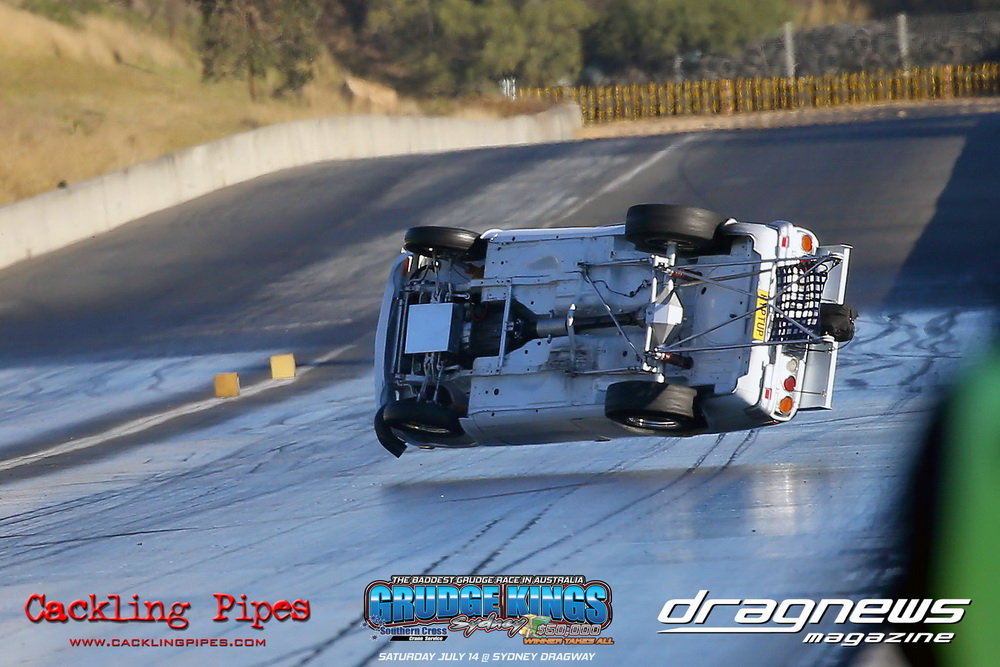 Unfortunately there were a number of incidents as well with racers overstepping that fine edge these racers tread, but importantly all racers were OK. Richard Gauci tipped over his RX3, James Horan gave the wall a nasty slap and grind in his ‘FKNBLKUTE’ Hilux and Quentin Feast touched up the side of his seven second street Torana in the braking area with an epic save and returned later in the the day.