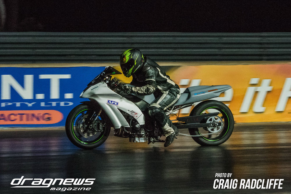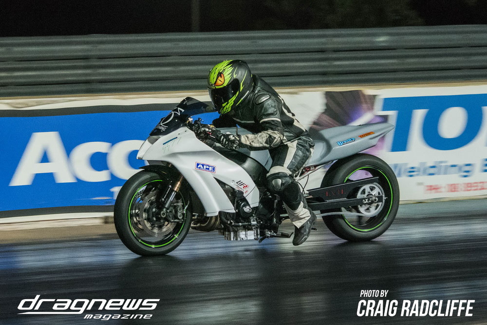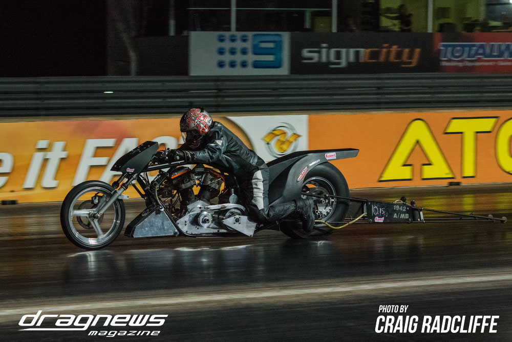 A tough .005 reaction cut by Mark Tattingham in the Modified Bike final saw him take the win light over Heath Costello.