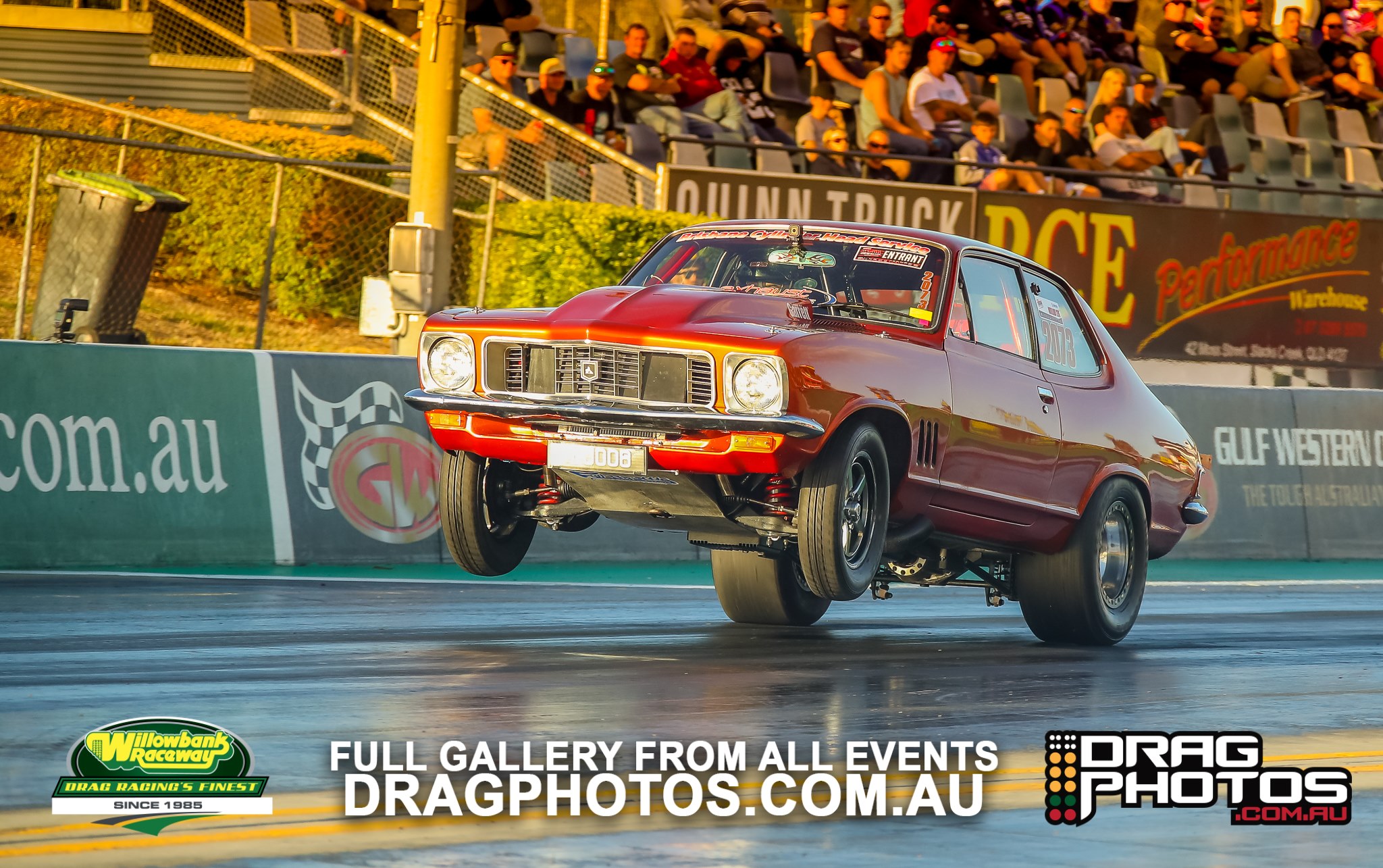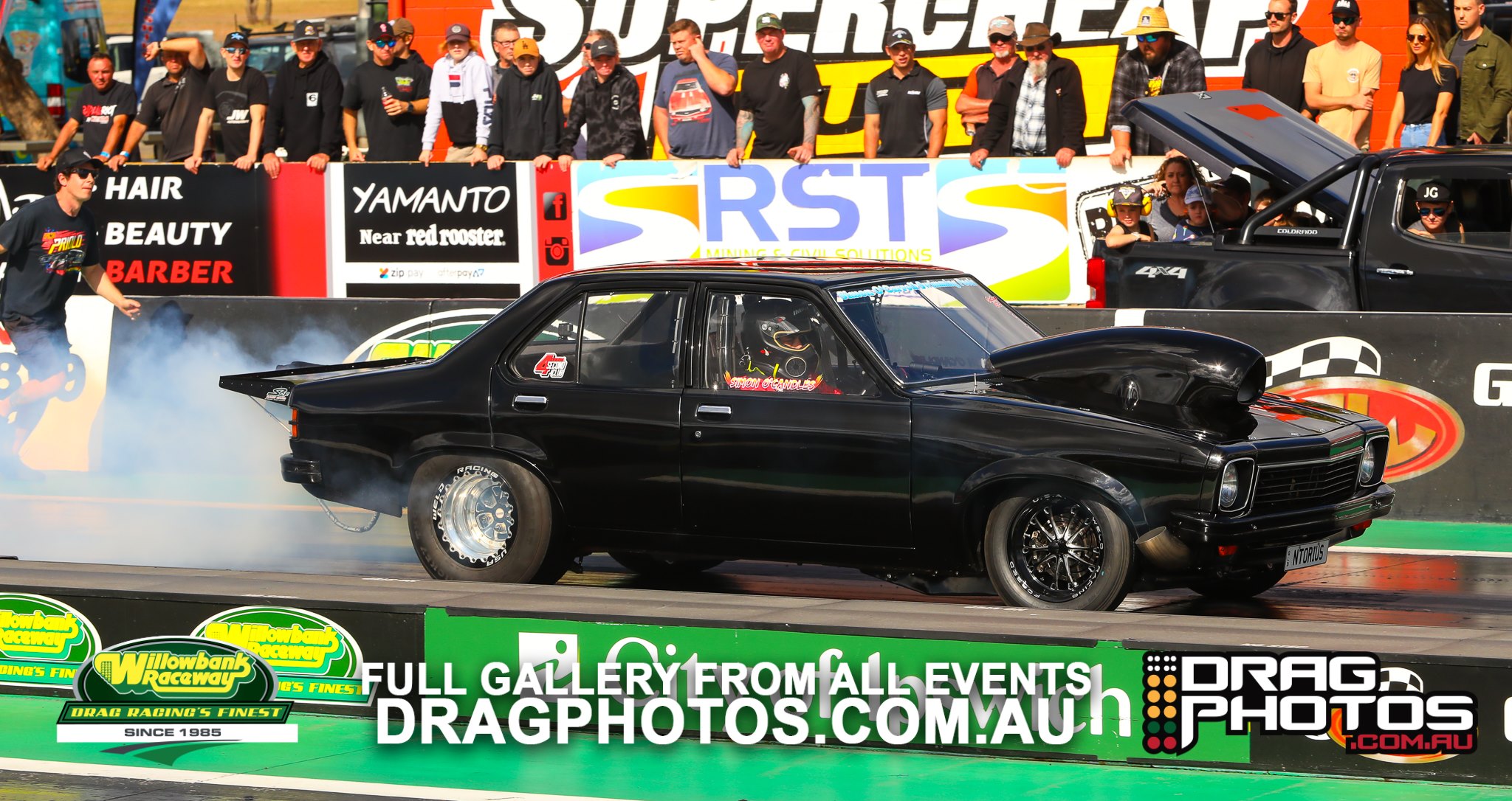 Simon O’Carroll has been one of the great supporters of the series and it was unfortunate to see his nitrous-assisted Holden Torana get into the wall. O’Carroll was unhurt and believes the car is repairable.