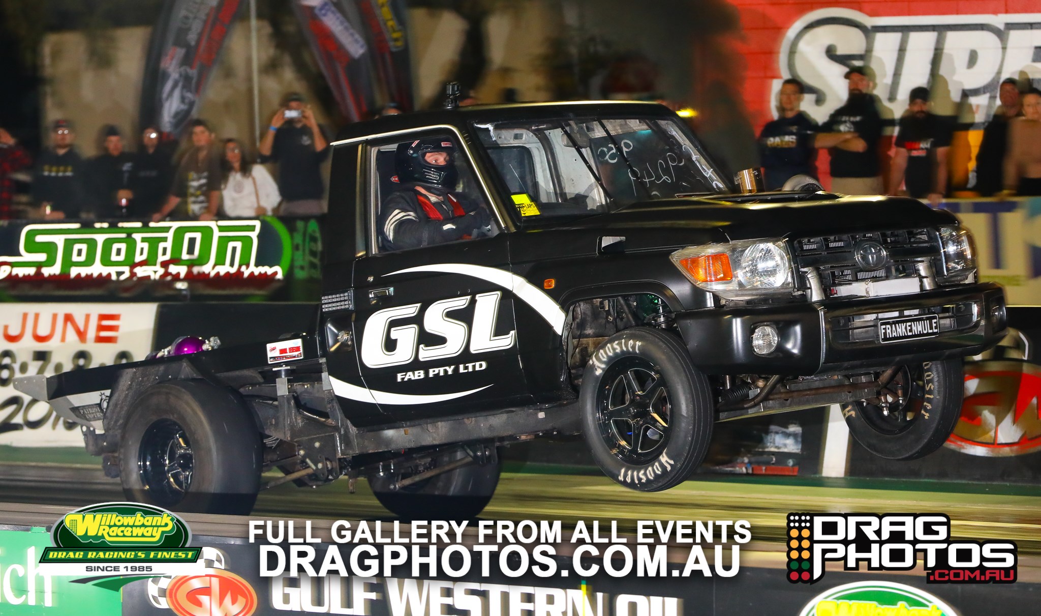 Matthew Grubisa got people talking before the event with a test run of 4.100/199.43mph, yet again going within a whisker of the first double-ton run on the eighth mile for a radial car in Australia. Grubisa ran 199.82mph earlier in the year and there was hope that this would be the day the 200 would fall. He top qualified in Outlaw Radial with a 4.070/198.52mph and took two round wins, but lost the third round to Dale Heiler and missed the final.