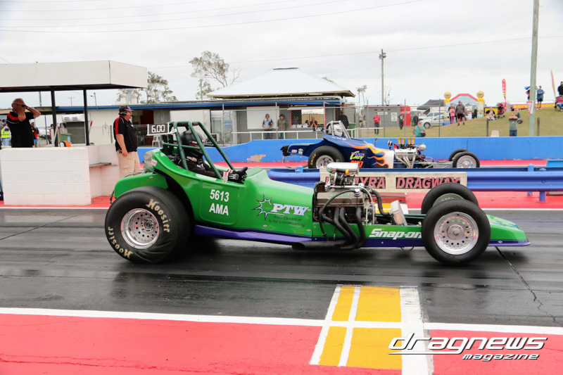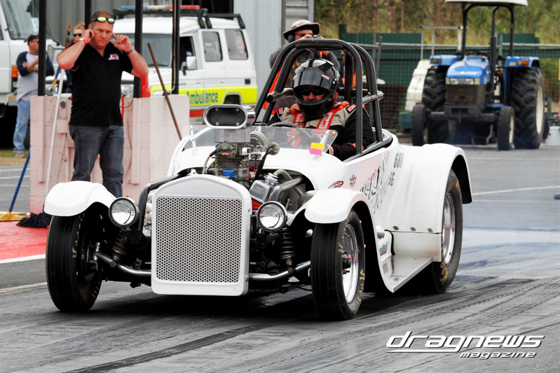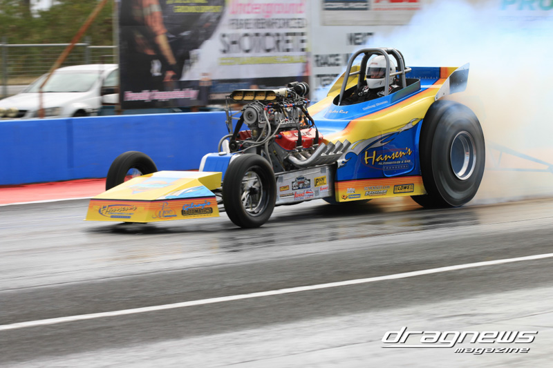 Headlining the show was Supercharged Outlaws with eight cars in the pits. Rodney Hansen led qualifying with his T-Bucket Altered recording a 4.74/152.18 over the eighth.