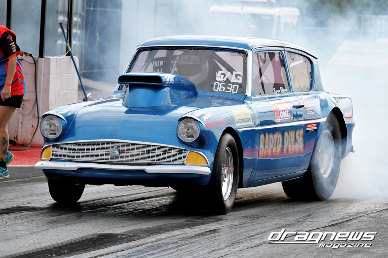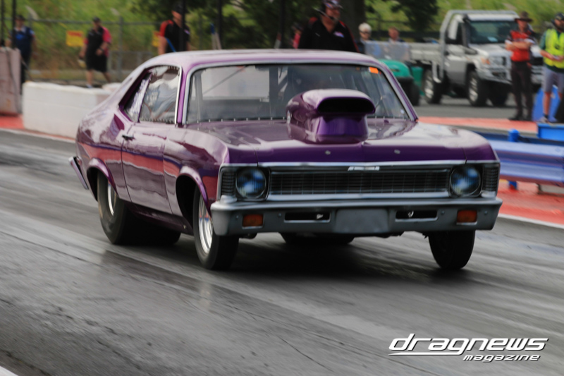 Super Sedan had 12 entries with Gavin List (above) on top in 5.77 seconds with his Chevy Nova. After three round wins List faced off against the Holden HQ Ute of Bob Baker. Baker was away first but his .083 reacted .110 over 6.040 was no match to a .002 light and a .105 over 5.795.