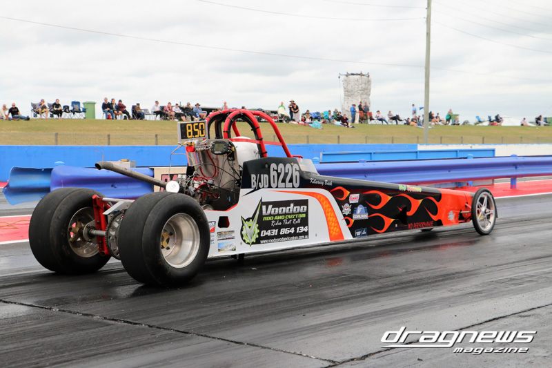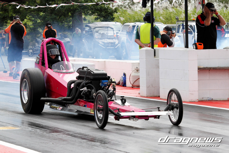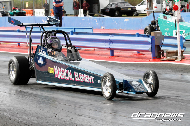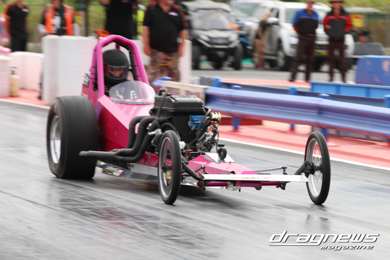 Junior Dragster saw Dylan Everett take No.1 during qualifying with an 8.05 timeslip. He was in the running for the finals but a number of break-outs meant that it came down to Andrew Tinney and Kilarney Back. Unfortunately Back went red handing Tinney (above) the automatic win.