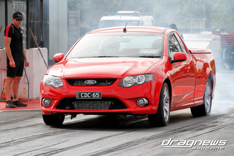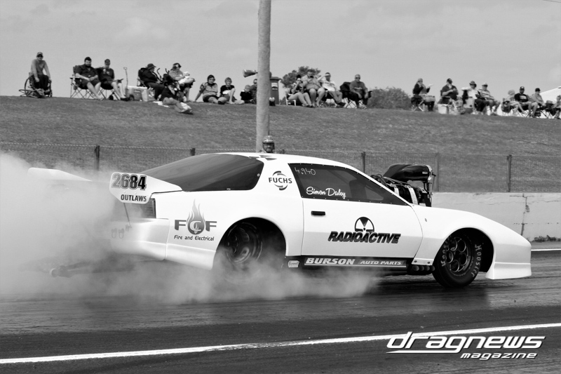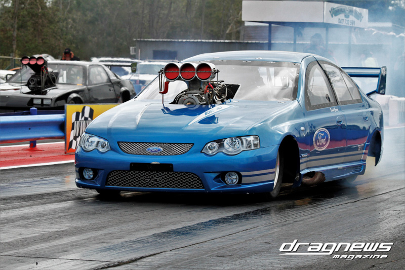 Super Street started with 19 entries and saw Craig Chapman lead the charge with a 6.81 ET. After three rounds the finals put Bundaberg racers Brett Keirnan and Richard Dawe together. The all-Ford final saw Keirnan leave first with a .050 reaction and followed by a .088 from Dawe. At the stripe both driver broke-out, however, Keirnan (above near) took the trophy and the points with a .009 under 7.211 to a .018 under 7.102 ET.
