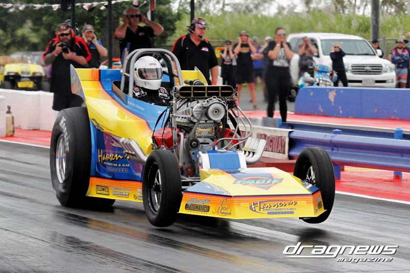 The Holden Monaro of Anthony Spataro was second with a 4.78 and followed by the Roma-based Z28 Camaro of Russell Grulke (4.933). Randall Mour in the world’s only Holden FJ Funny Car rounding out the top half of the field with a 4.938.