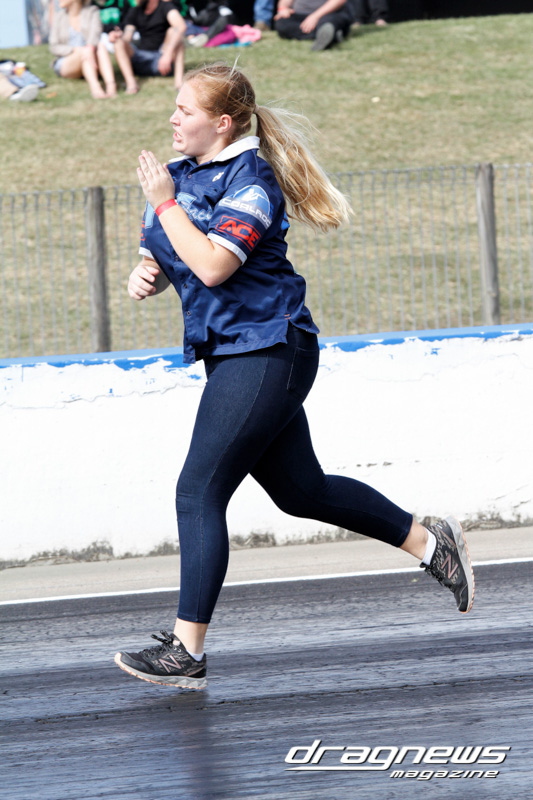 In Modified Eliminator Katie Cunningham (pictured) was in dominating form, top qualifying with a 4.66 ET in her Team CFZ dragster and then winning all three rounds. Joining her in the final was Savos Pandelakis. His front-engine dragster was away first on the handicap but Cunningham had the better package taking the win with a .005 over 4.61 ET to a .021 over 5.461.
