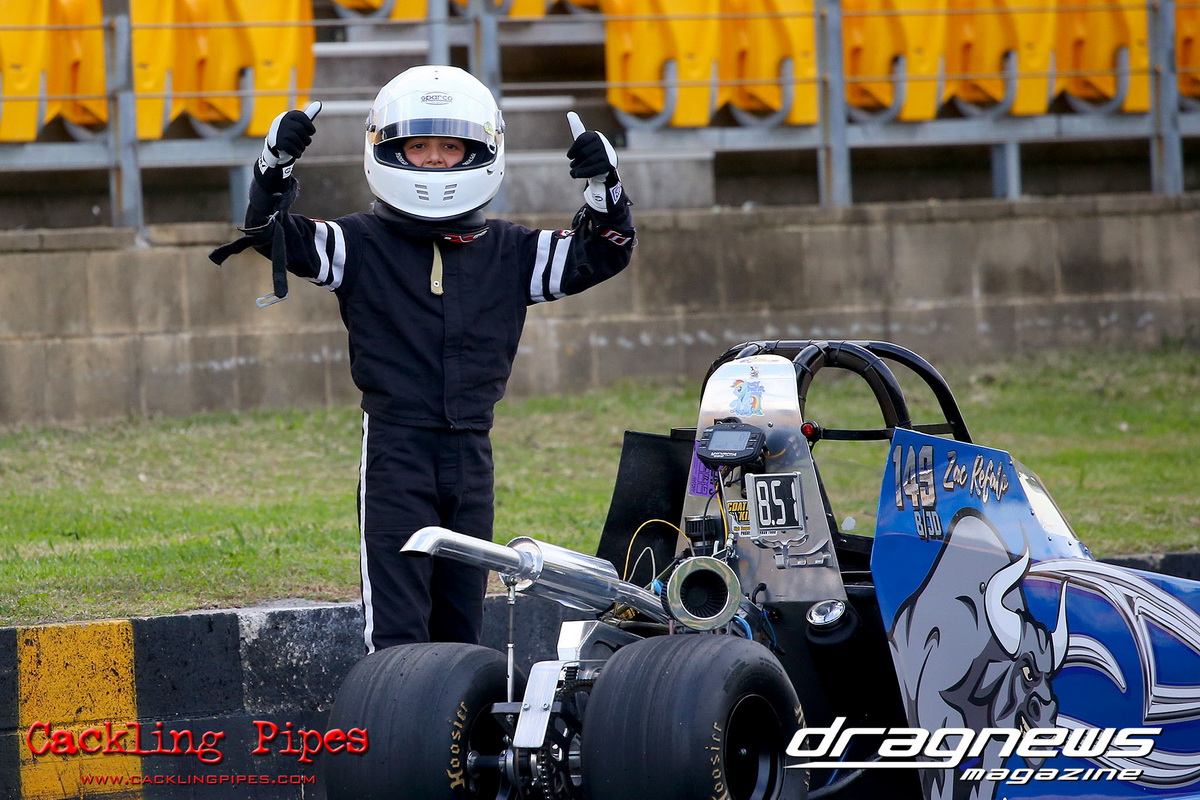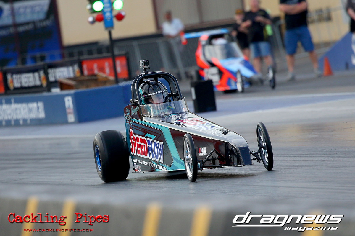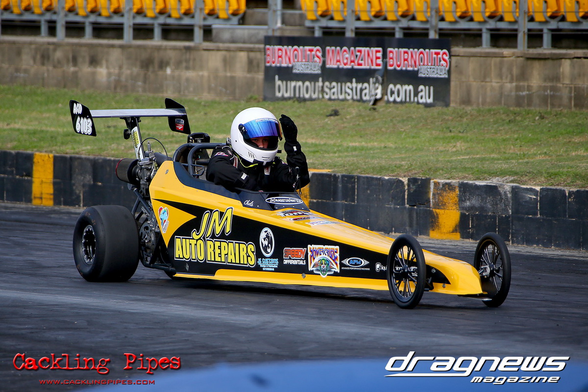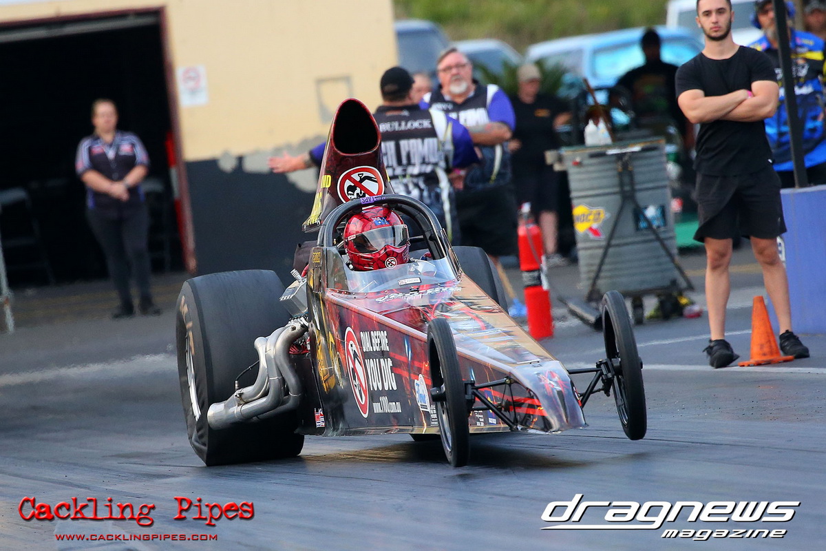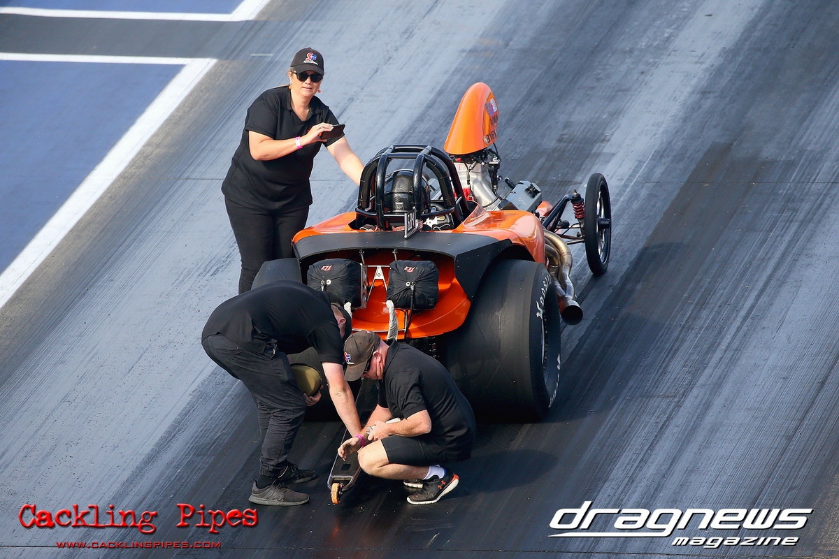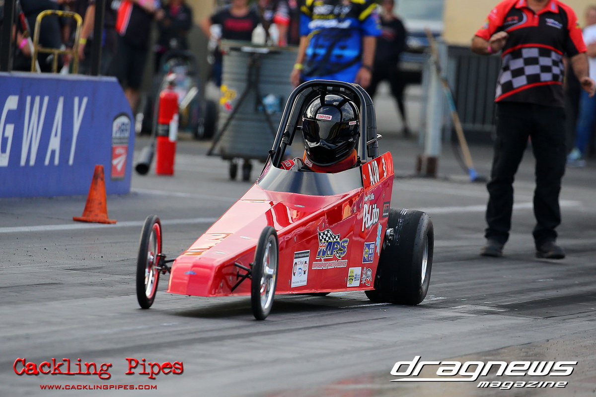 Jenny Petrie hasn’t had the ideal start to the Modified championship, but she turned her luck around in her Fiat Toppolino bodied altered, and some good luck rubbed off in the final after a tardy .227 reaction became irrelevant when Andrew Musgrave went red by just 3 thou in his altered. With the rainout ruining competitors of valuable points, the win will get Petrie right back in the hunt.