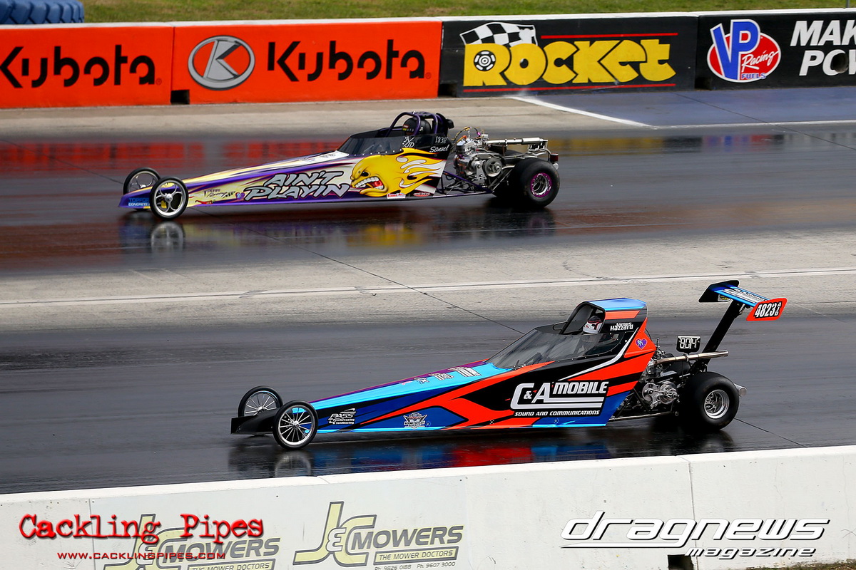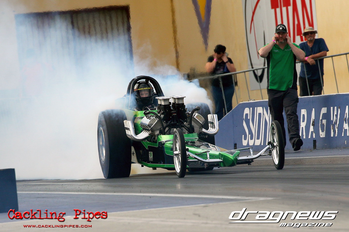 It was a small field in Super Gas that saw Darryl Stephen run a great 9.902 on the 9.90 index in the final, only he had left a -.009 cherry hanging on the tree, throwing the win to Vince Panetta’s Torana.
