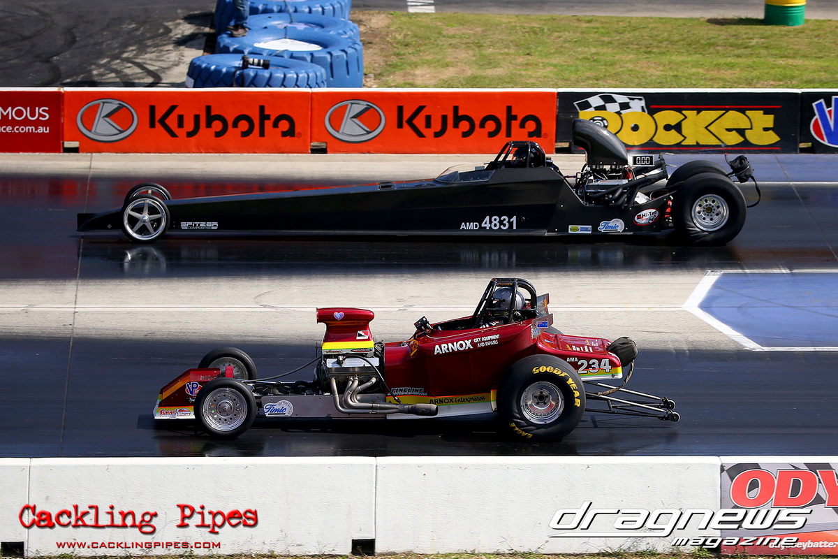 Jono Roylance and Thomas leake certainly look to be prime contenders in Top Sportsman, with both racers up the pointy end of the championship, they faced off in the final for round three honours. Second gen racer Leake taking the winner in his Hilux on a holeshot to Roylance’s Cortina. Depsite the loss, the brand new Roylance machine has proved it self a force already in the division.