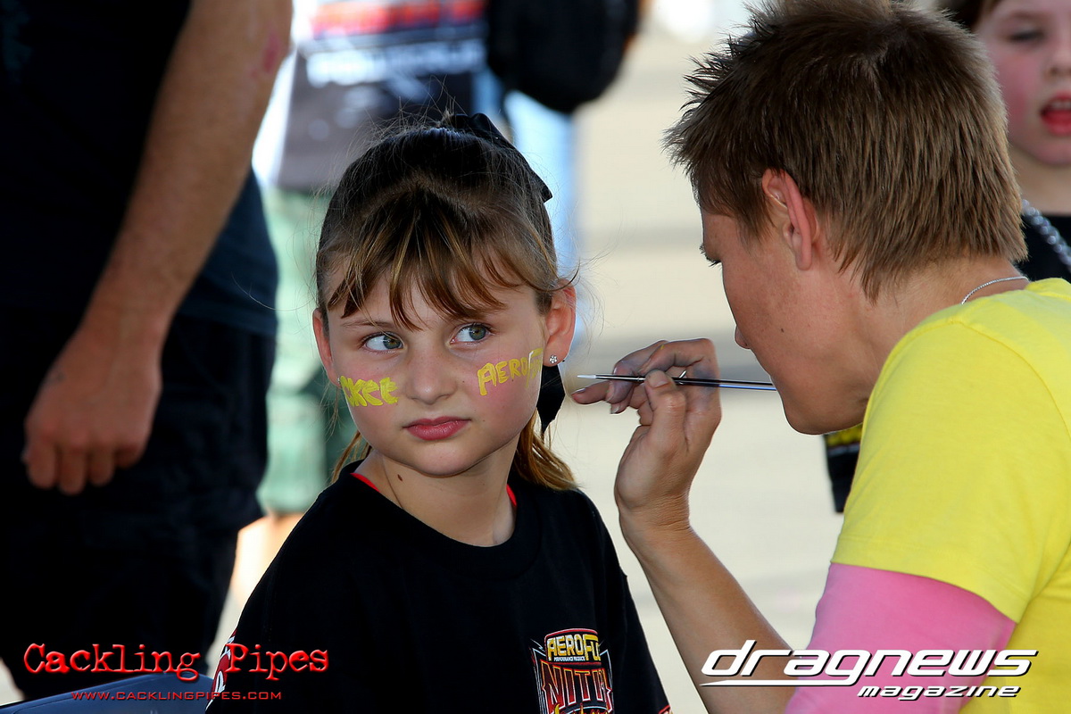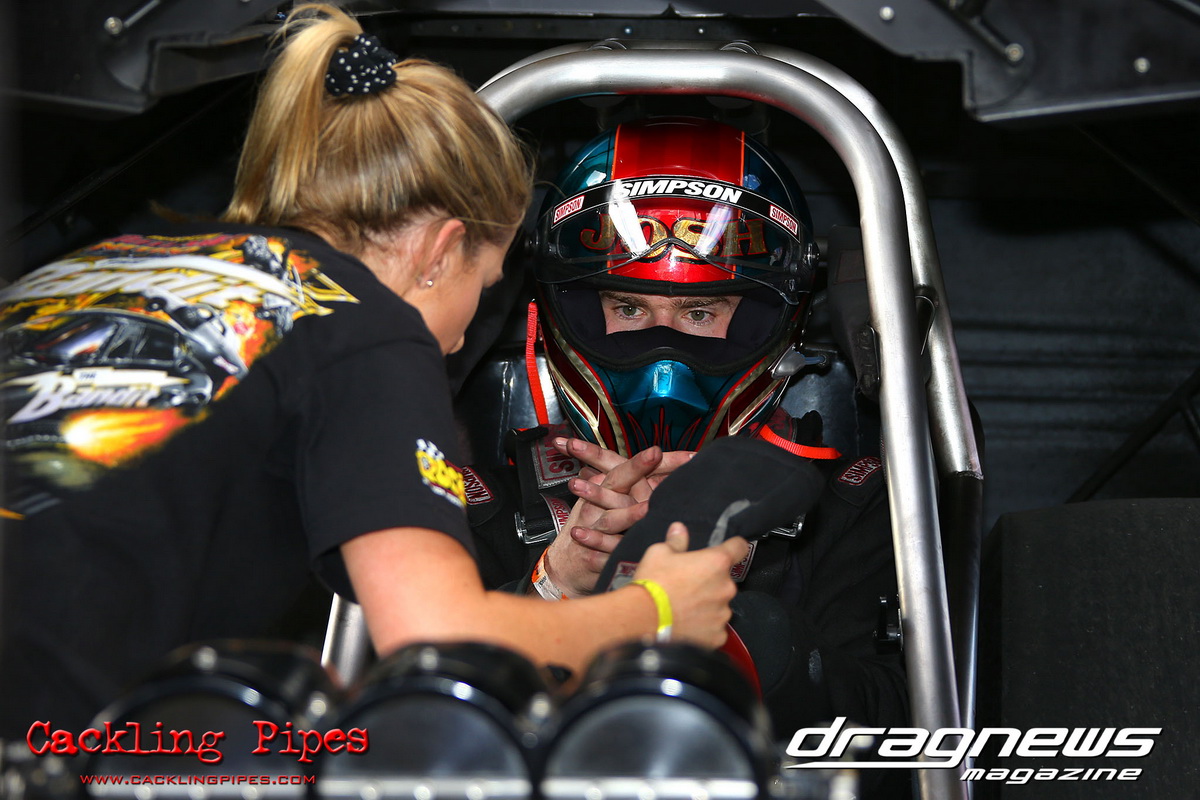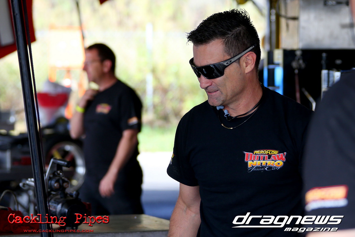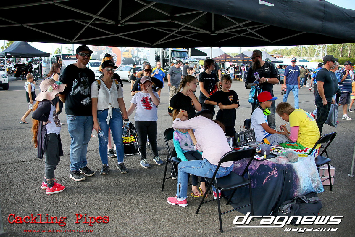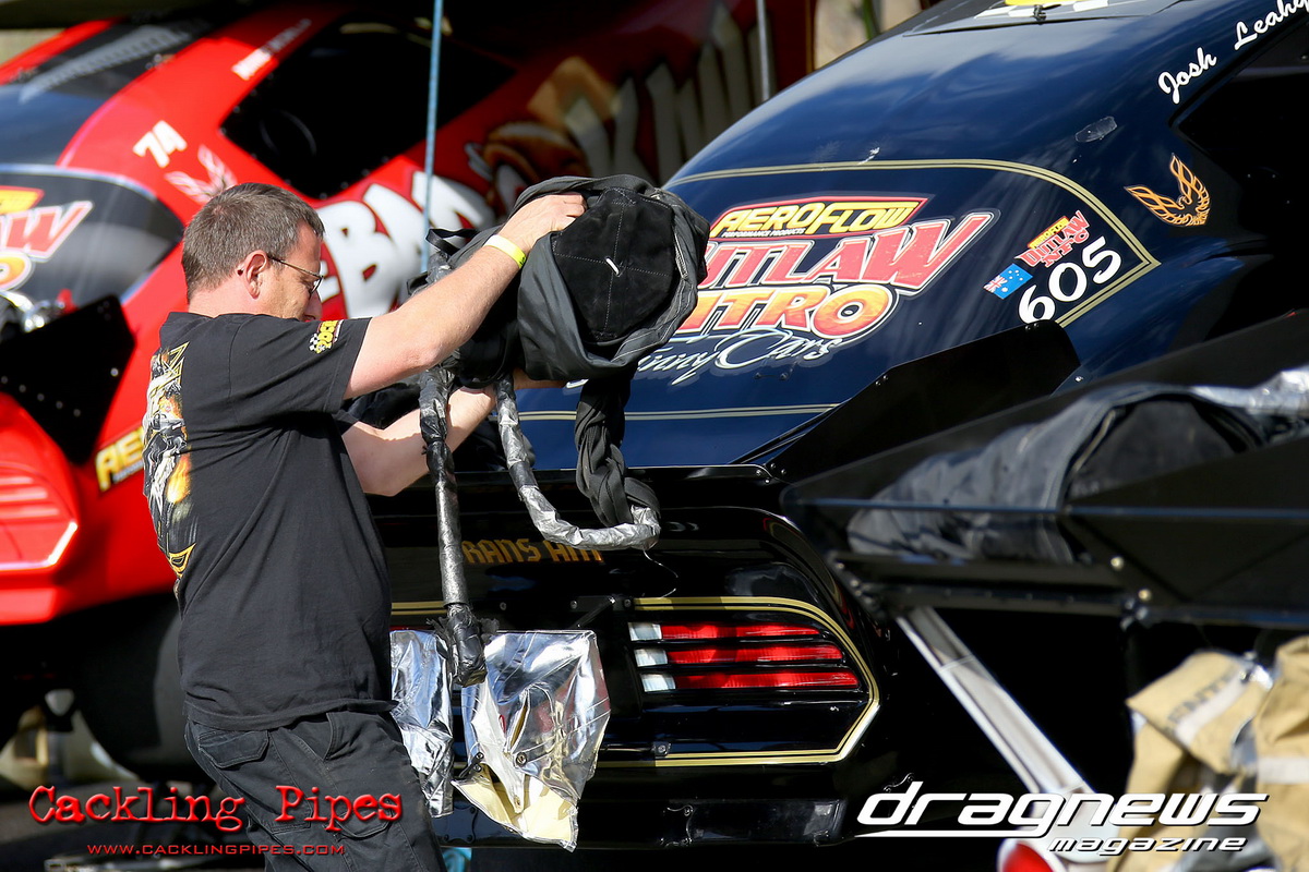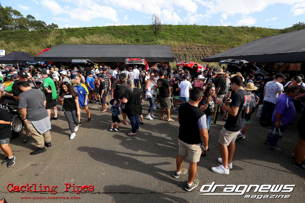 Dark Horse dropped a consistent 5.67 on Red Devil’s 5.73. Let’s Boogie decided it wanted to do a tyre smoke dance on the start line for Emma and she was easily “terminated” by Walshe with a 5.62. McMillin’s One Bad Kiwi took out the other Begley with LA Hooker’s 5.64 coming up short against the Kiwi’s 5.57. The Bandit won out in the Leahy family dual 5.58 to 5.67 against Storm Trooper and the round finished with an unlucky 5.54 from Avenger being trumped by a 5.51 from Nitro Express in one of the quickest side by side Aeroflow Outlaw Nitro Funny Car passes ever.