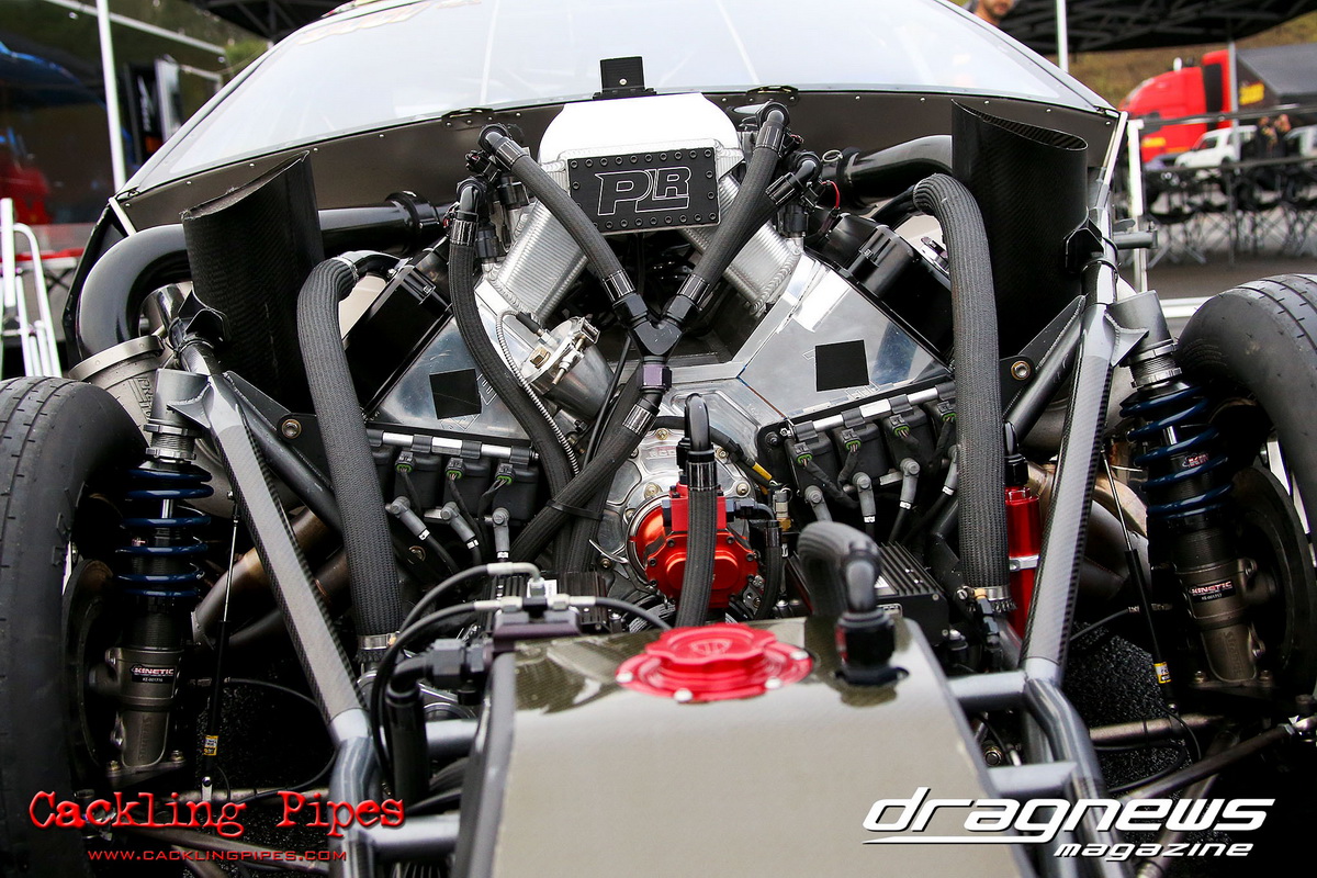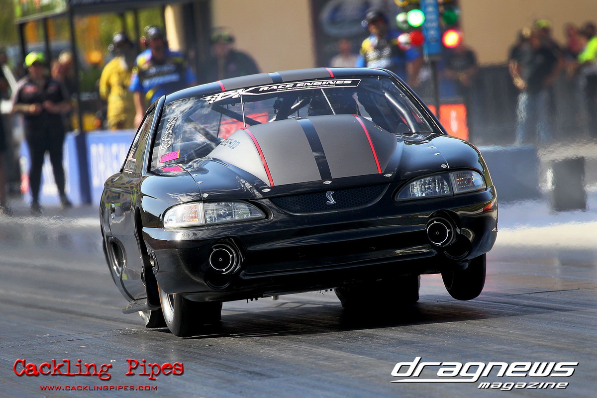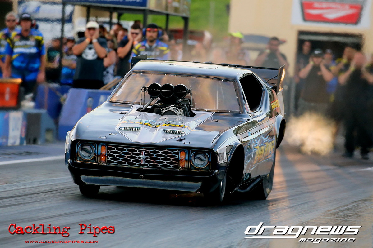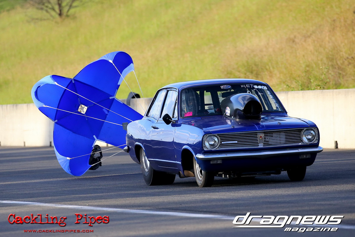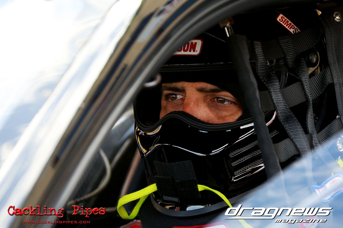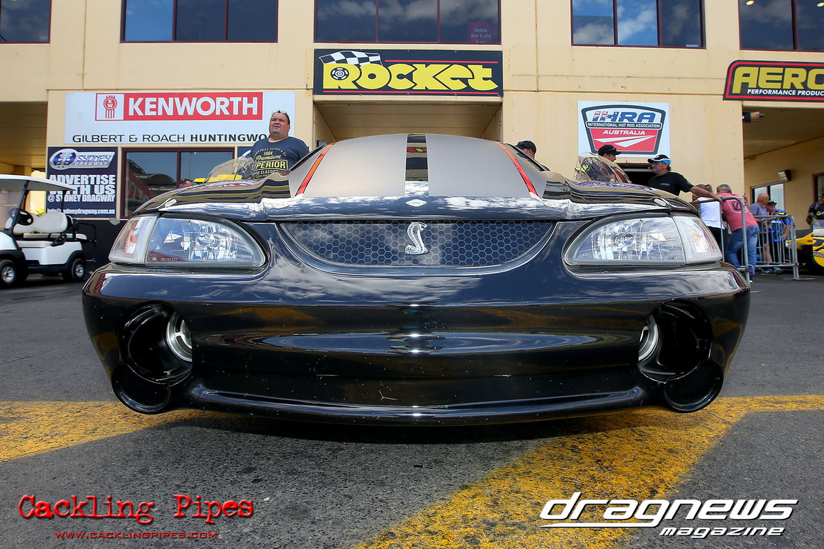 Tyre shake dogged Plumpton, going down to Davies’ 5.95 in a classic Pro Mod match up. Tsakiridis again hit 271mph backed by a 5.75 ET to defeat Michael Haimandos’s twin turbo small block Mustang’s 6.47. George Rehayem notched a win against Joseph Murina’s blown Corvette with a 6.44. Spinozzi and Brett Gillespie in the revamped ’34 Chev had singles.