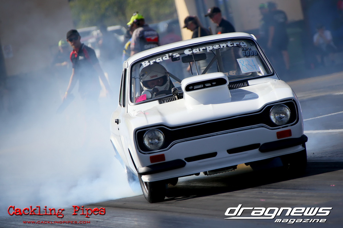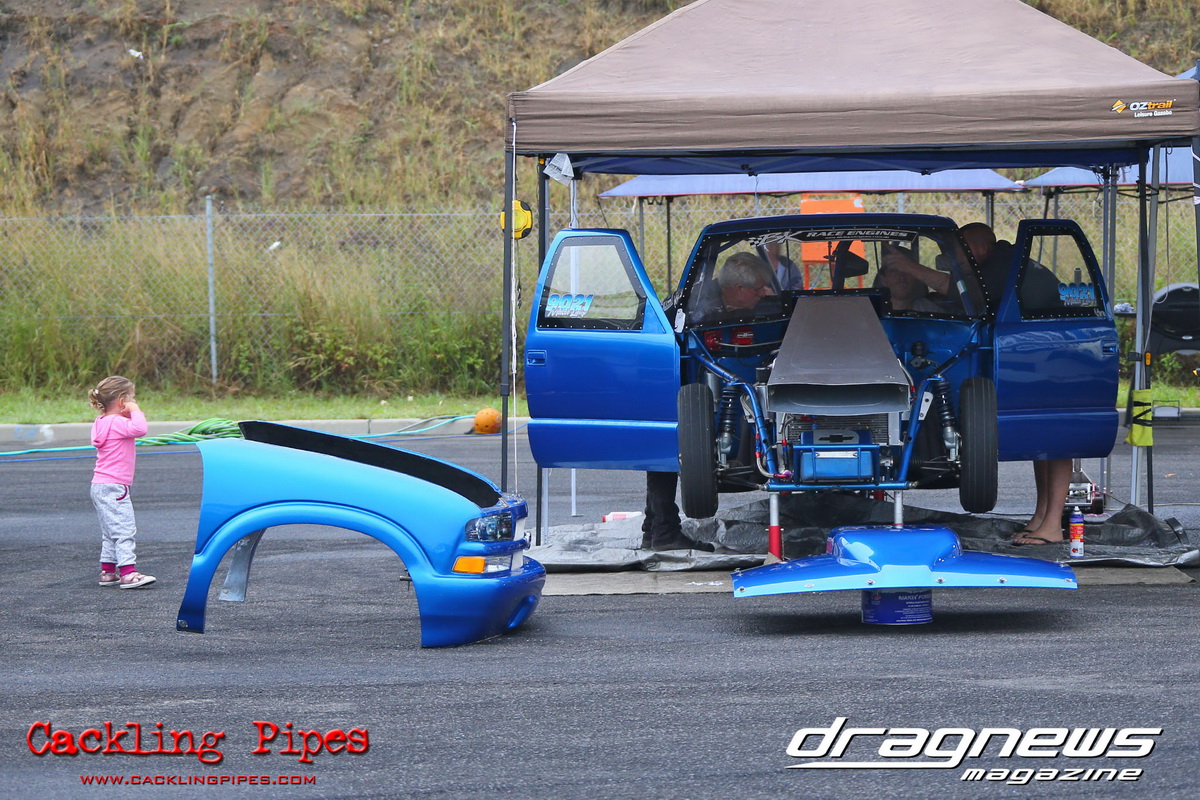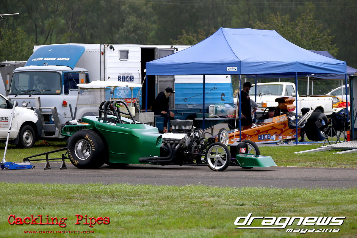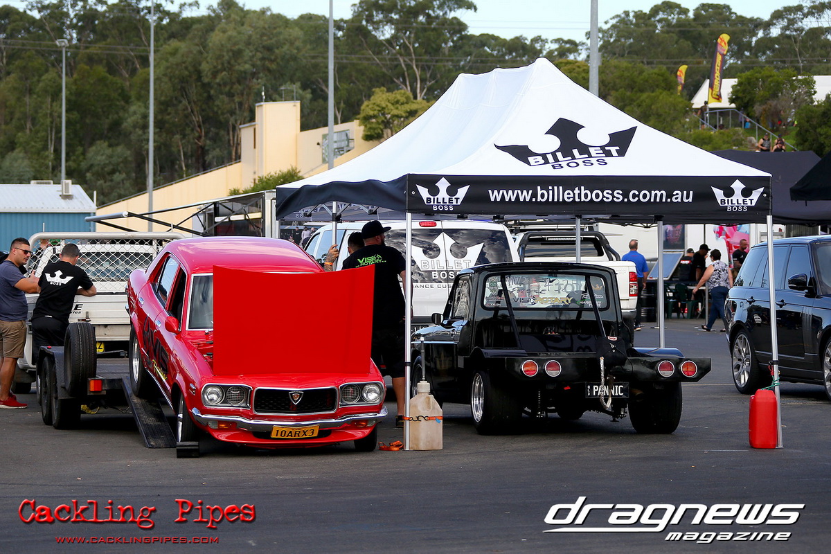 Once the brackets were decided and racers seeded, eliminations begun and the upsets started in the early rounds with track champions on the trailer already. By the end of eliminations a pair of dragsters lined up for the quicker ET bracket final. Local Brendon Luke was in a recently purchased ride and Simon Barlow, all the way up from South Australia, was in his potent six second machine. Luke dumped a .003 light on Barlow at the green and at the stripe stopped the timers with a 7.906 on a 7.89, earning the holeshot win to Barlow’s 6.706 on a 6.70.