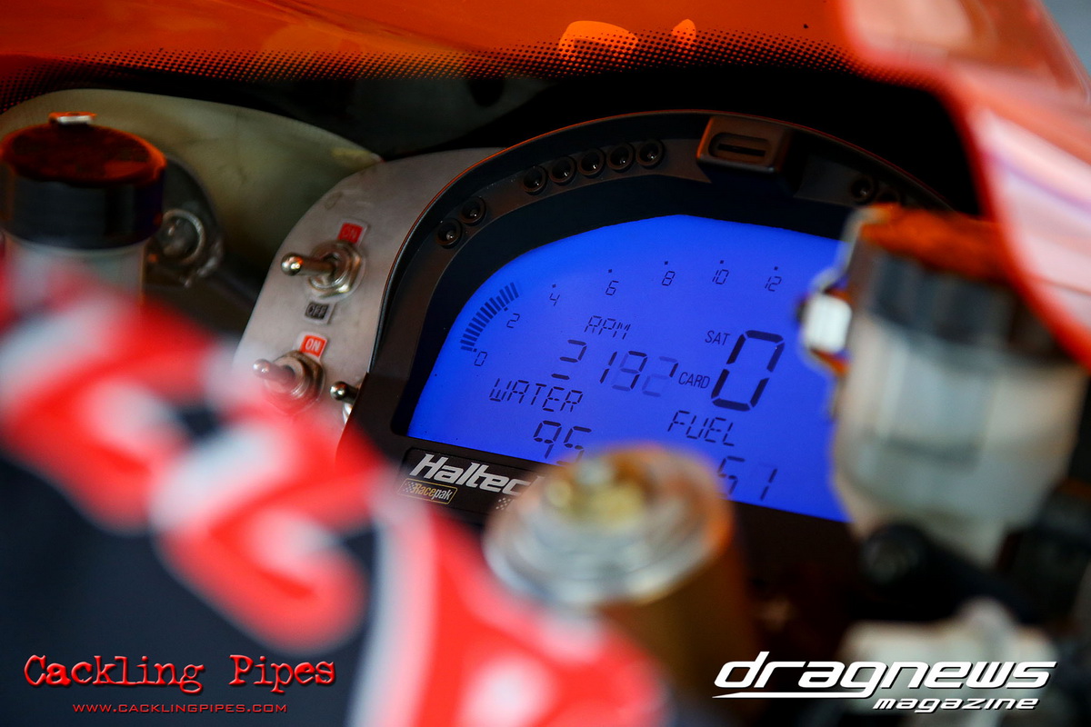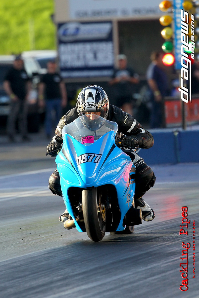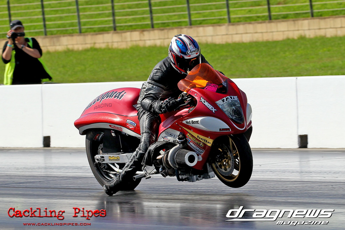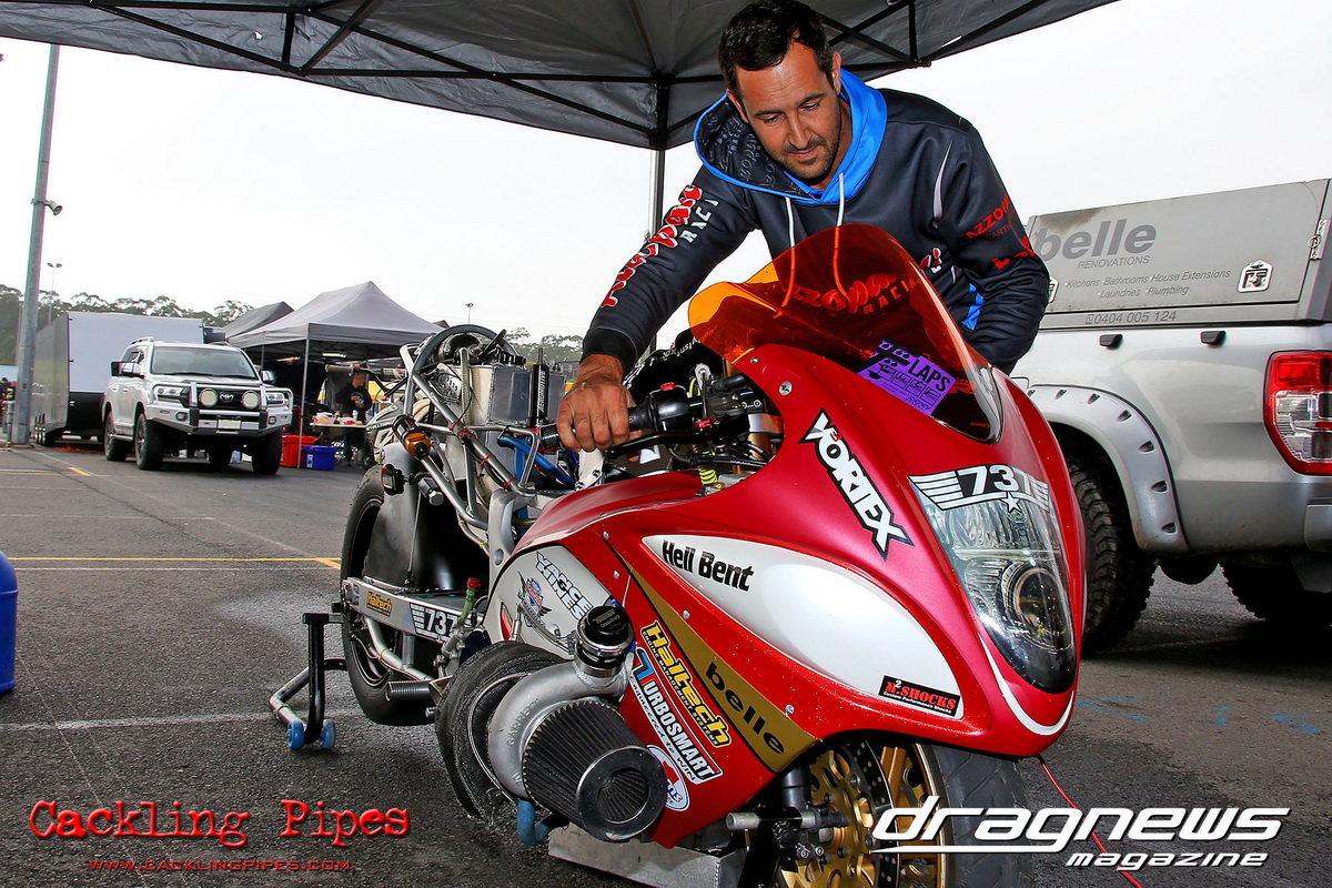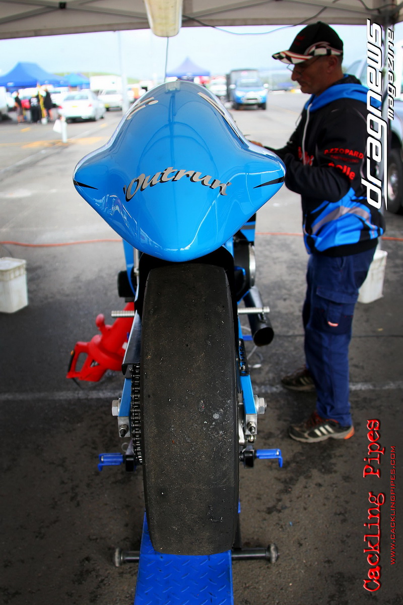 The pair virtually repeated their numbers in round wins over Rowan Lind and Darren Foley respectively, and again in round two. In the final round Lind soloed to a 7.62 at 185 and the two Azzopardi team bikes threw down. Borg had a huge jump, but it was not needed when the Azzopardi bike struck trouble and Borg rode away to a 7.32 186mph event win.