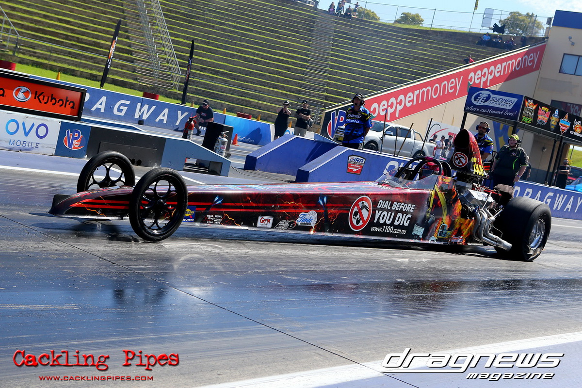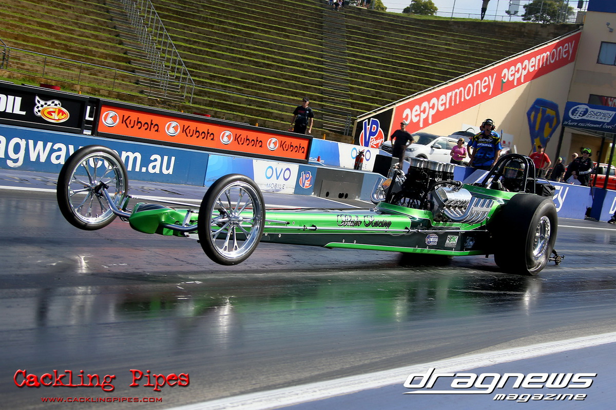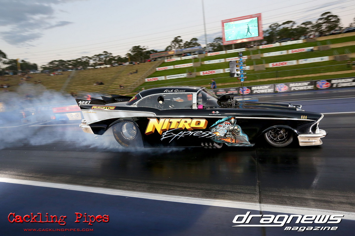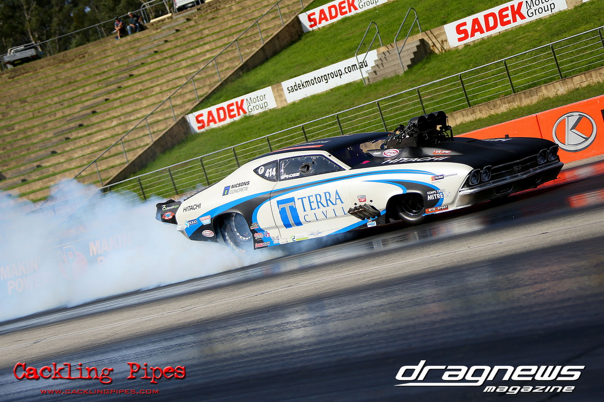 In front of a respectable crowd, Rick Gauci again dominated in the Nitro Express Chevy to claim the win with a track record 5.42 at 268mph in the final round of racing, clinching victory over Dan Donnelly in Avenger and Paul Messineo in Dark Horse.