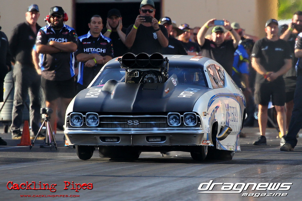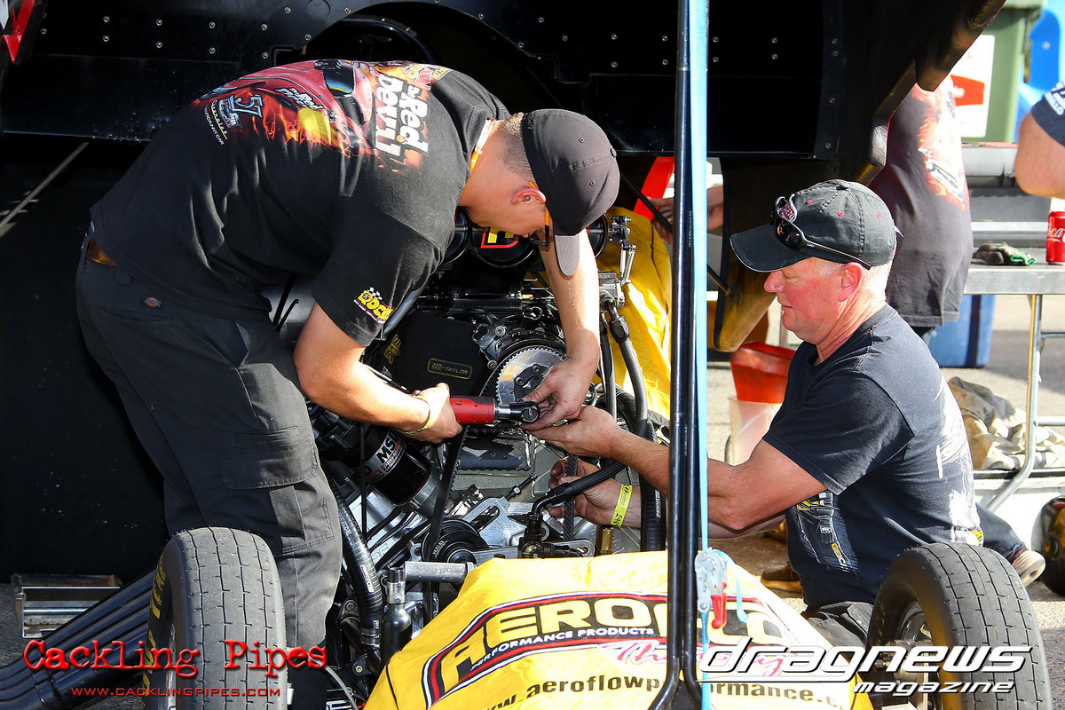 Qualifying was open for three hours with a maximum of three runs allowed for each individual competitor. During that time, Paul Linnett rode out a crazy wheelstand in his altered after the wheelie bar failed. There was immediate concern for Linnett following the chassis crushing landing and he was transported to hospital. Following the event it was reported Linnett has suffered several cracked vertebrae but was back home to begin recovery, and we wish him the best and hope he is back on track soon.