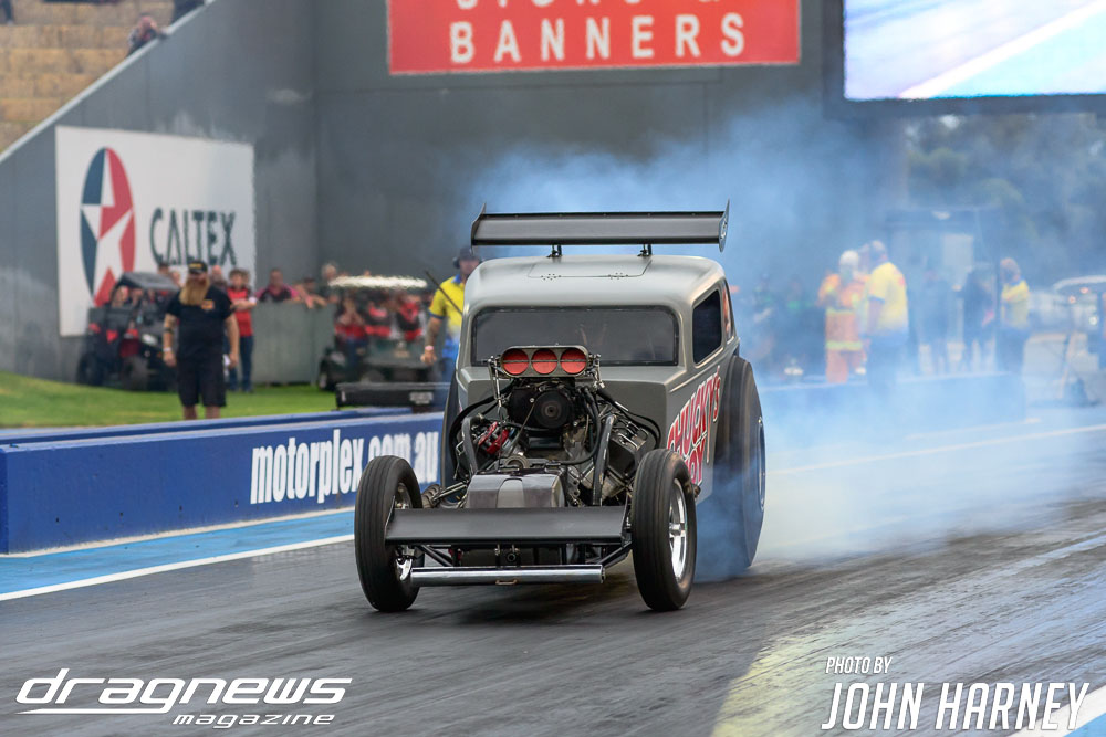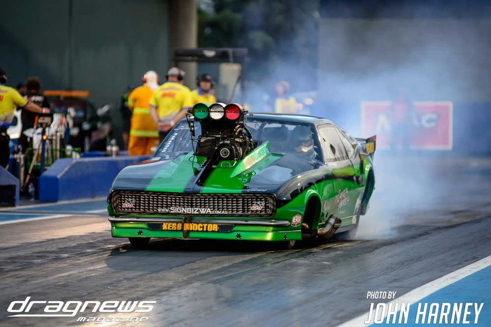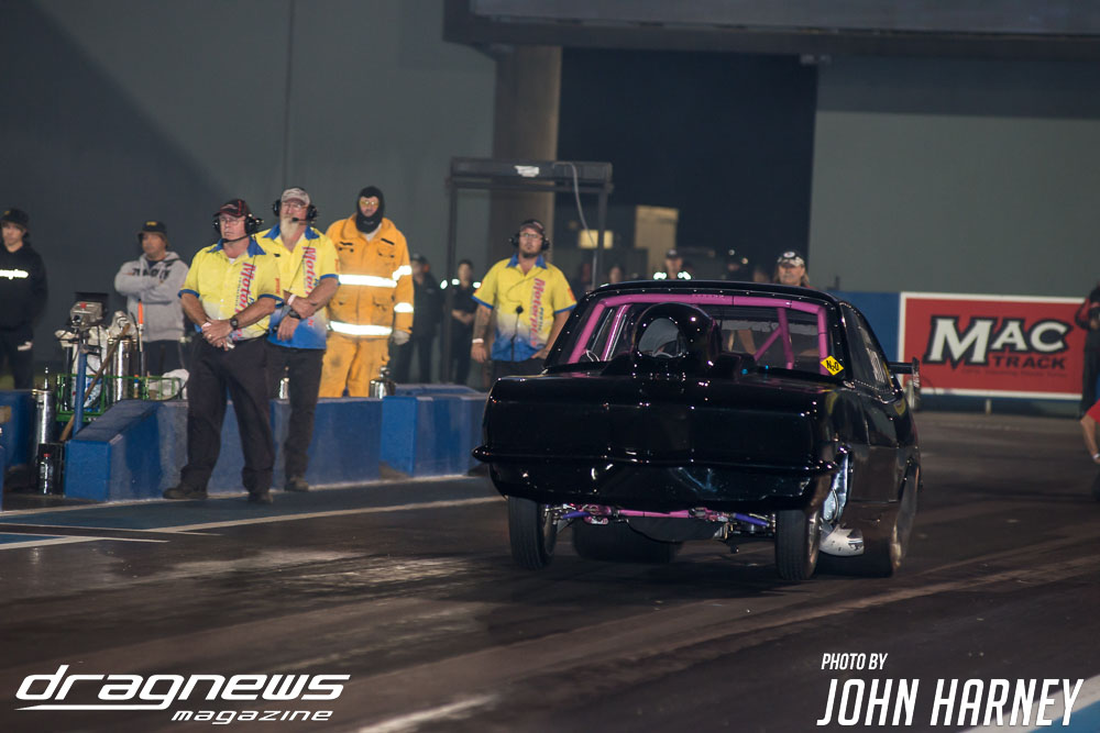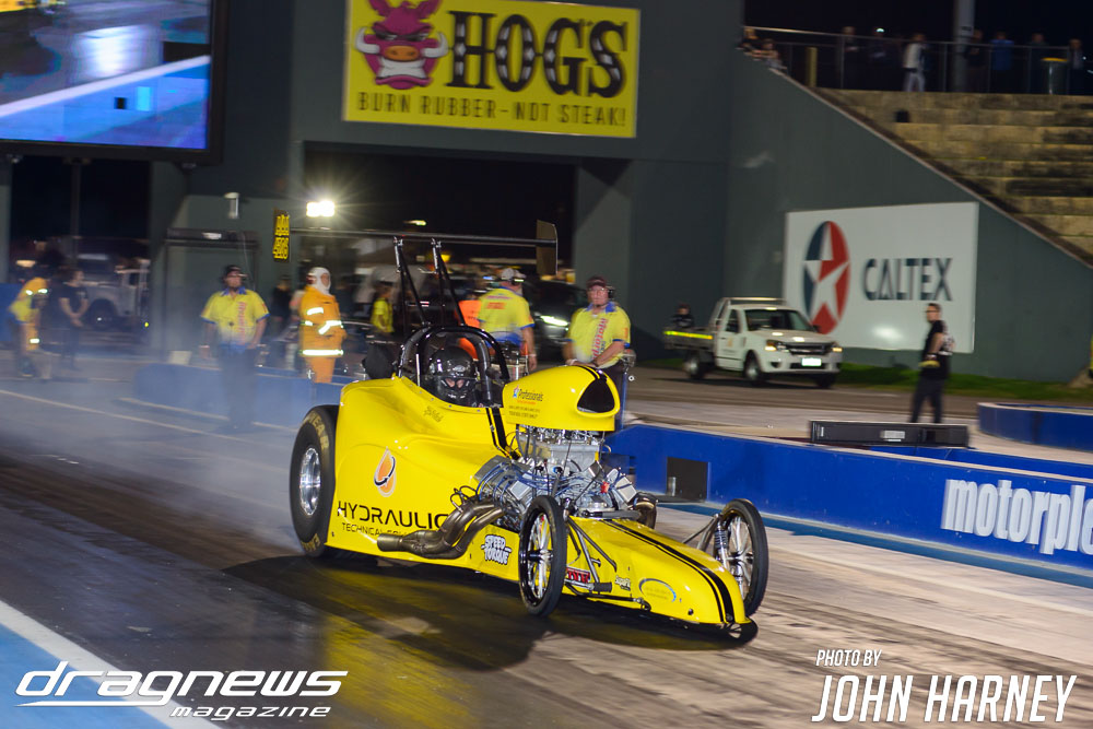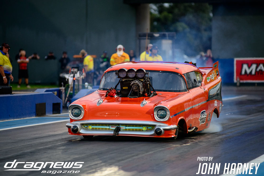 The nitro action wasn’t restricted to the Aeroflow Nitro Hot Rods with Outlaw Nitro Funny Cars also on track. Andrew Katavatis took three wins from three rounds of match racing against Matt Abel, setting a new personal best time of 5.56sec.