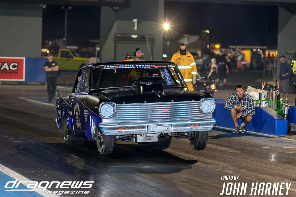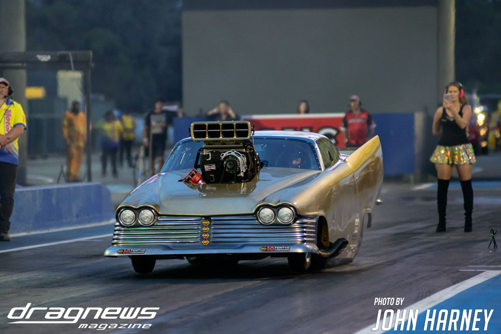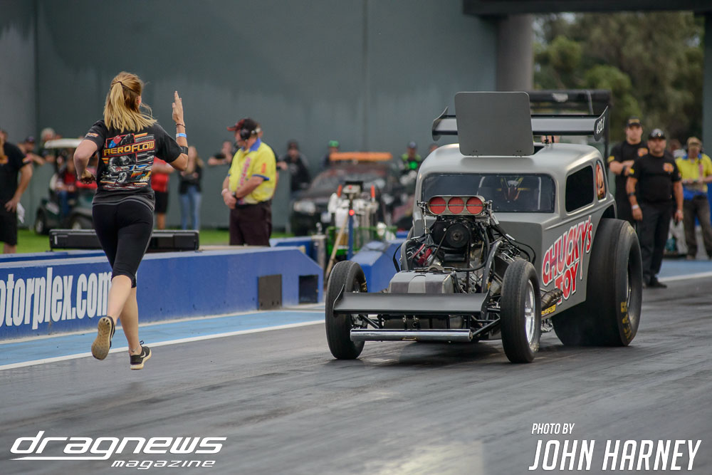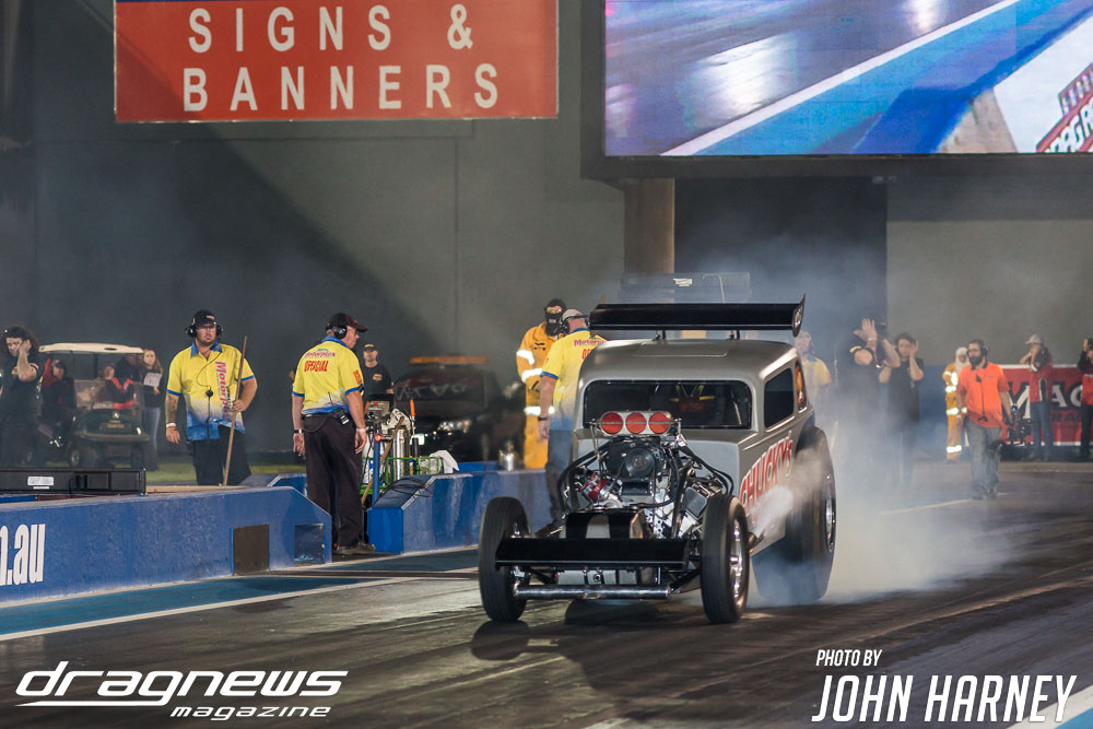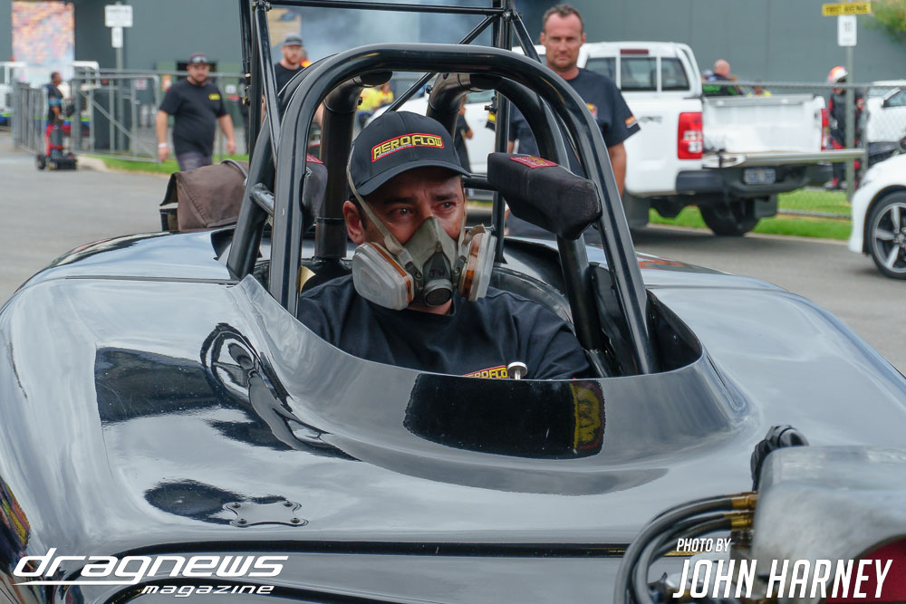 The nitro action wasn’t restricted to the Aeroflow Nitro Hot Rods with Outlaw Nitro Funny Cars also on track. Andrew Katavatis took three wins from three rounds of match racing against Matt Abel, setting a new personal best time of 5.56sec.