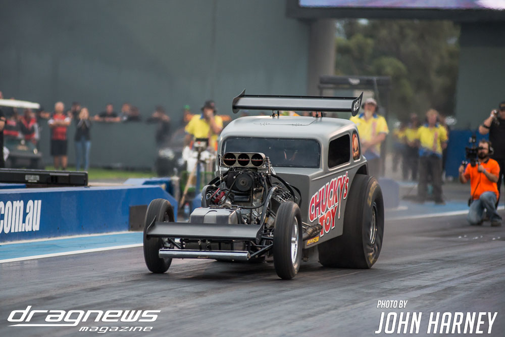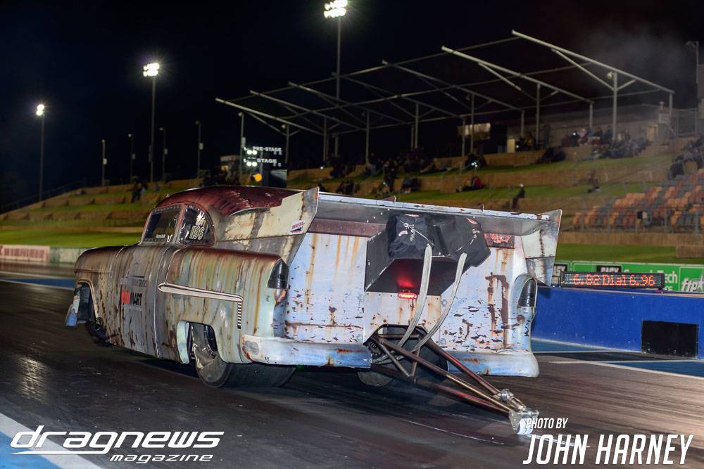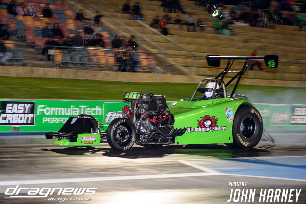 While Sydney’s Rick Gauci was the performance leader early with a run of 5.98sec. in ‘Chuckys Toy’, McMillin got the upper hand in a messier final where a 6.33sec. at 354kmh proved enough to cover a 6.40sec.