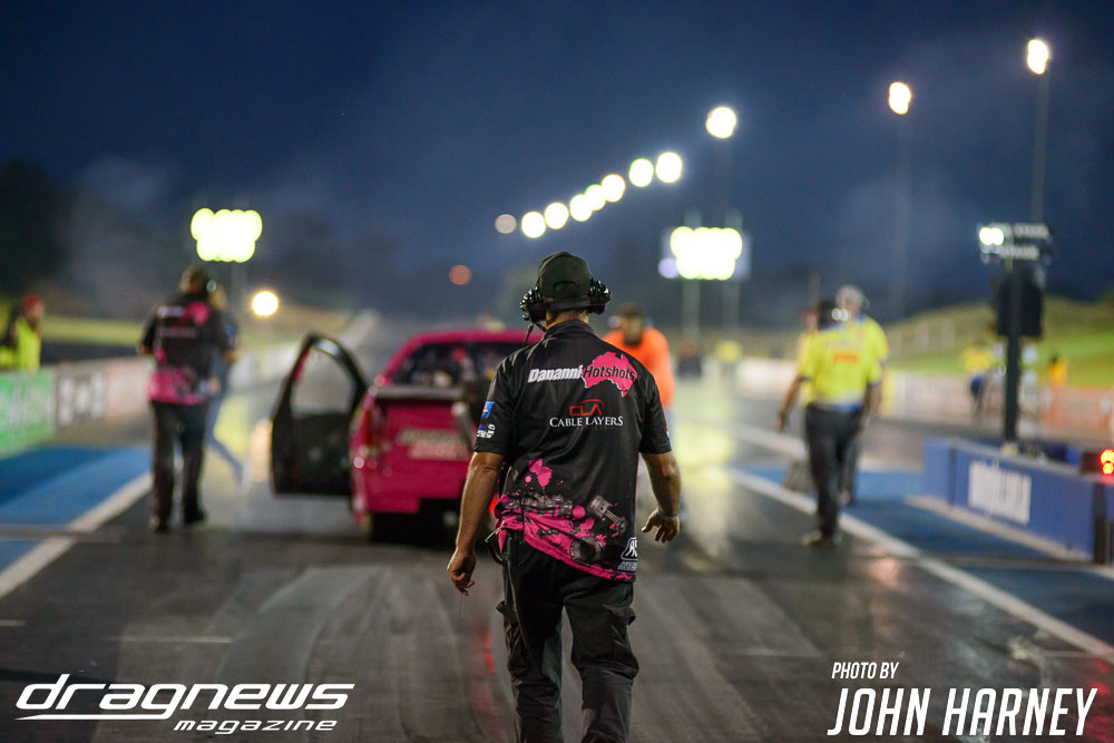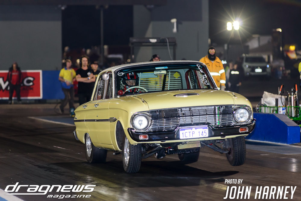 Ryan Moresby’s hot streak in the final event for the Direct Mining and Industrial Summer Slam season continued with another event win, bringing him to second in the points standings. Moresby was back in the five second zone in the Dananni Hotshots Ford Falcon with a 5.96sec. blast in the elimination round. The final was unusual with opponent Wayne Keys not appearing due to a braking issue while Moresby’s car had an electrical problem.
