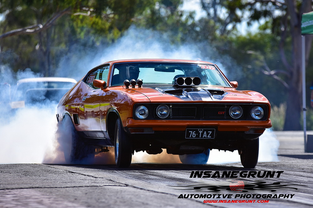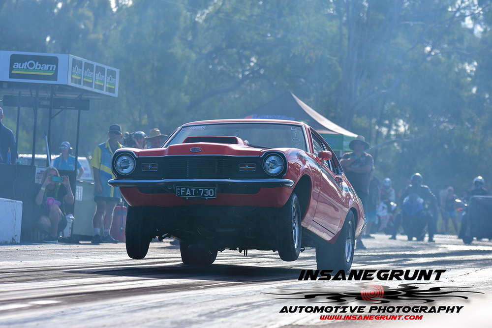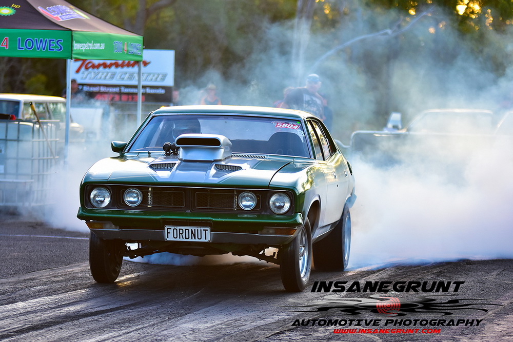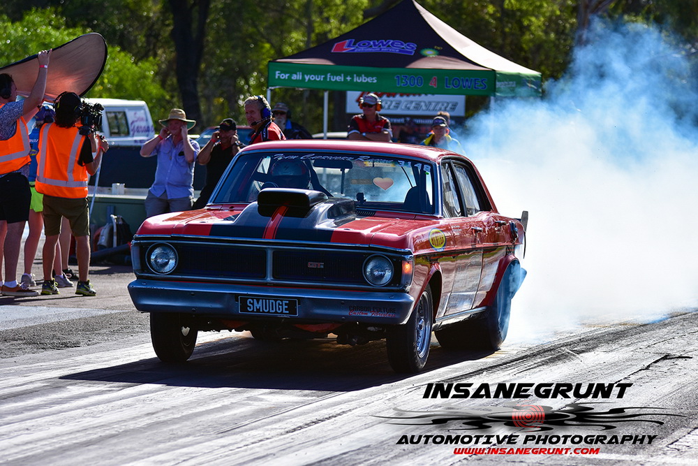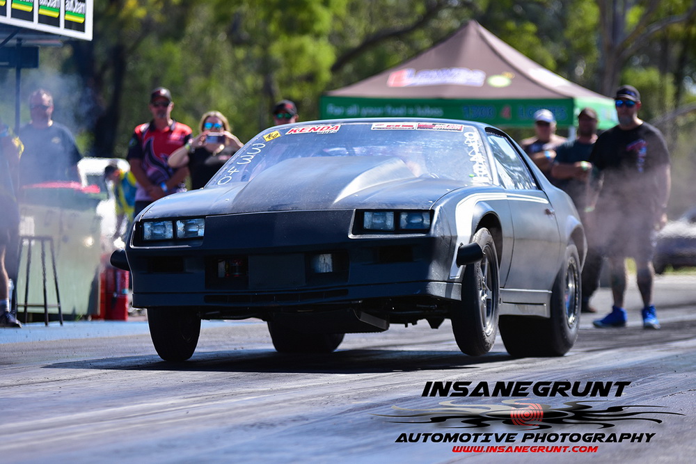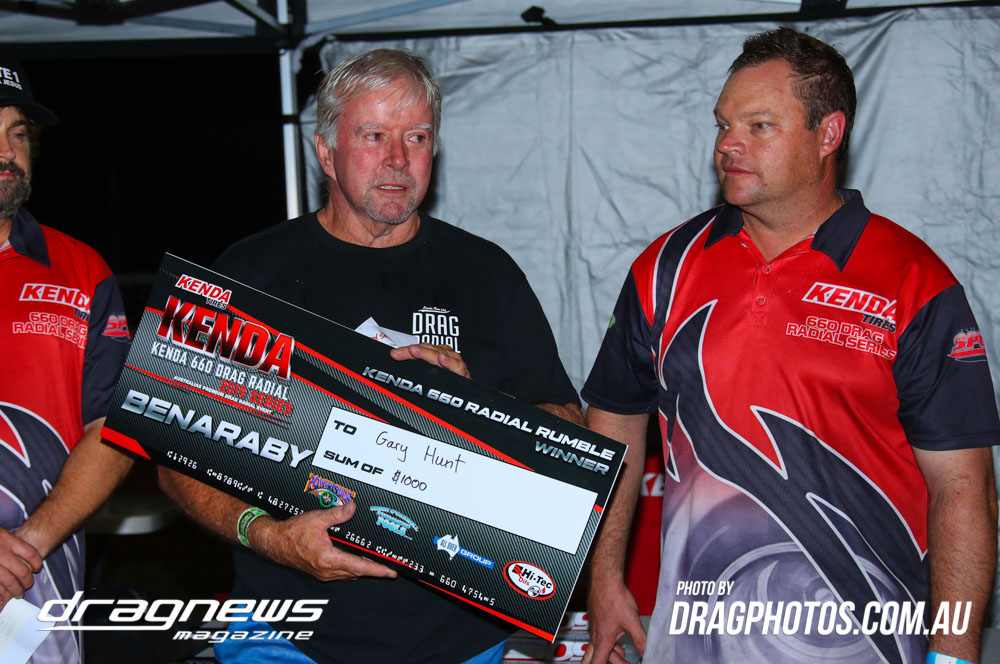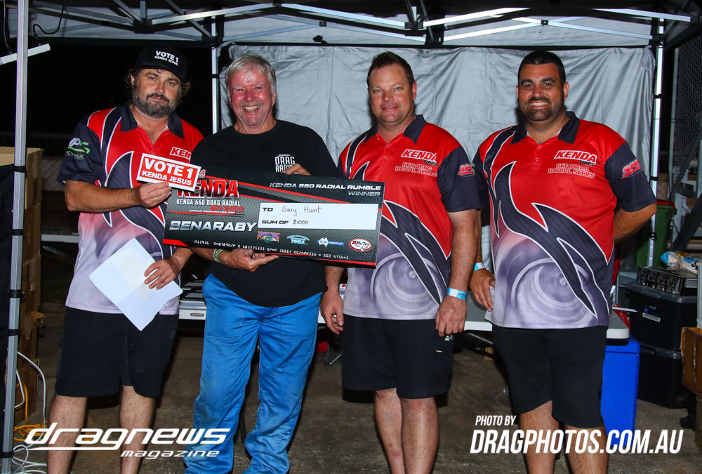 The Kenda 660 Radial Rumble bracket final was between Garry Hunt in a borrowed XT Ford Falcon against Barney Lindner in his supercharged 68 Camaro, with Hunt taking the win with a 6.30 to a 6.50.