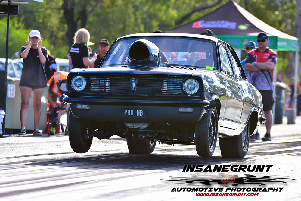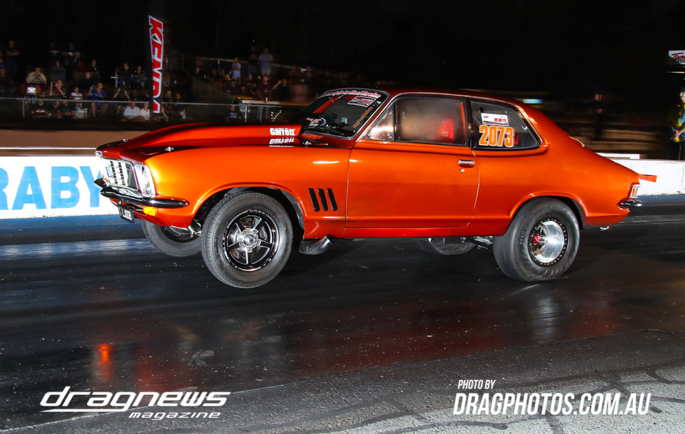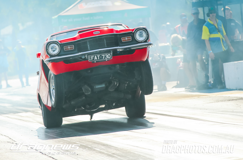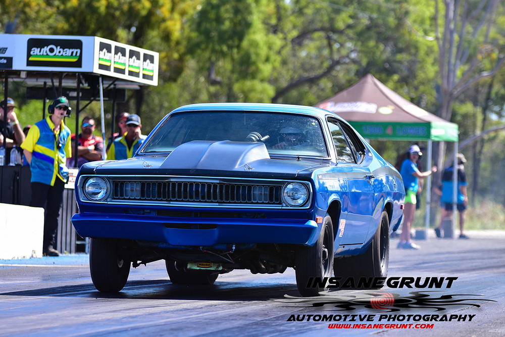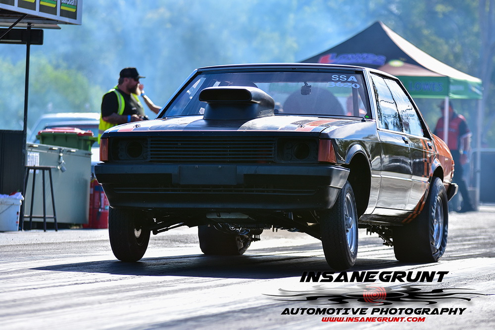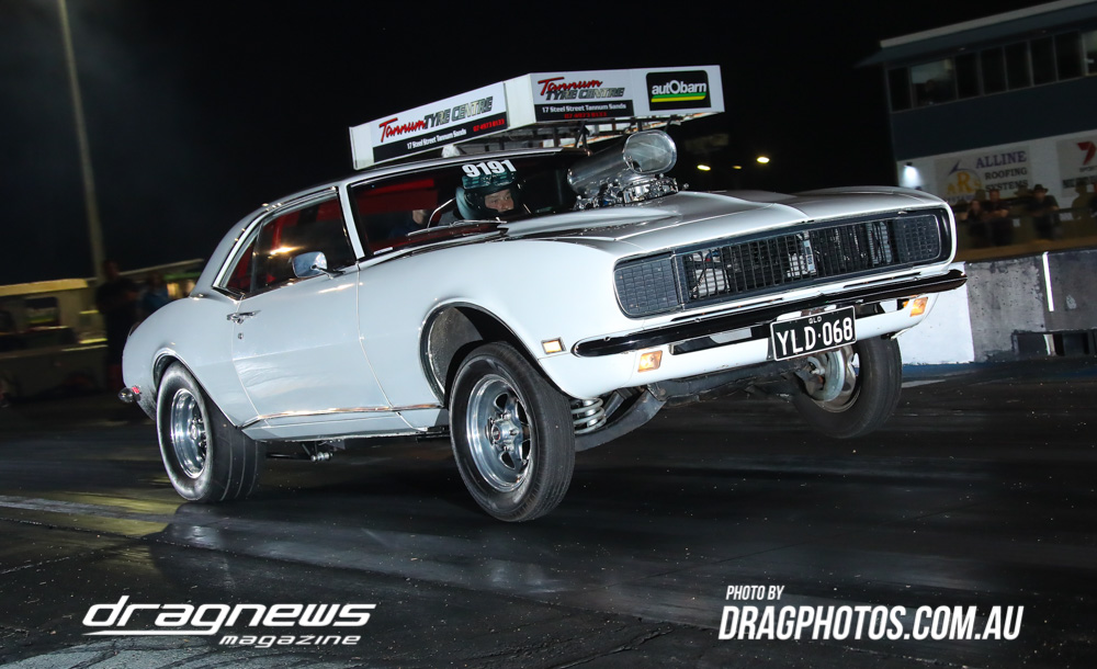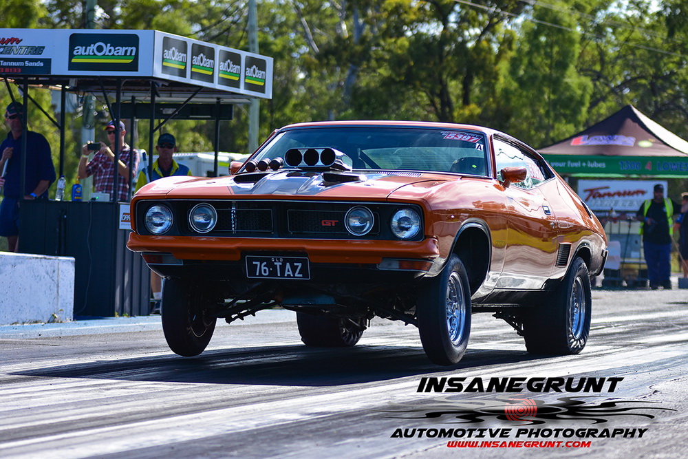 The Kenda 660 Radial Rumble bracket final was between Garry Hunt in a borrowed XT Ford Falcon against Barney Lindner in his supercharged 68 Camaro, with Hunt taking the win with a 6.30 to a 6.50.