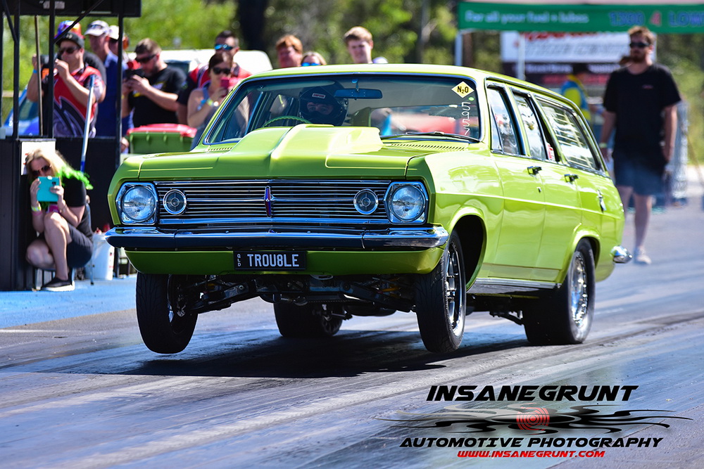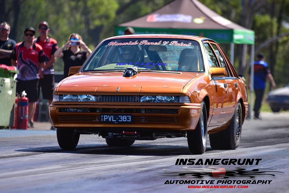 The Kenda Tires 660 Radial Warz came down to Brett Benz in the Warwick Panel & Paint twin turbo small block Commodore up against Matt McCarthy in the NXTLVL Racing twin turbo small block Bluebird. This was a great race with McCarthy running a 4.97 only to be out run by the blistering VL Commodore of Benz going 4.79, with both of the cars getting it done on 275s.