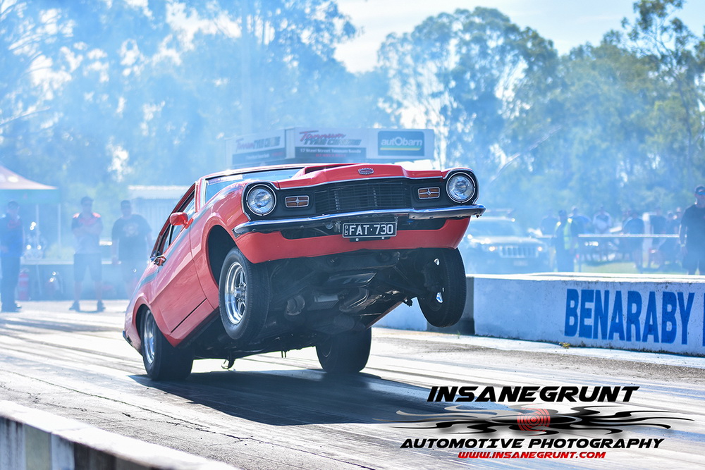 The Central Queensland Drag Racing Association championship was also being hotly contested, highlighted by Brett Kelly taking the win in his small block XB Ford GT over Craig McVie in Super Street, while Laurie Bonato in his Clevo powered XE Ford Falcon Ute defeated Shane Stefaniuk’s Mk1 Cortina in the Unlimited bracket.
