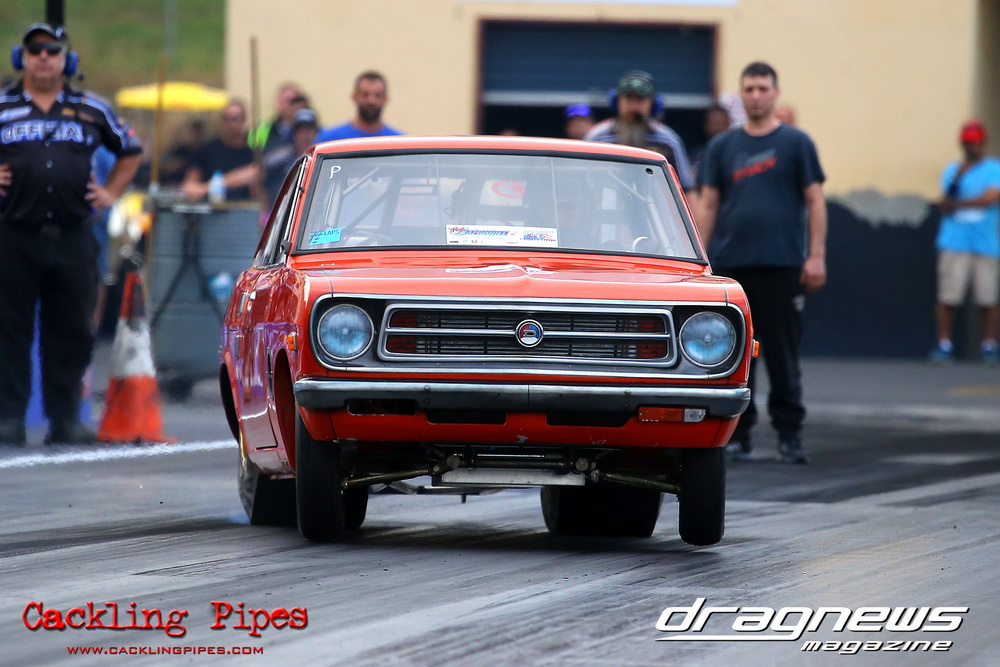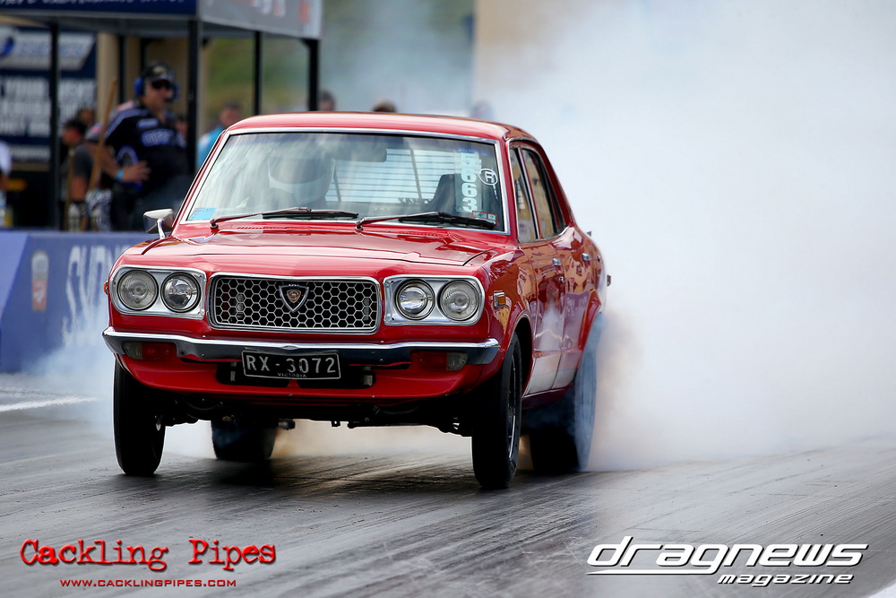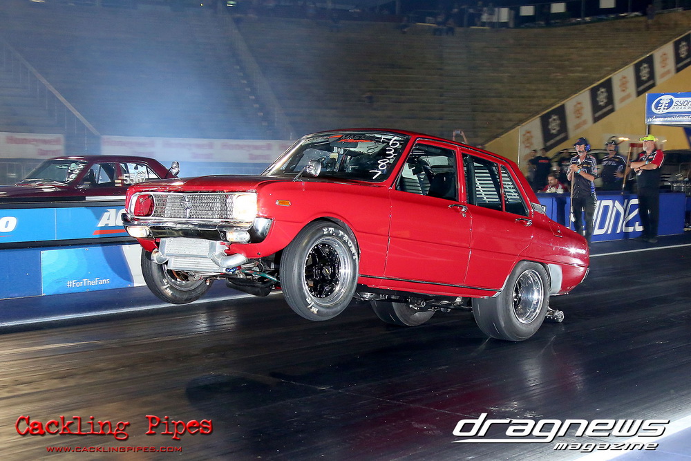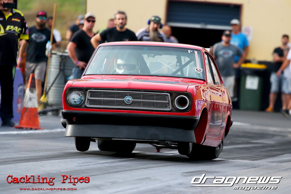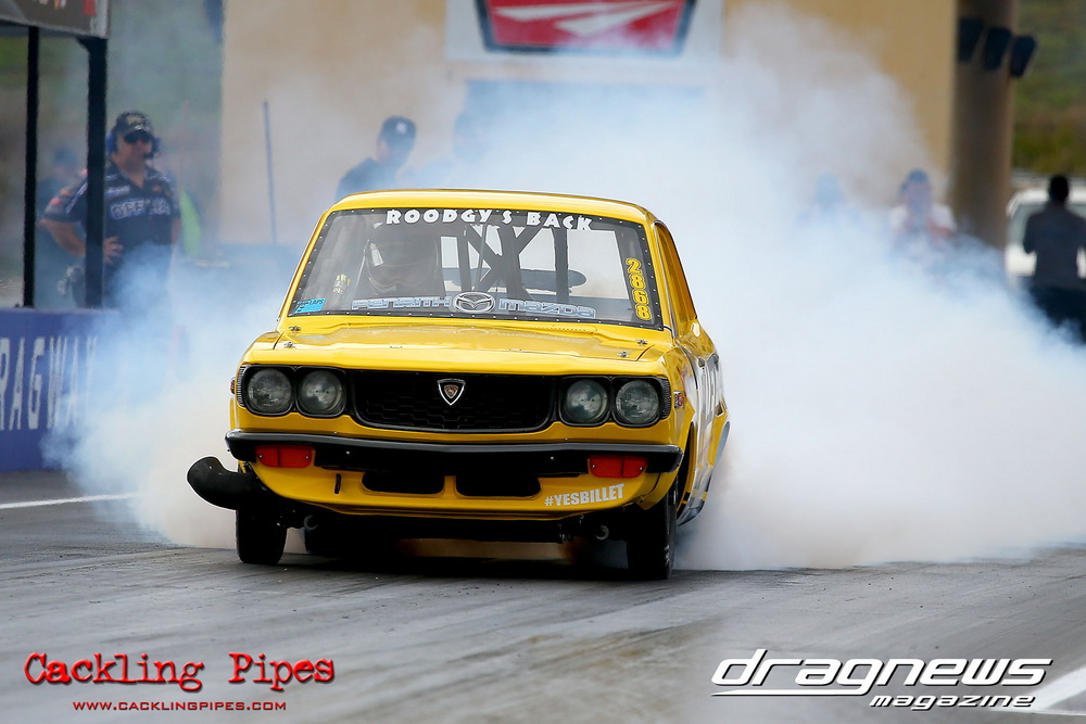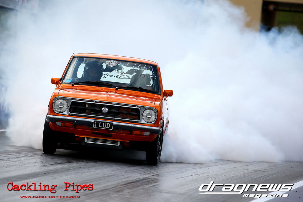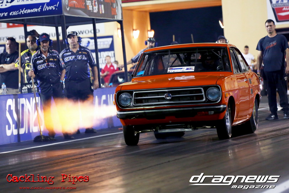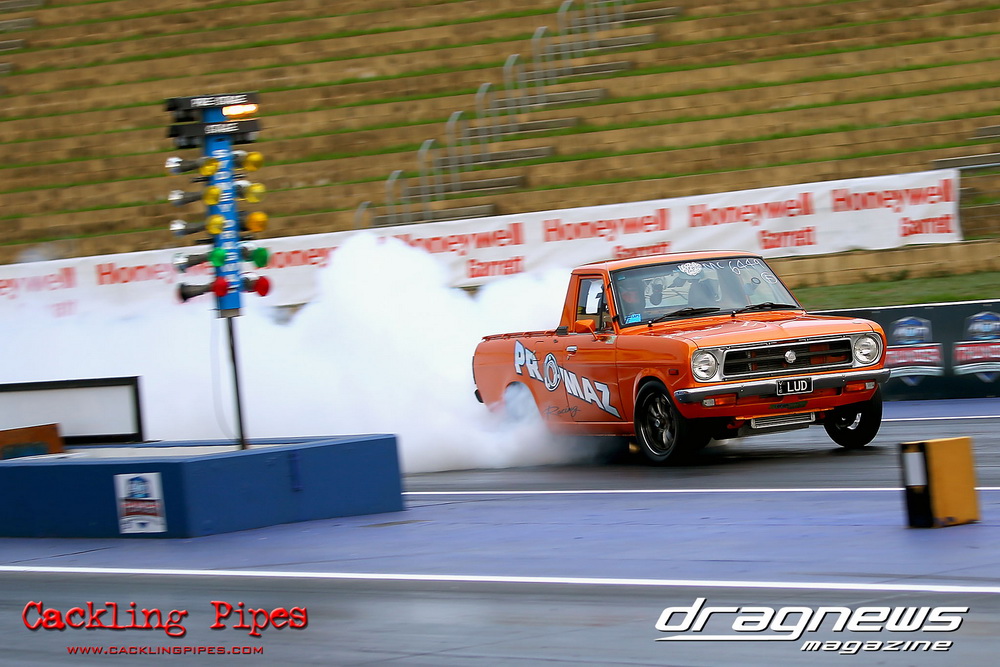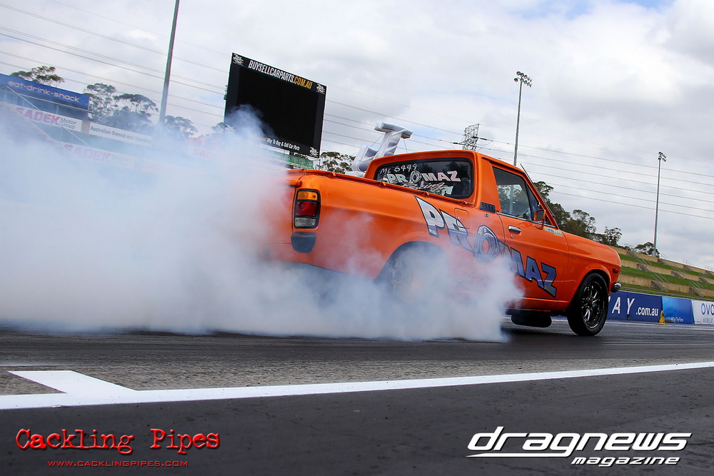 A few out of control burnouts provided some wild moments, as did Kelly Bettes blowing the door off the Datsun ute in a effort to run another six.