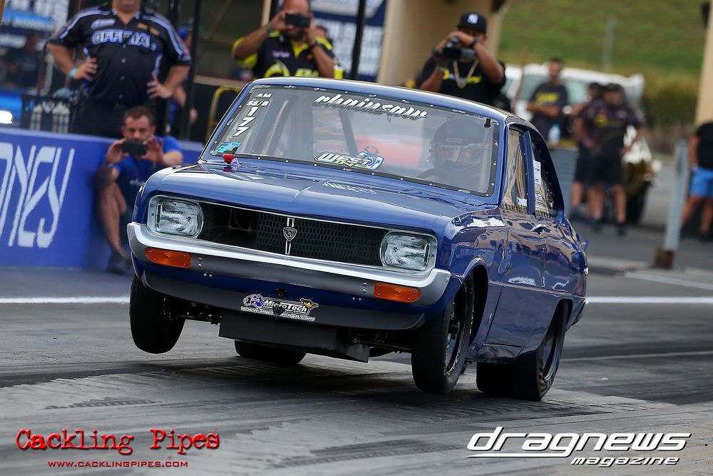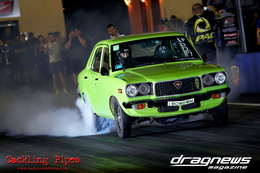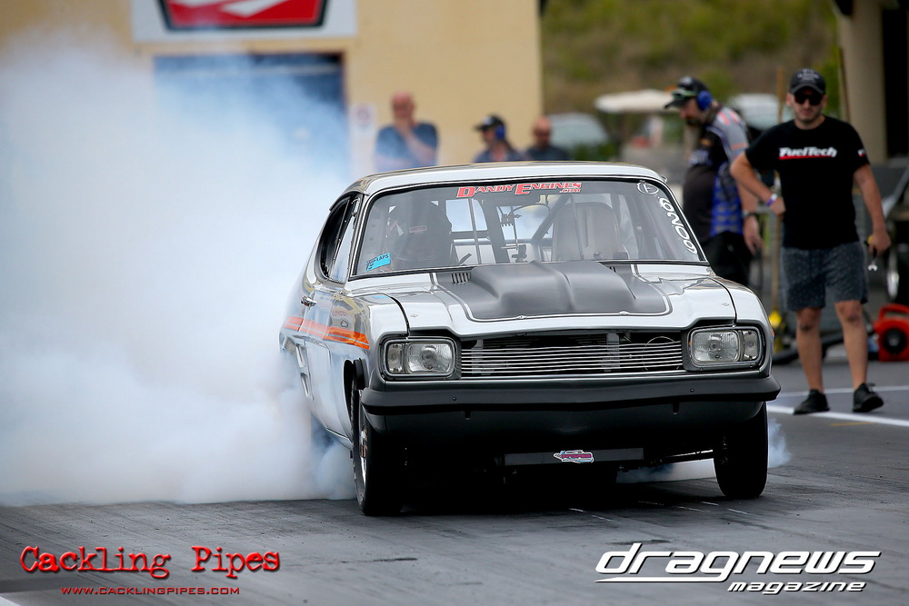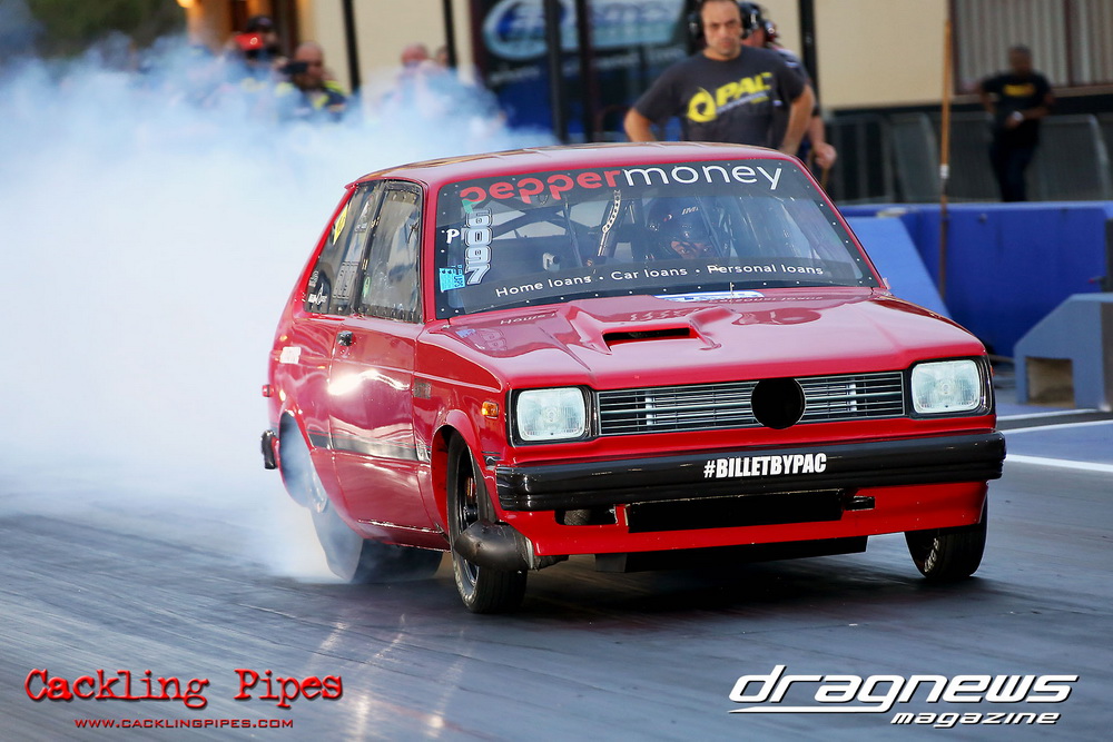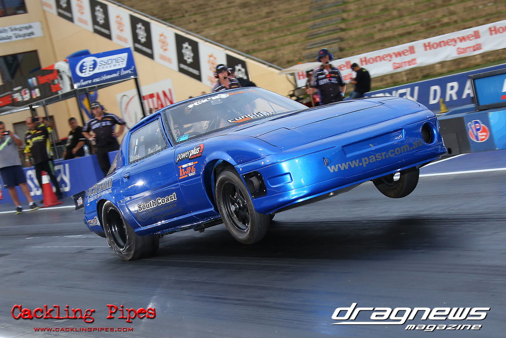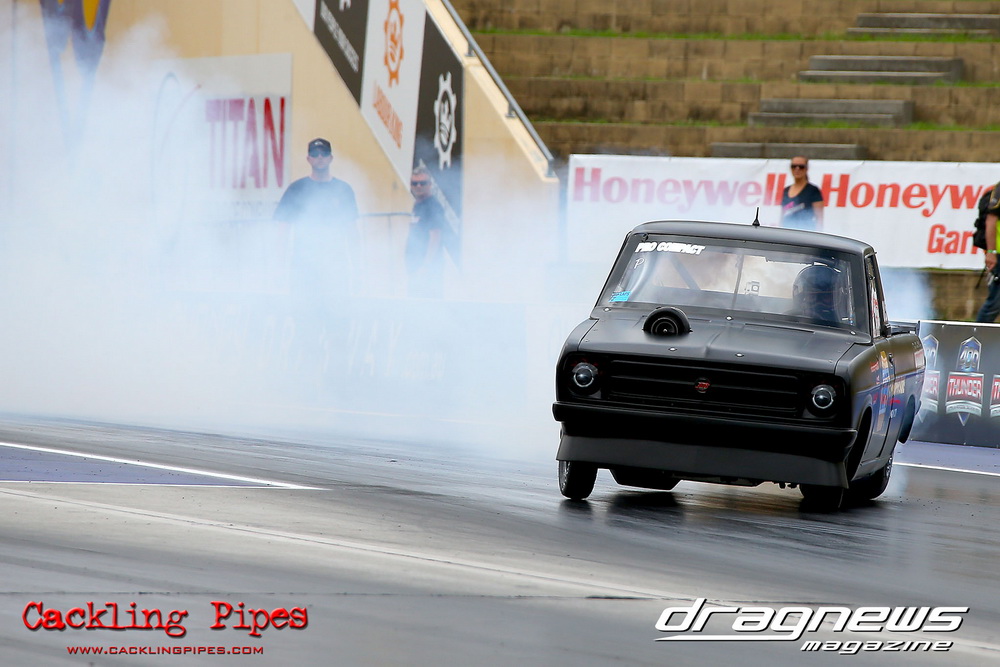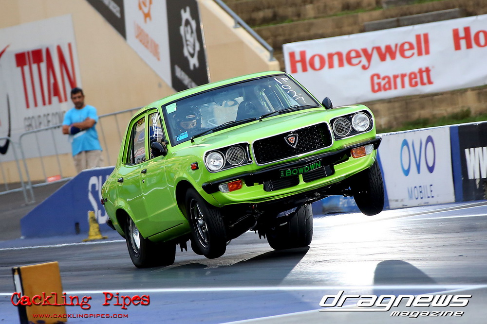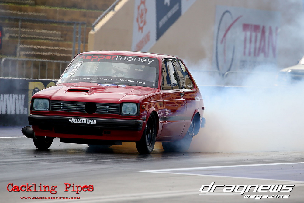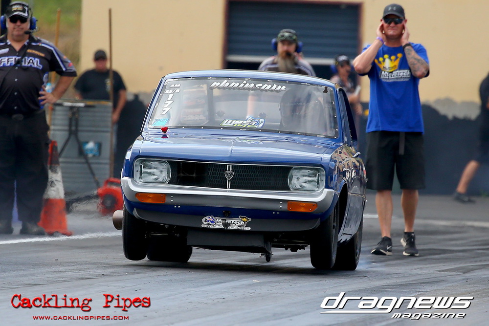 A few out of control burnouts provided some wild moments, as did Kelly Bettes blowing the door off the Datsun ute in a effort to run another six.