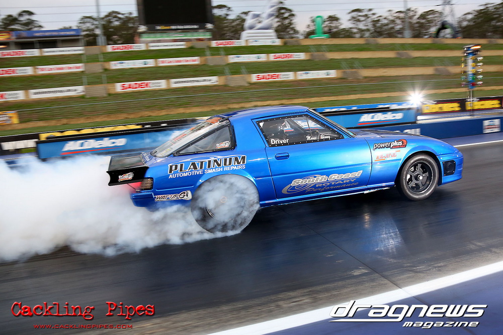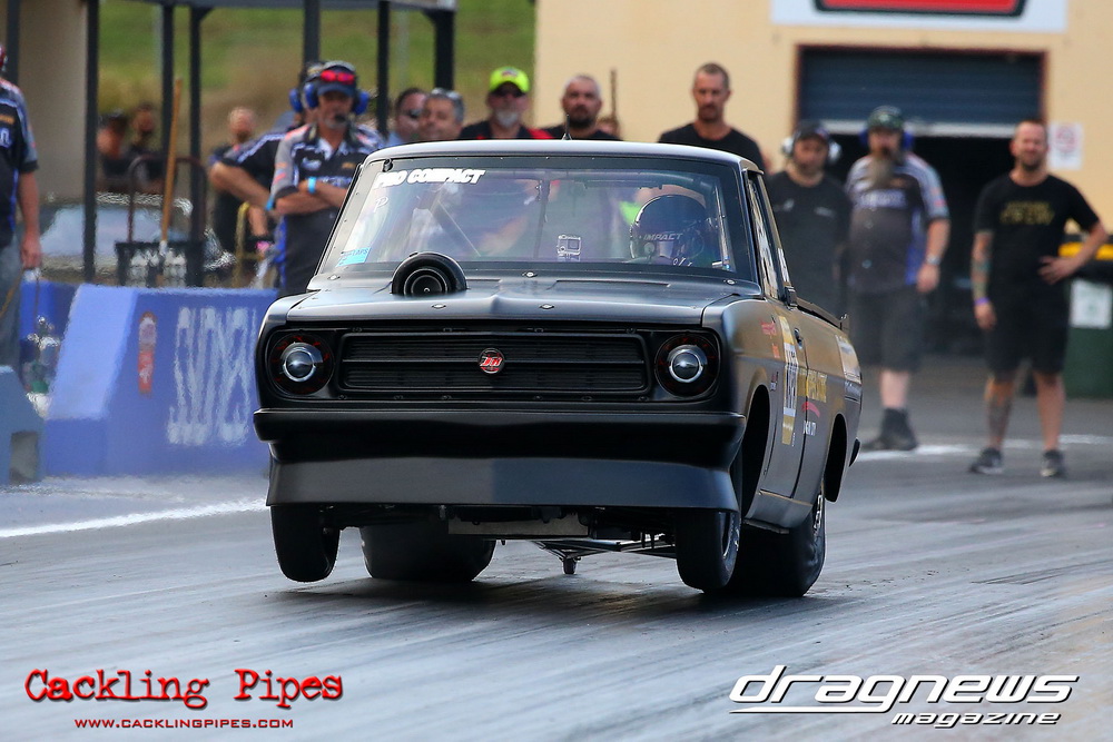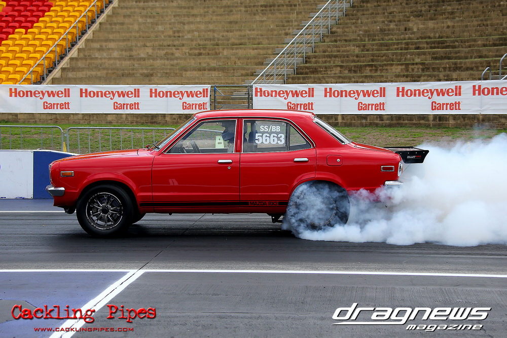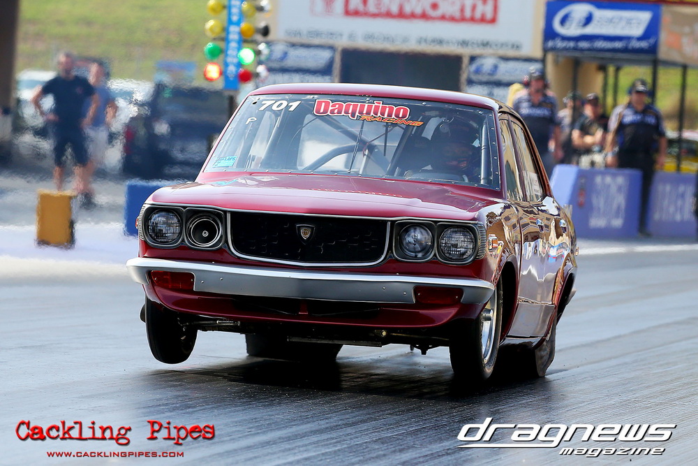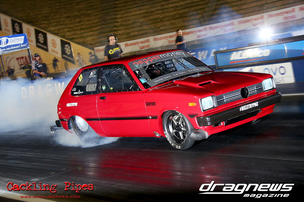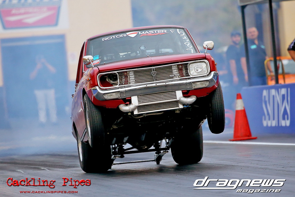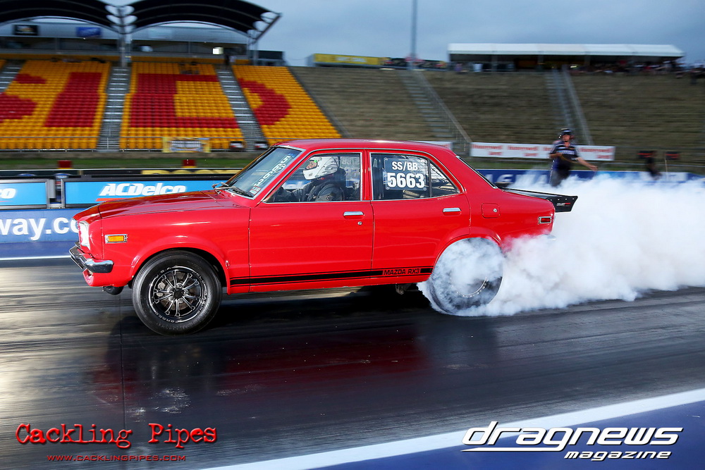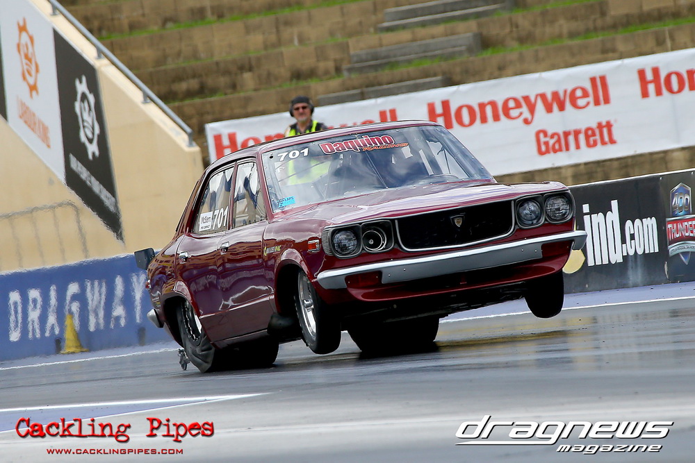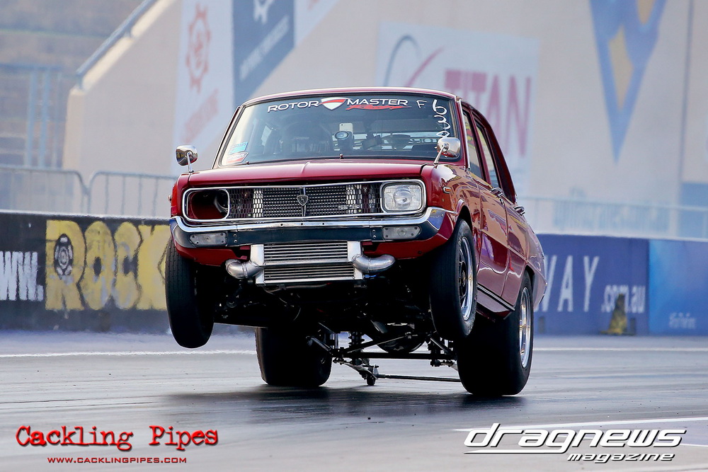 A few out of control burnouts provided some wild moments, as did Kelly Bettes blowing the door off the Datsun ute in a effort to run another six.