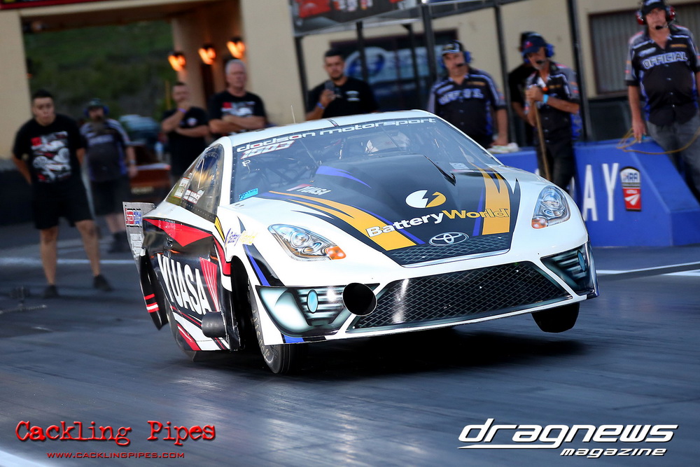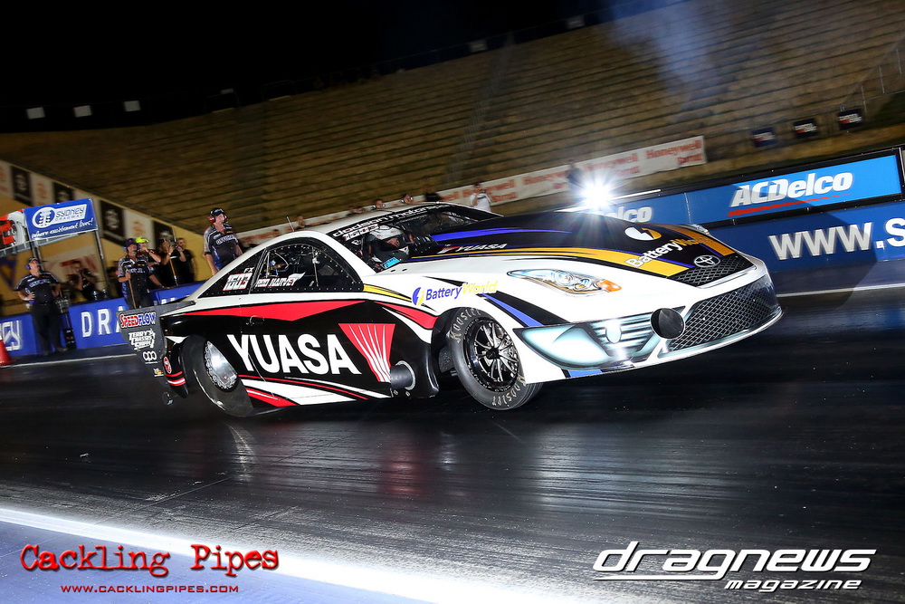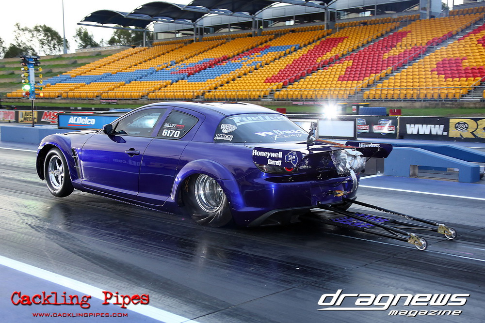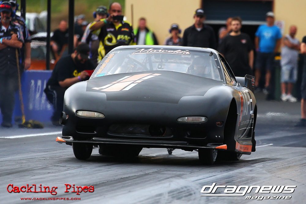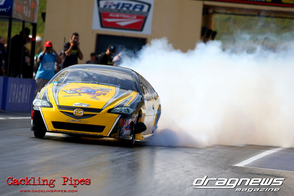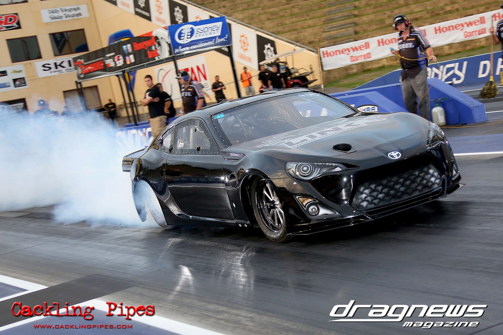 We saw five second passes out of the now former Moits 10.5 Mustang (recently purchase by Gerry Sarafoglou). Jeremy “Jet” Martin lived up to his name sporting a new paint job on the VB Commodore running 6.07. We saw a bunch of six second passes from the likes Gerry Sarafoglou in the LS powered Holden ute, the Castle Hill Performance twin turbo LSX RX3 on radials and Nikki Hepburn in her radial Toyota 86.
