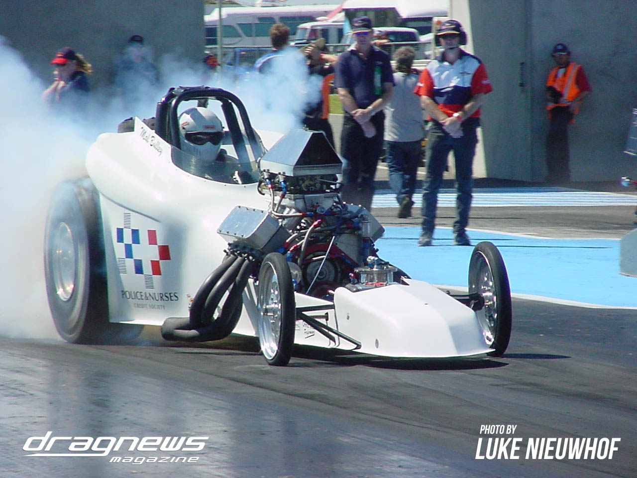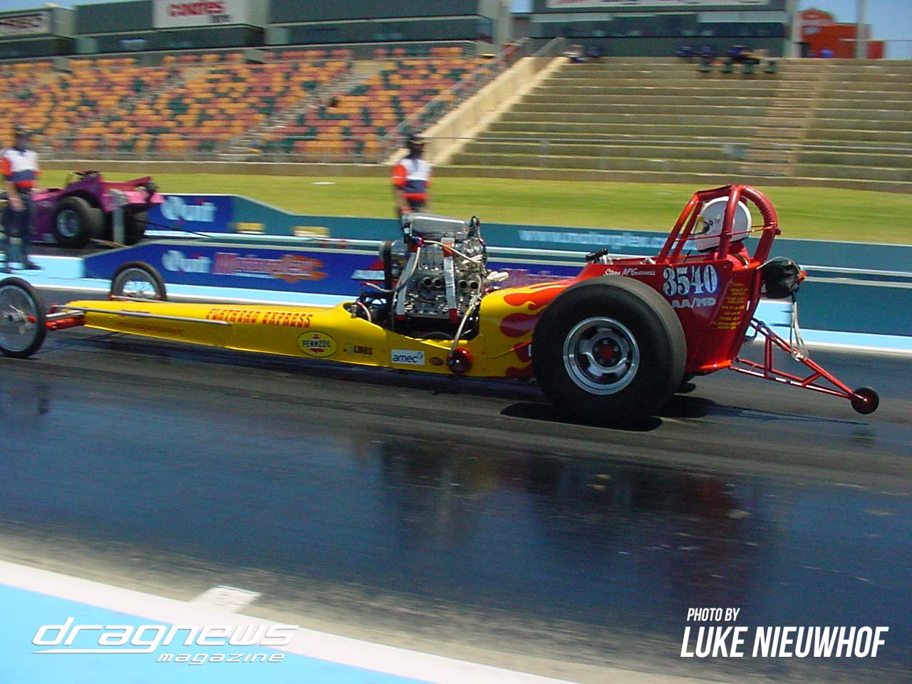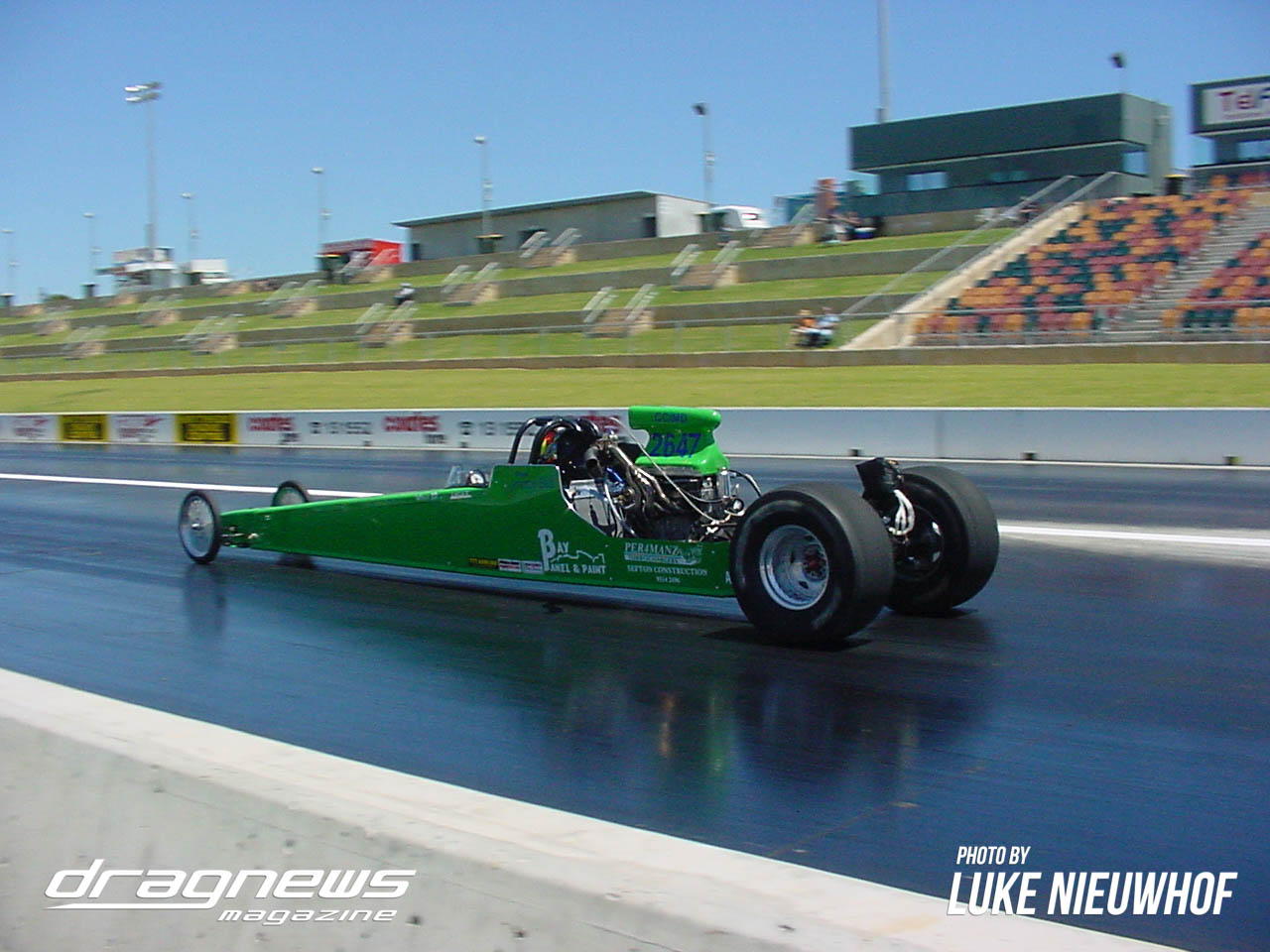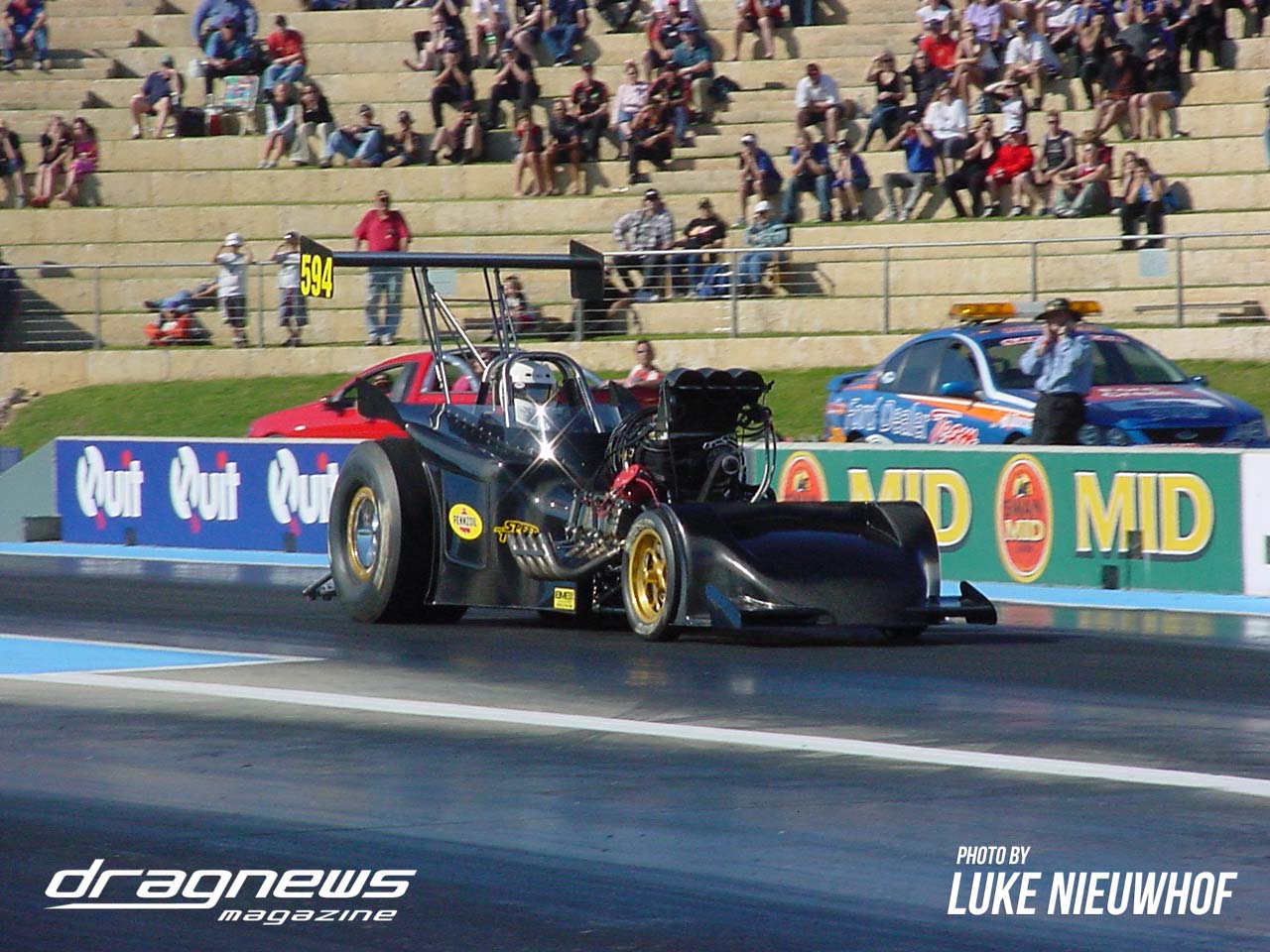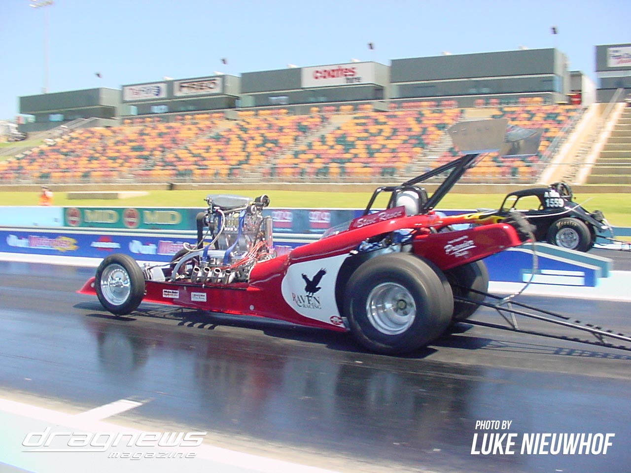 Now Top Alcohol driver Aaron Deery raced Bob St Lawrence’s Toyota-powered dragster in Modified, before Supercharged Outlaws was a category on offer at the Motorplex.