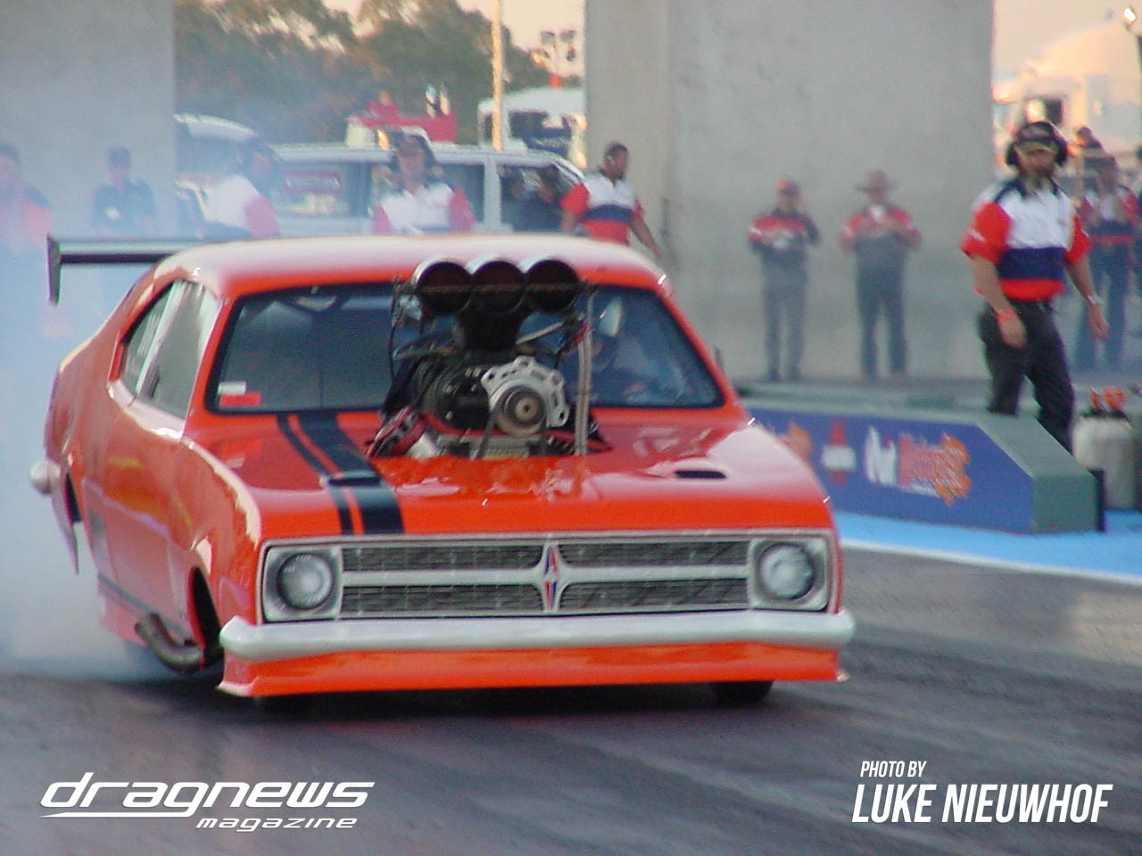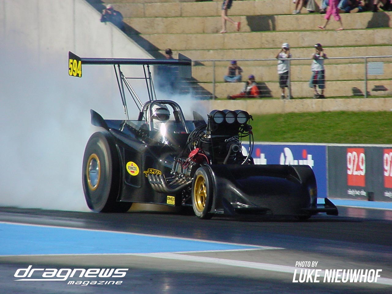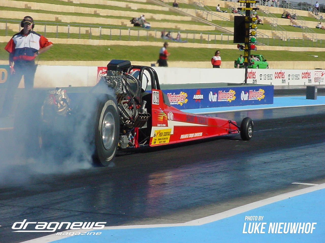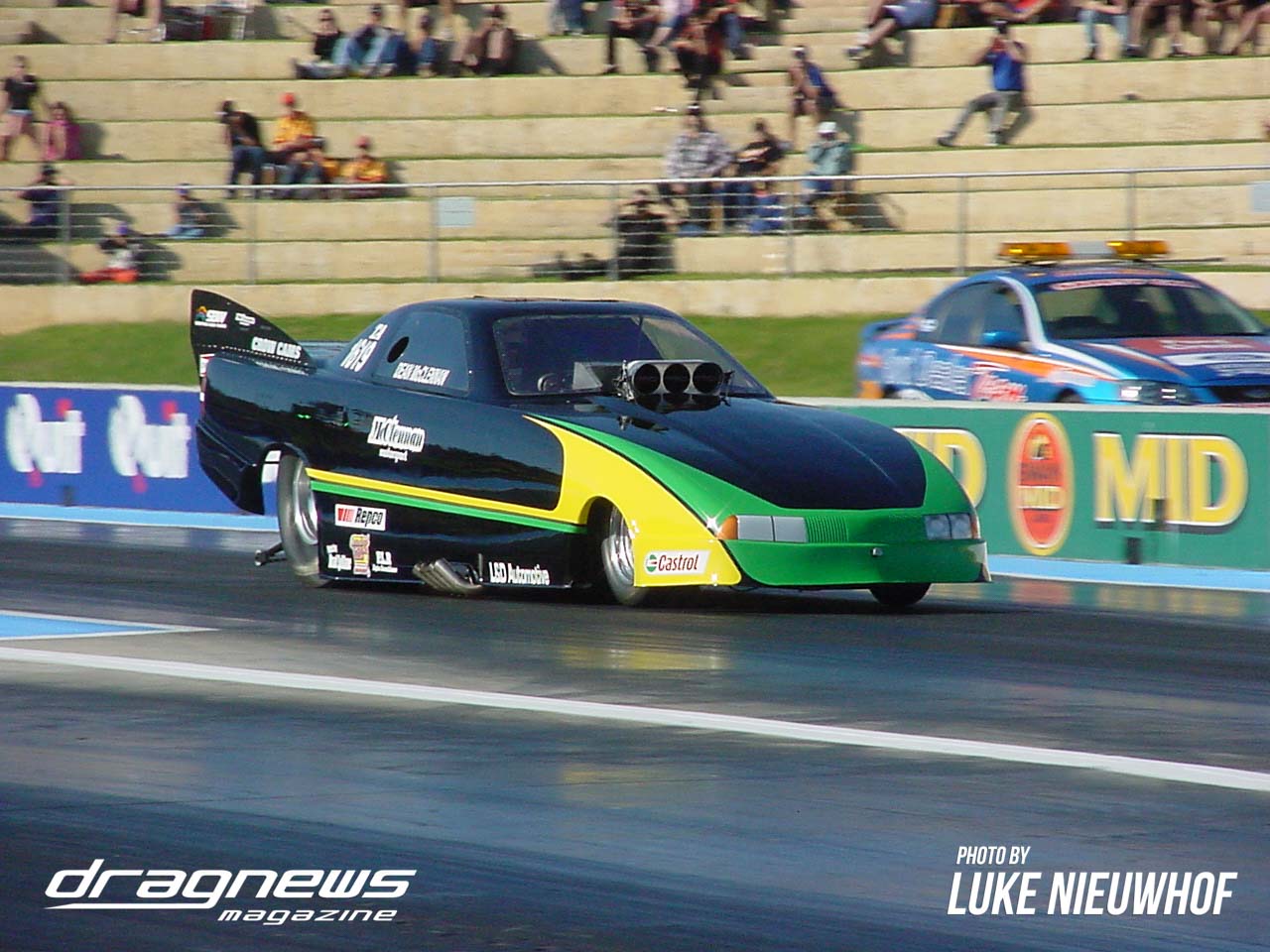 Now Top Alcohol driver Aaron Deery raced Bob St Lawrence’s Toyota-powered dragster in Modified, before Supercharged Outlaws was a category on offer at the Motorplex.