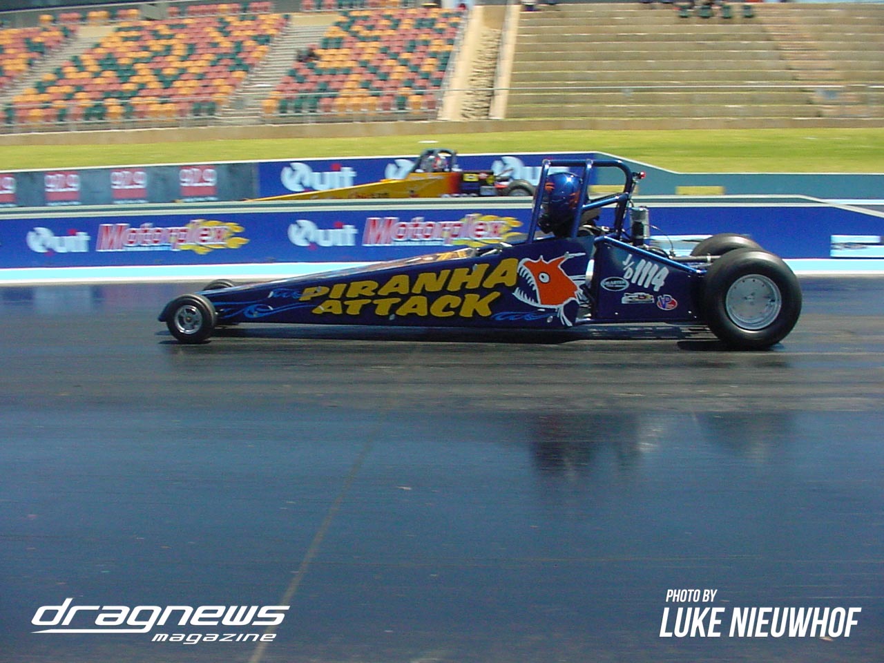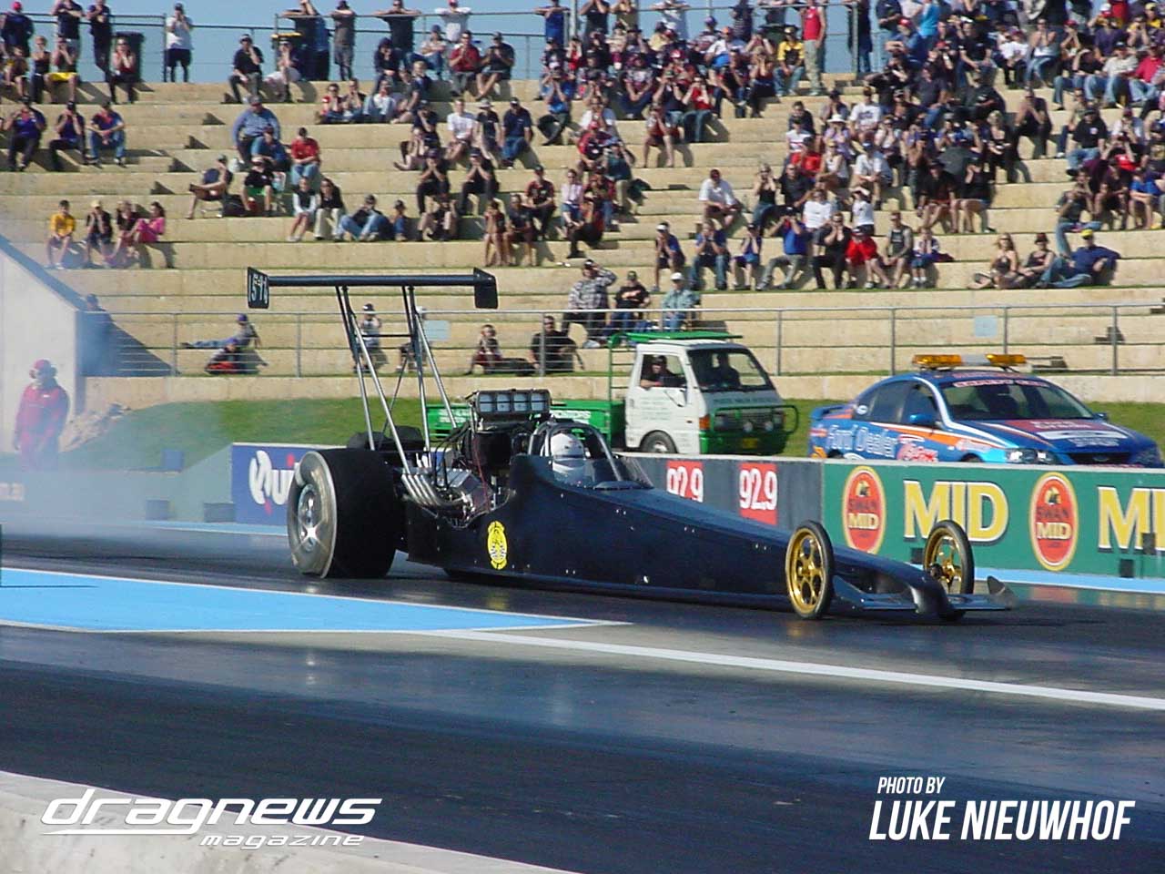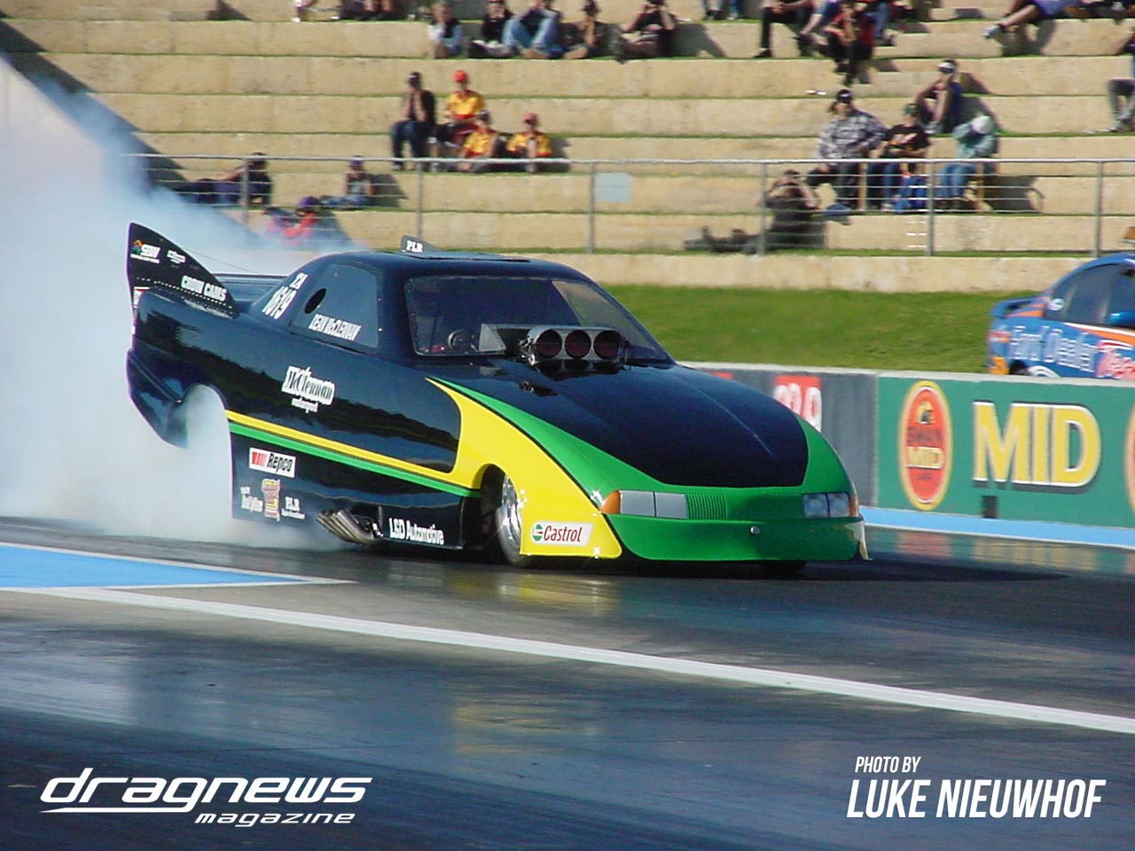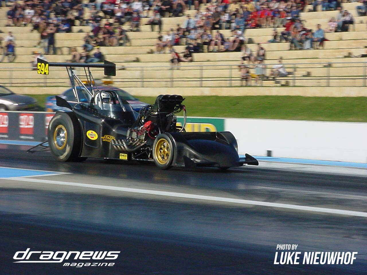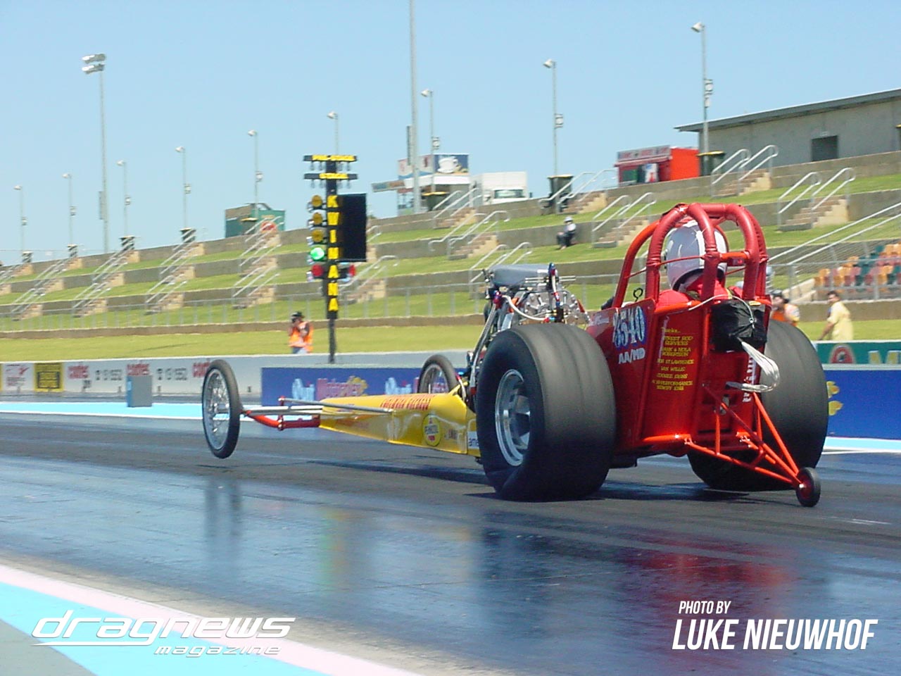Now Top Alcohol driver Aaron Deery raced Bob St Lawrence’s Toyota-powered dragster in Modified, before Supercharged Outlaws was a category on offer at the Motorplex.