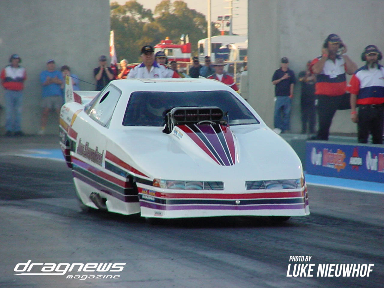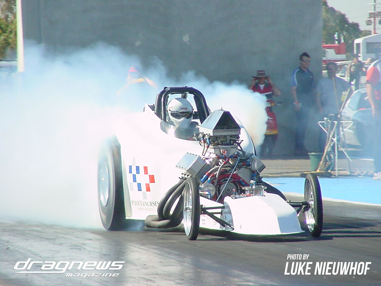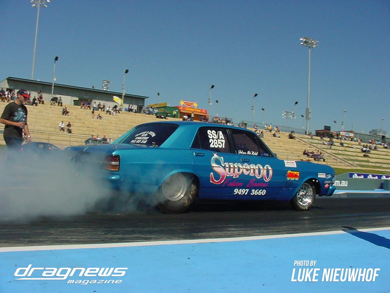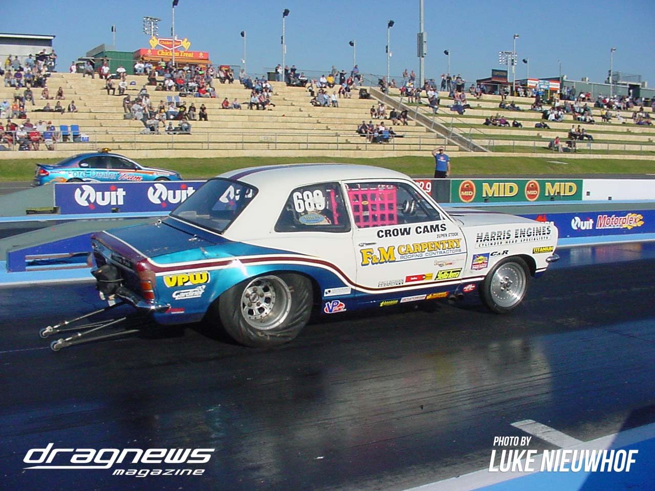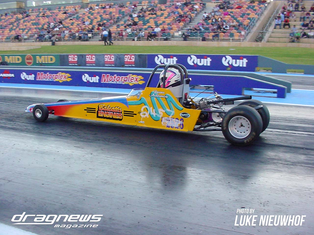 Now Top Alcohol driver Aaron Deery raced Bob St Lawrence’s Toyota-powered dragster in Modified, before Supercharged Outlaws was a category on offer at the Motorplex.